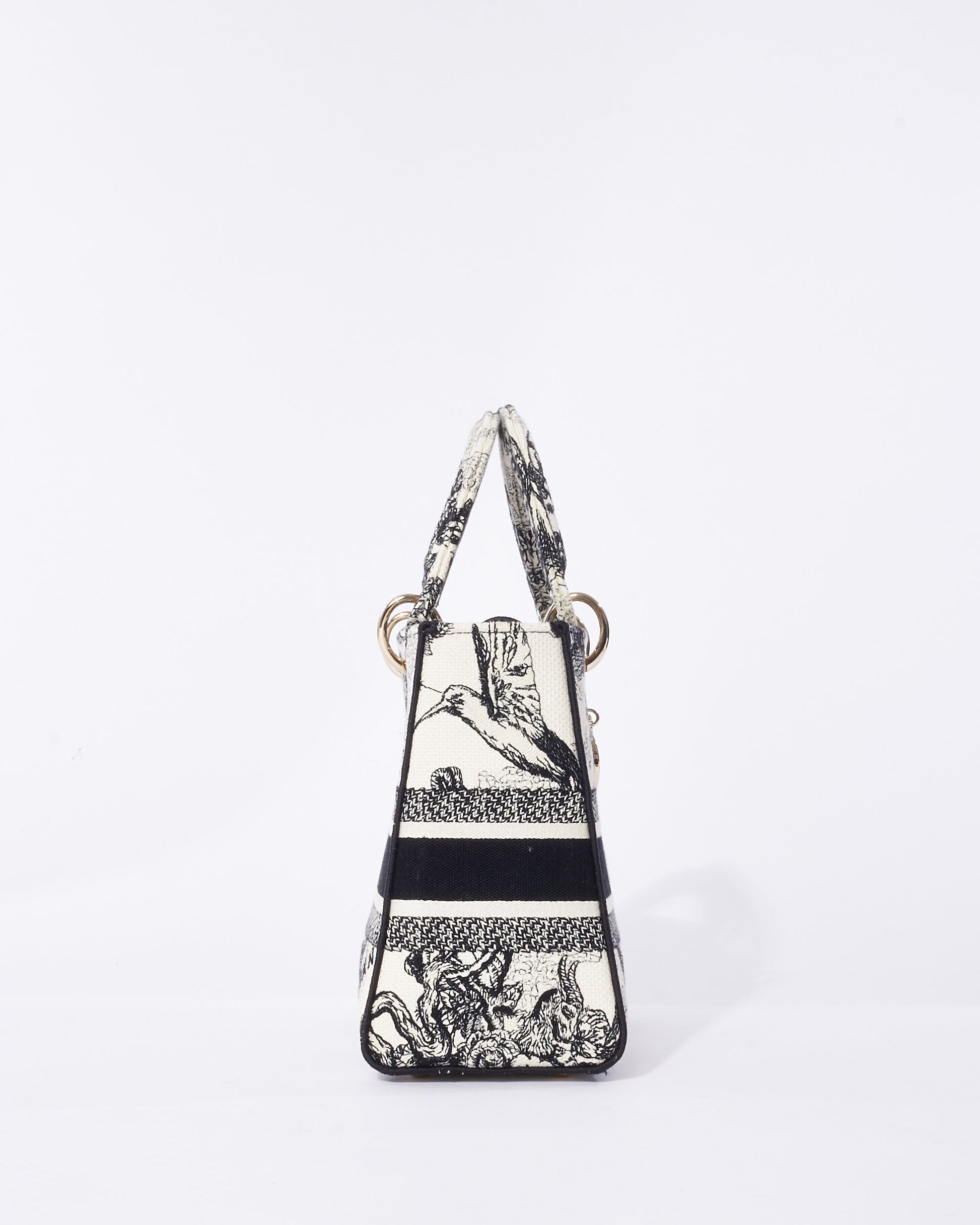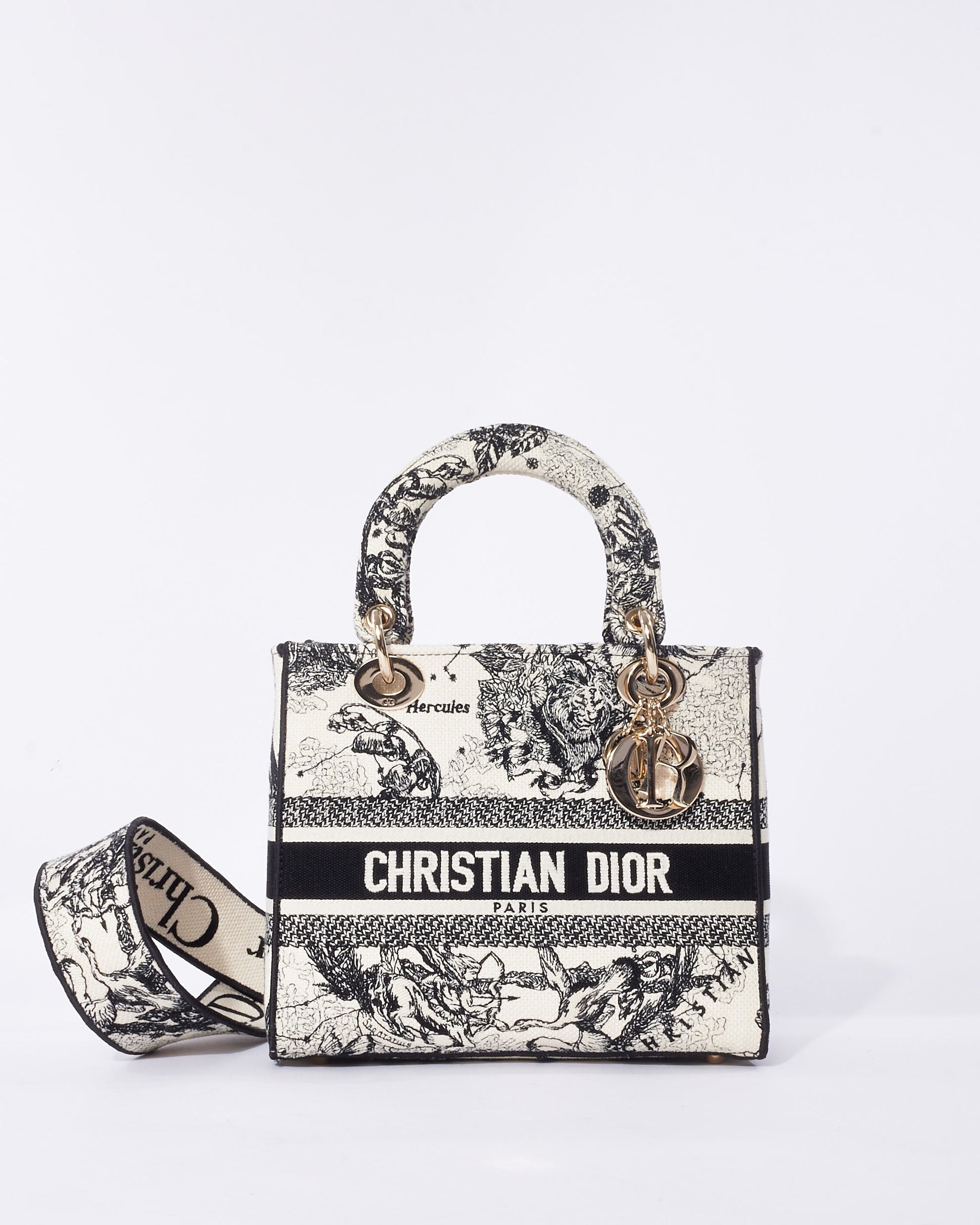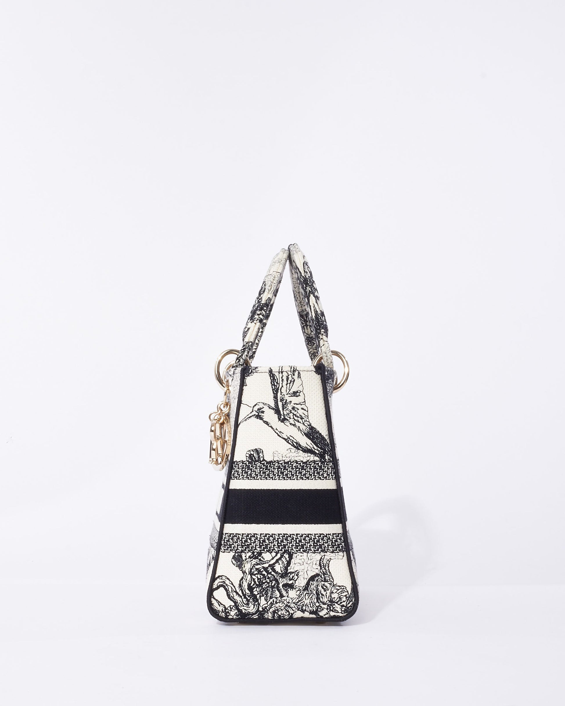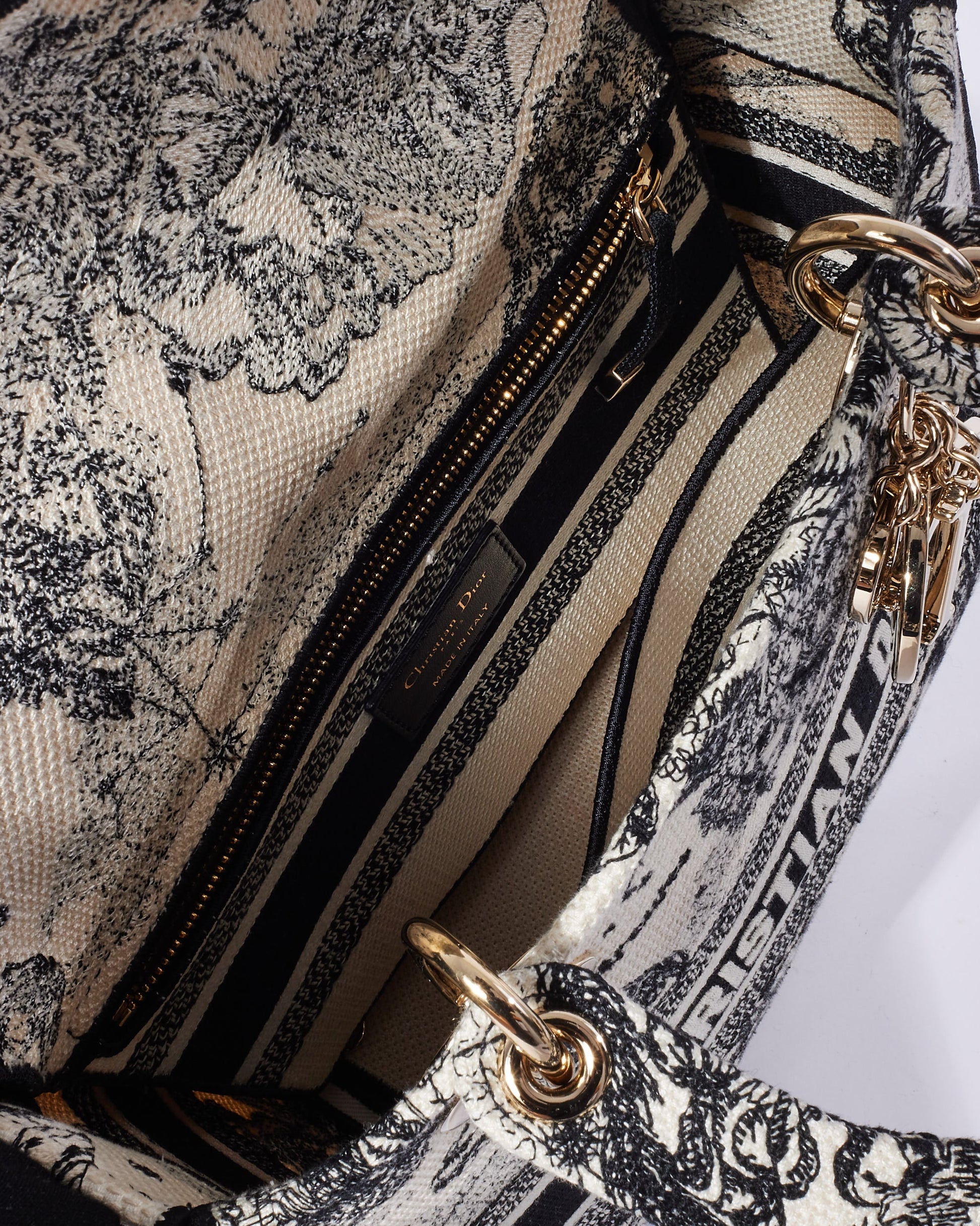 Dior Cream & Black Toile De Jouy Zodiac Embroidery Canvas Medium Lady D-Lite Bag