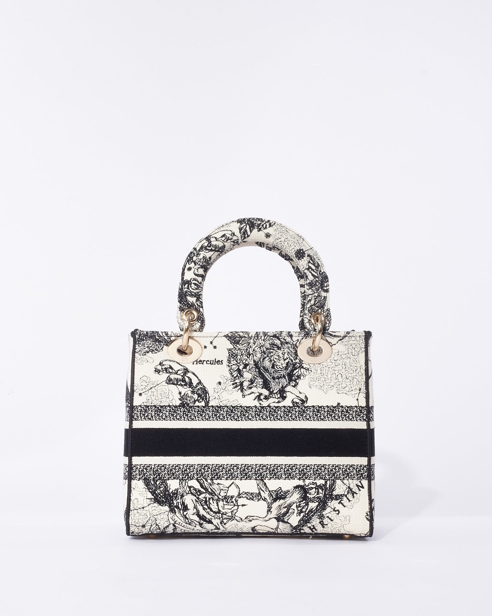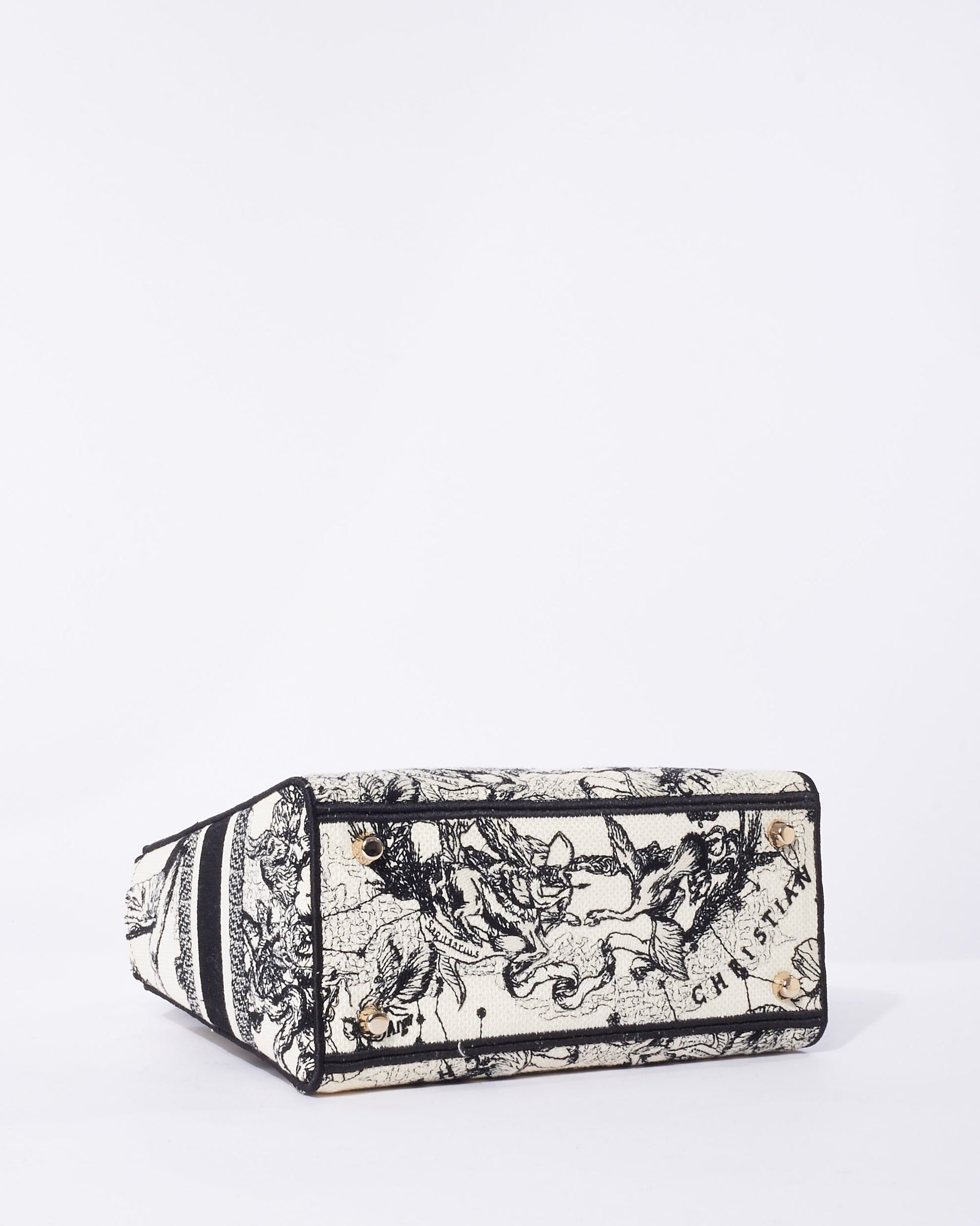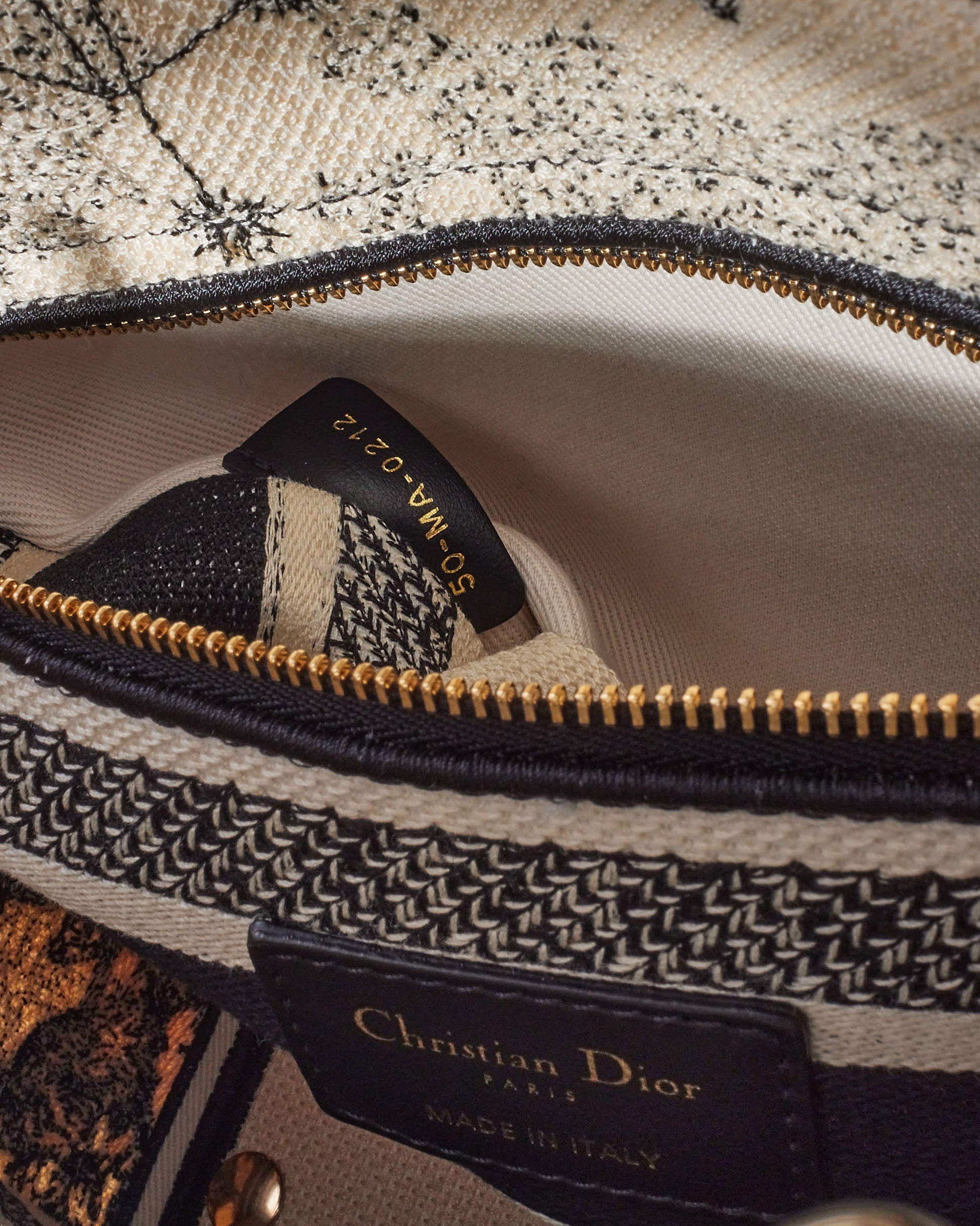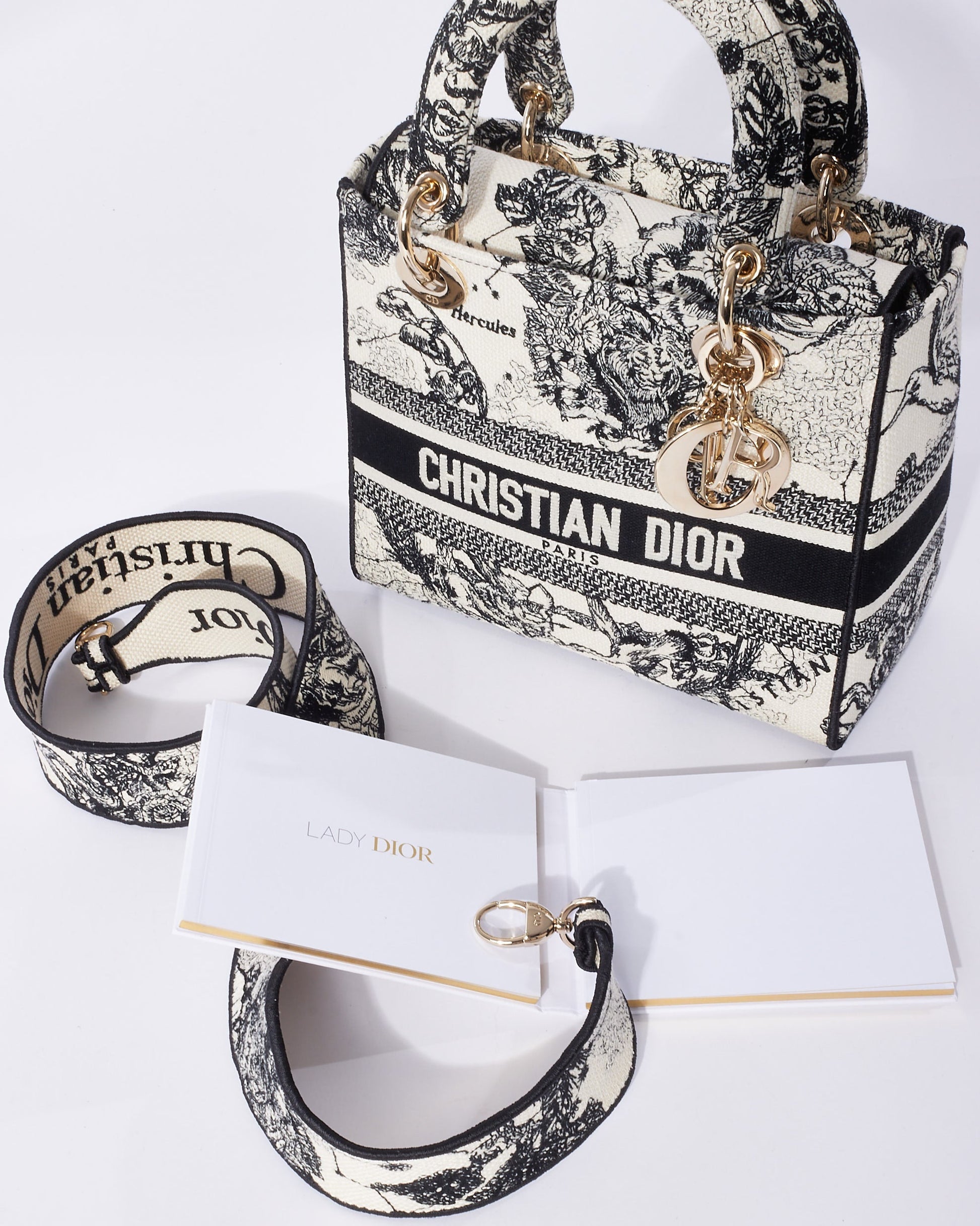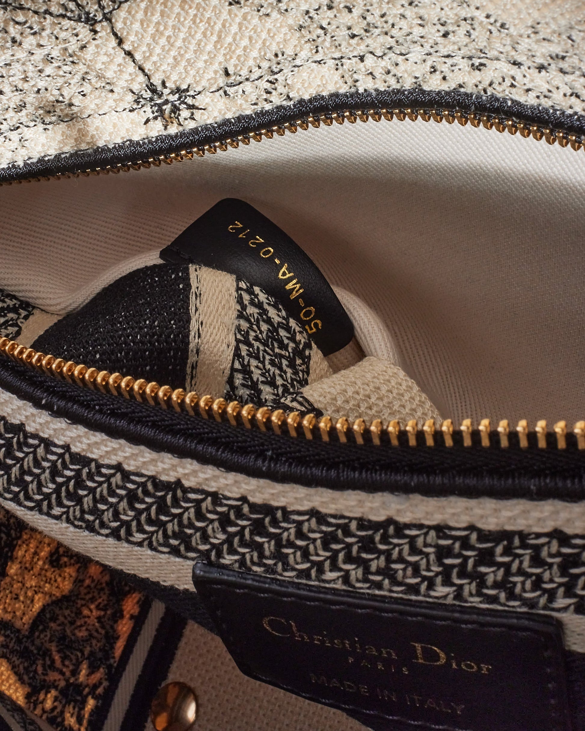 Dior Cream & Black Toile De Jouy Zodiac Embroidery Canvas Medium Lady D-Lite Bag