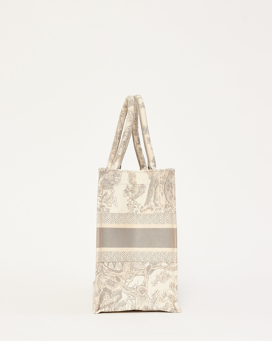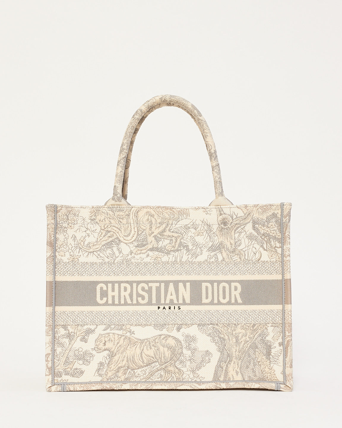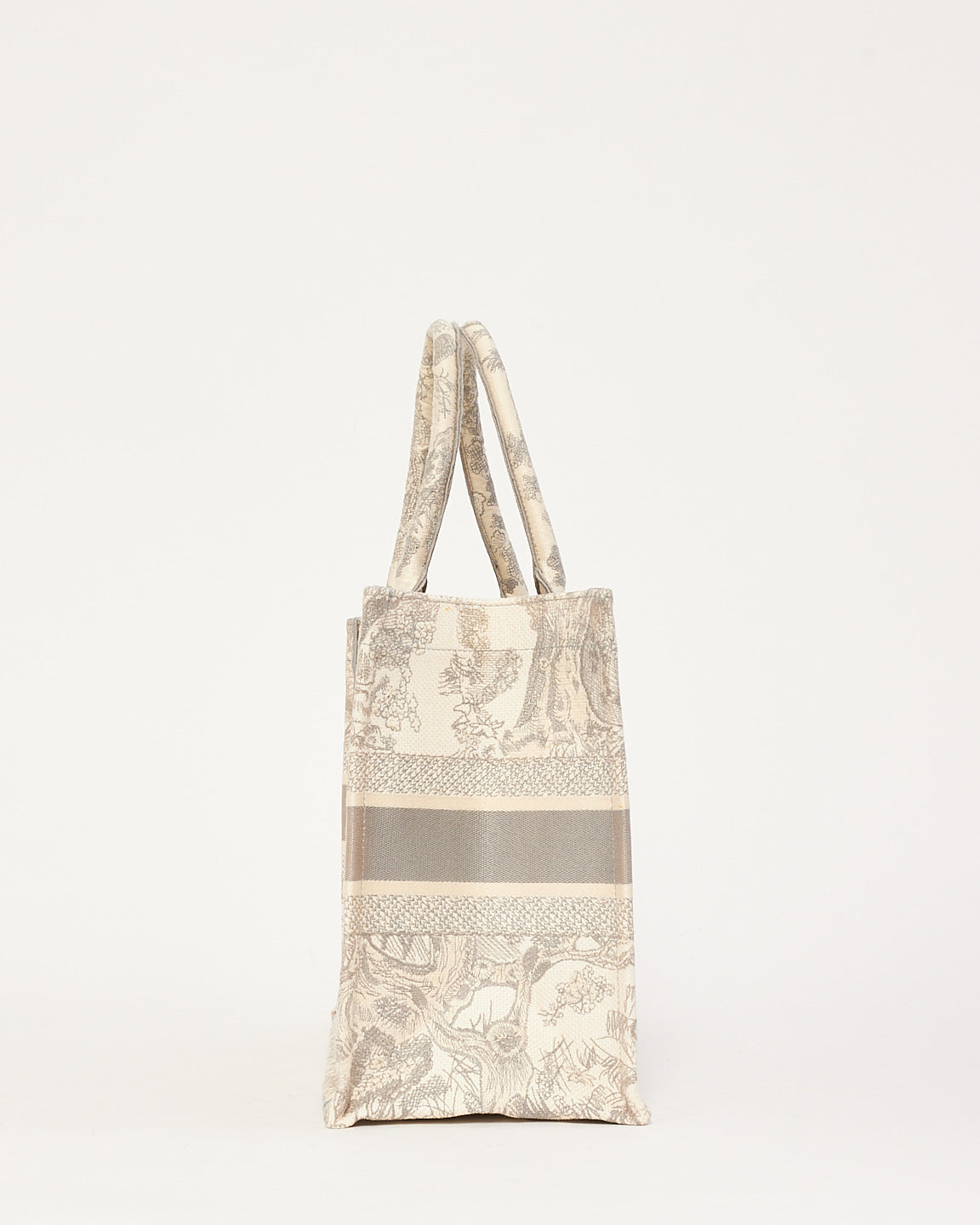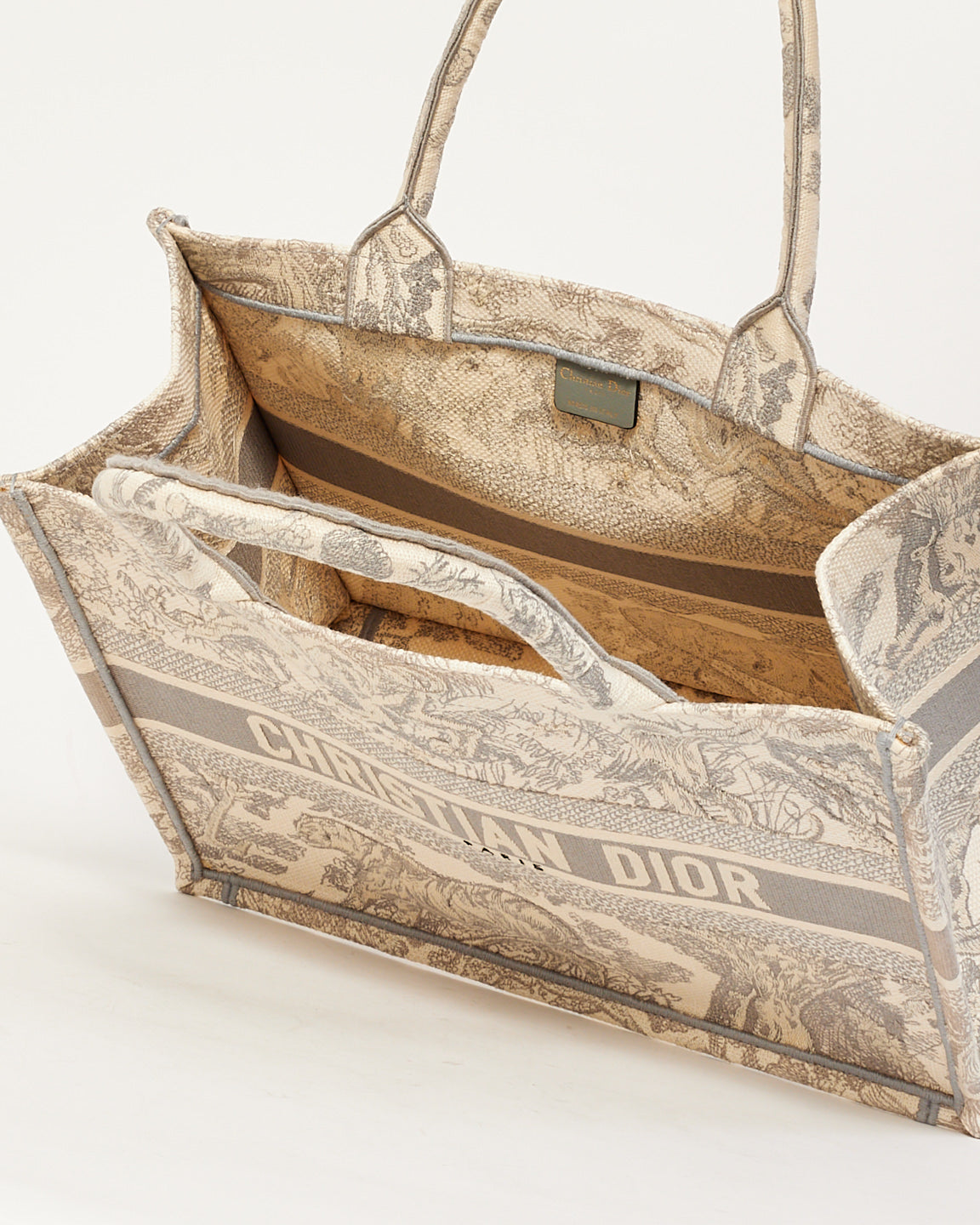 Dior Ecru and Gray Toile de Jouy Embroidery Canvas Medium Book Tote