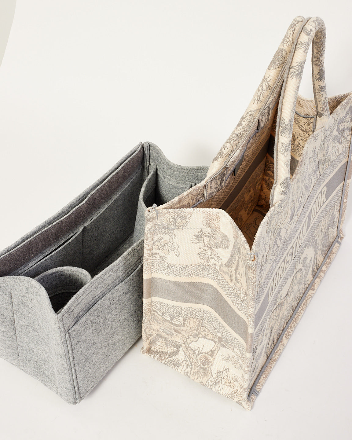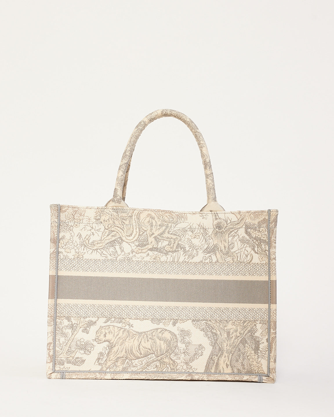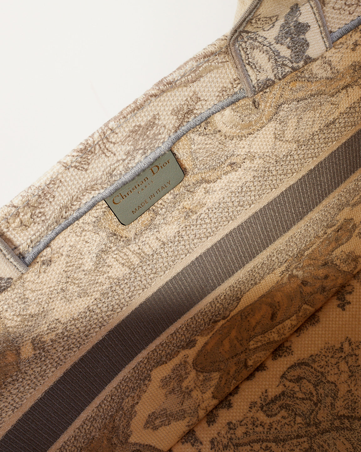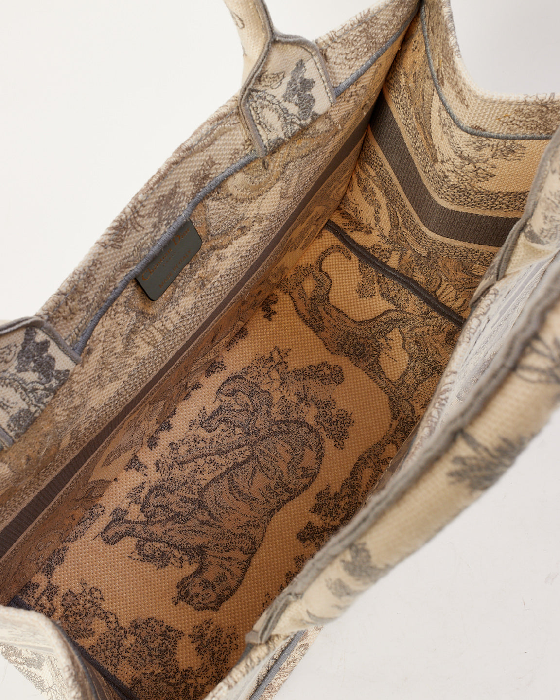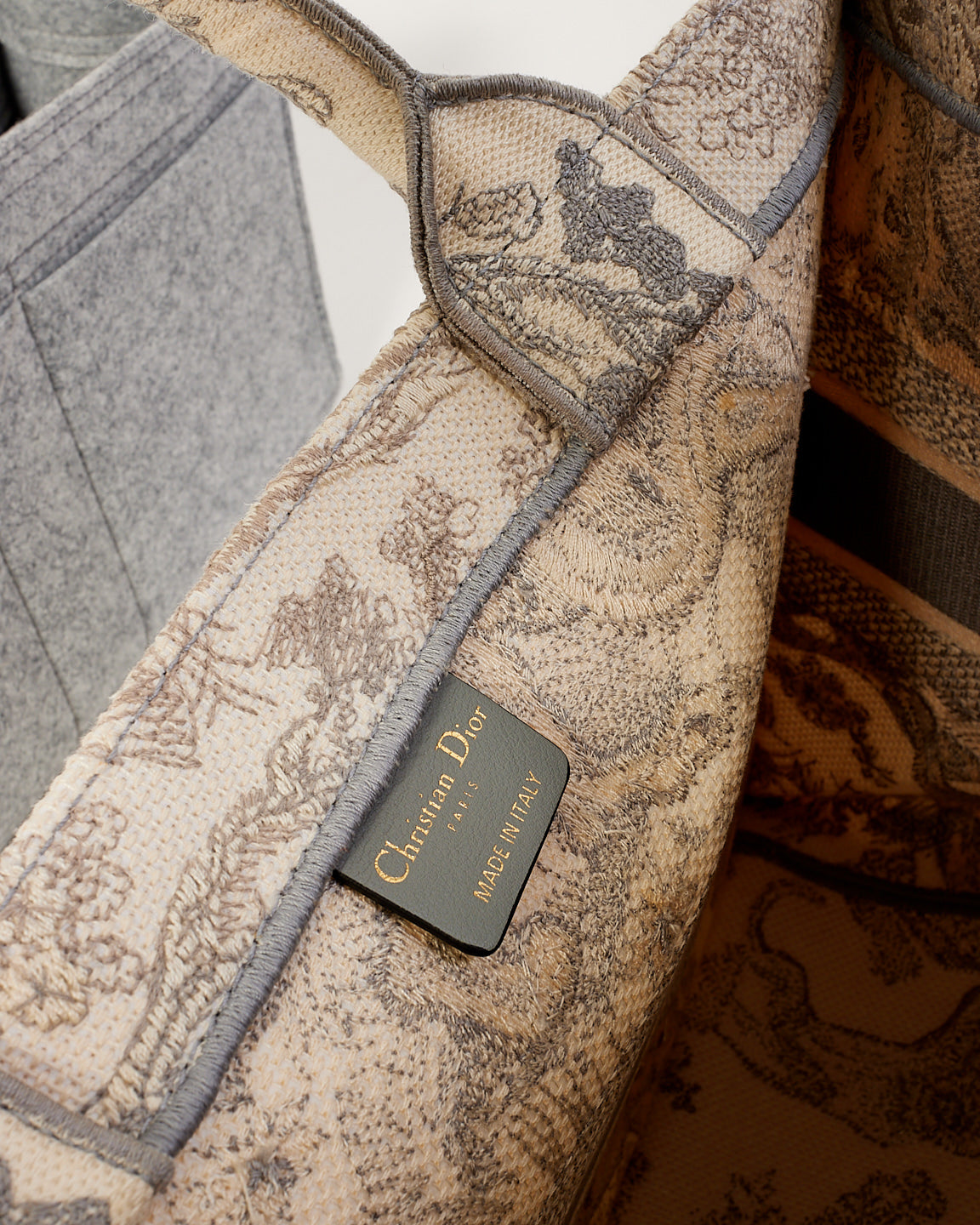 Dior Ecru and Gray Toile de Jouy Embroidery Canvas Medium Book Tote
