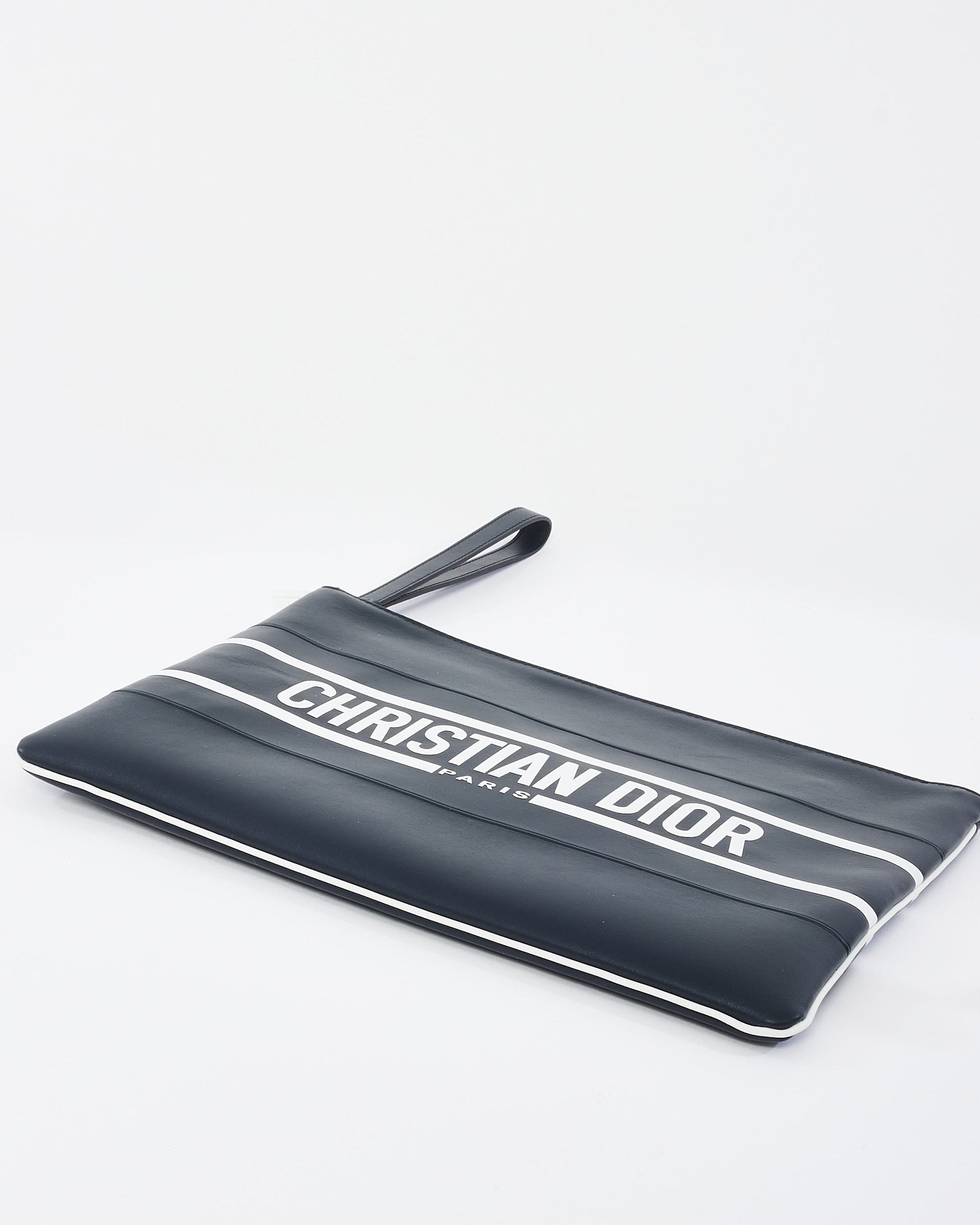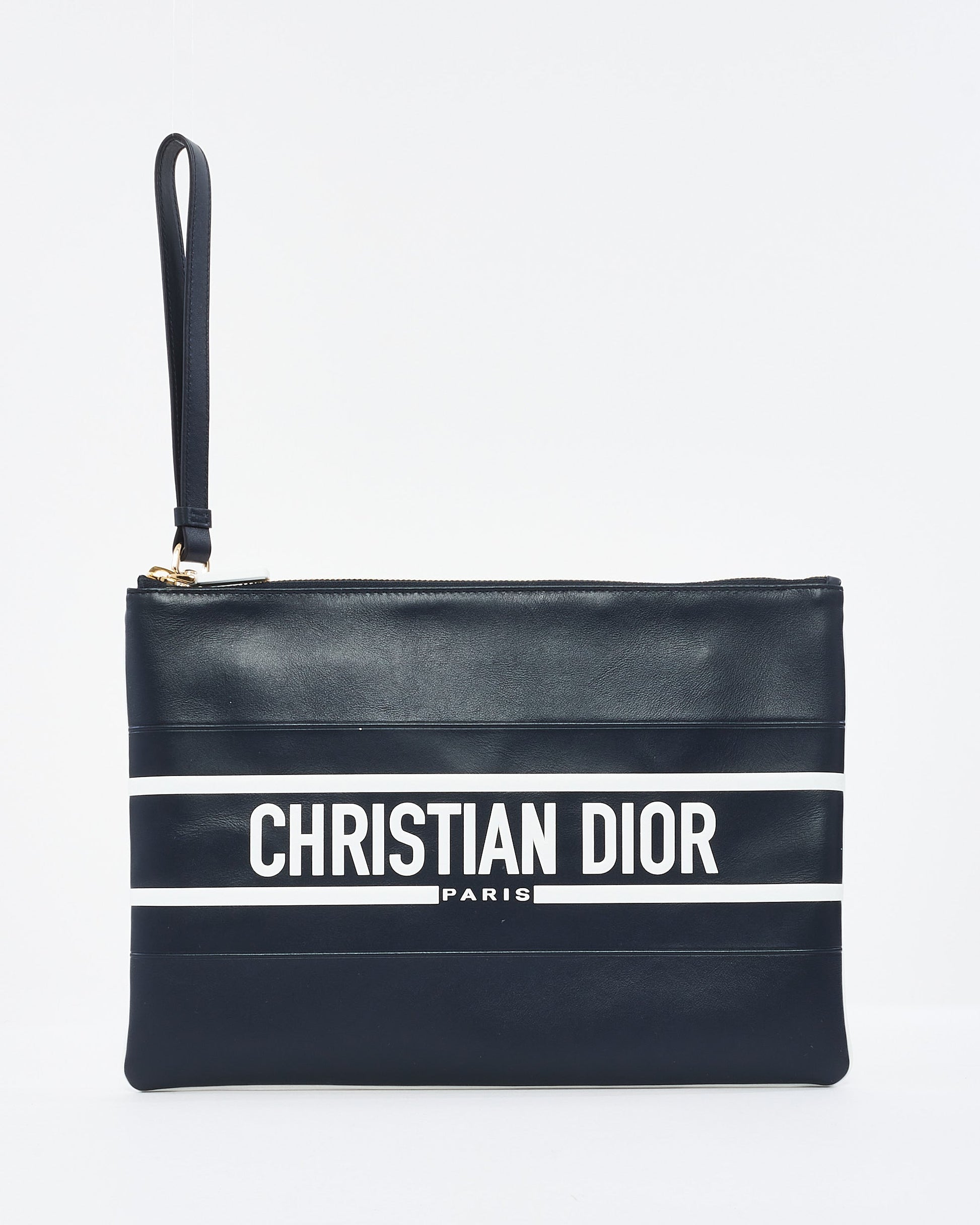 Dior Navy Blue Calfskin Leather Large Dior Vibe Daily Pouch