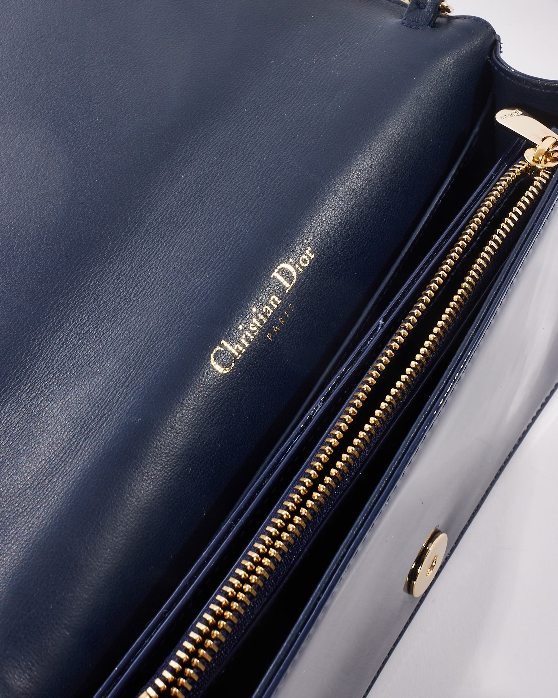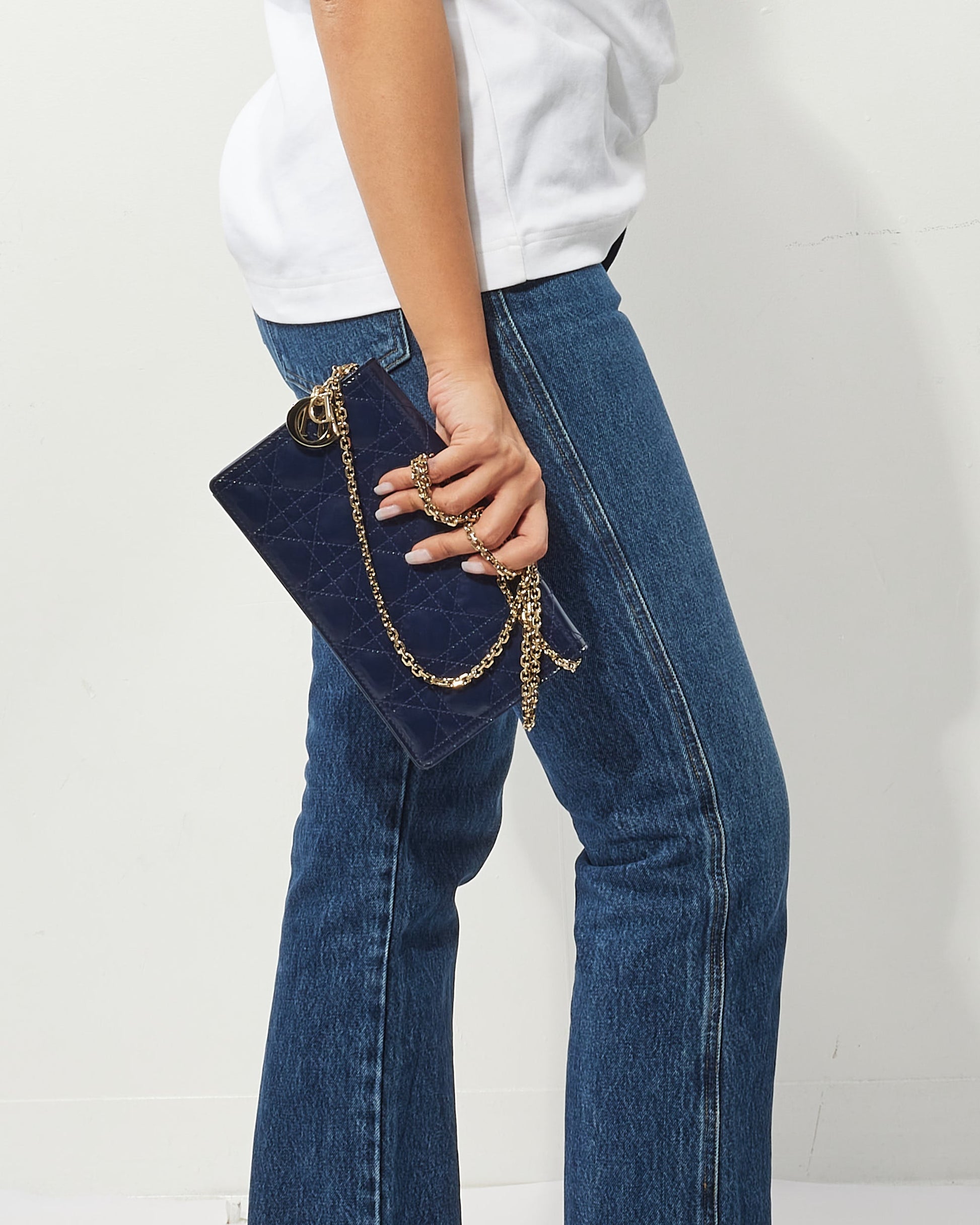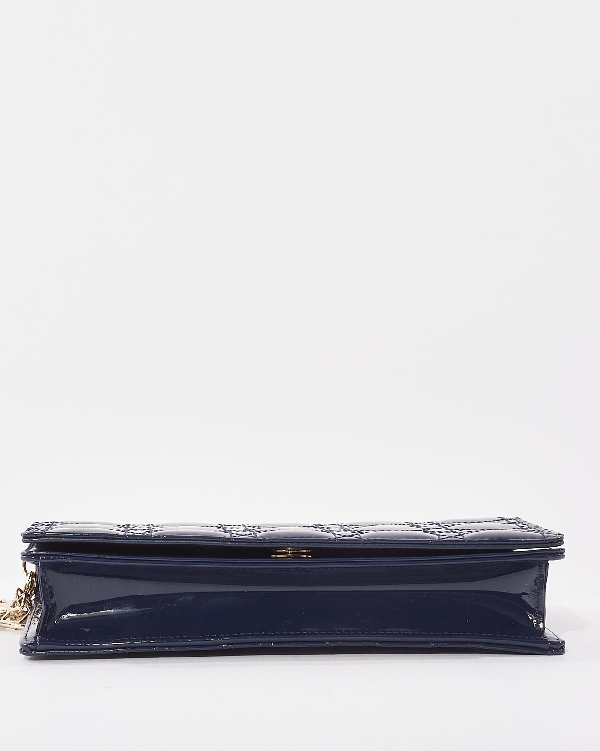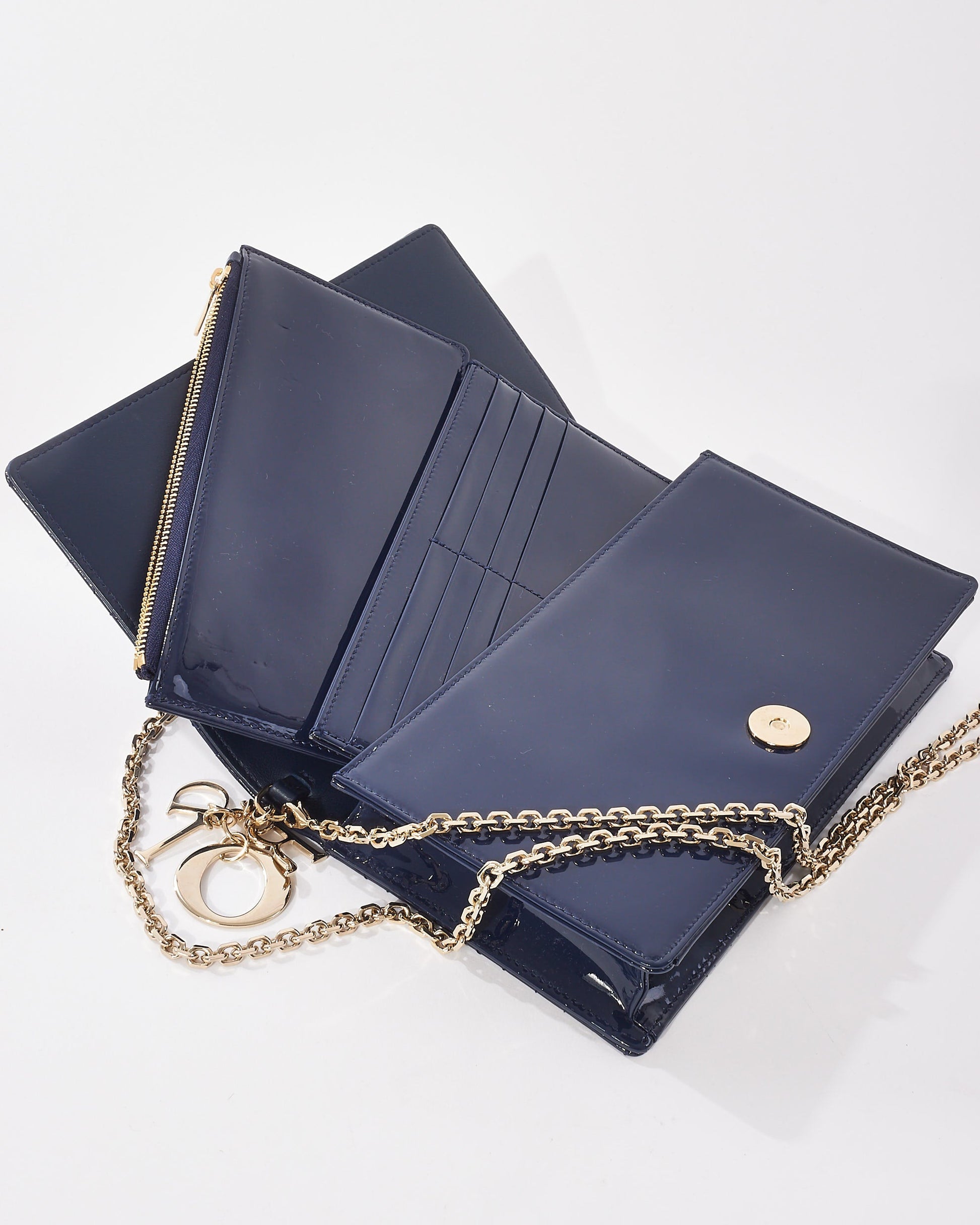 Dior Navy Blue Patent Leather Cannage Lady Dior Wallet On Chain