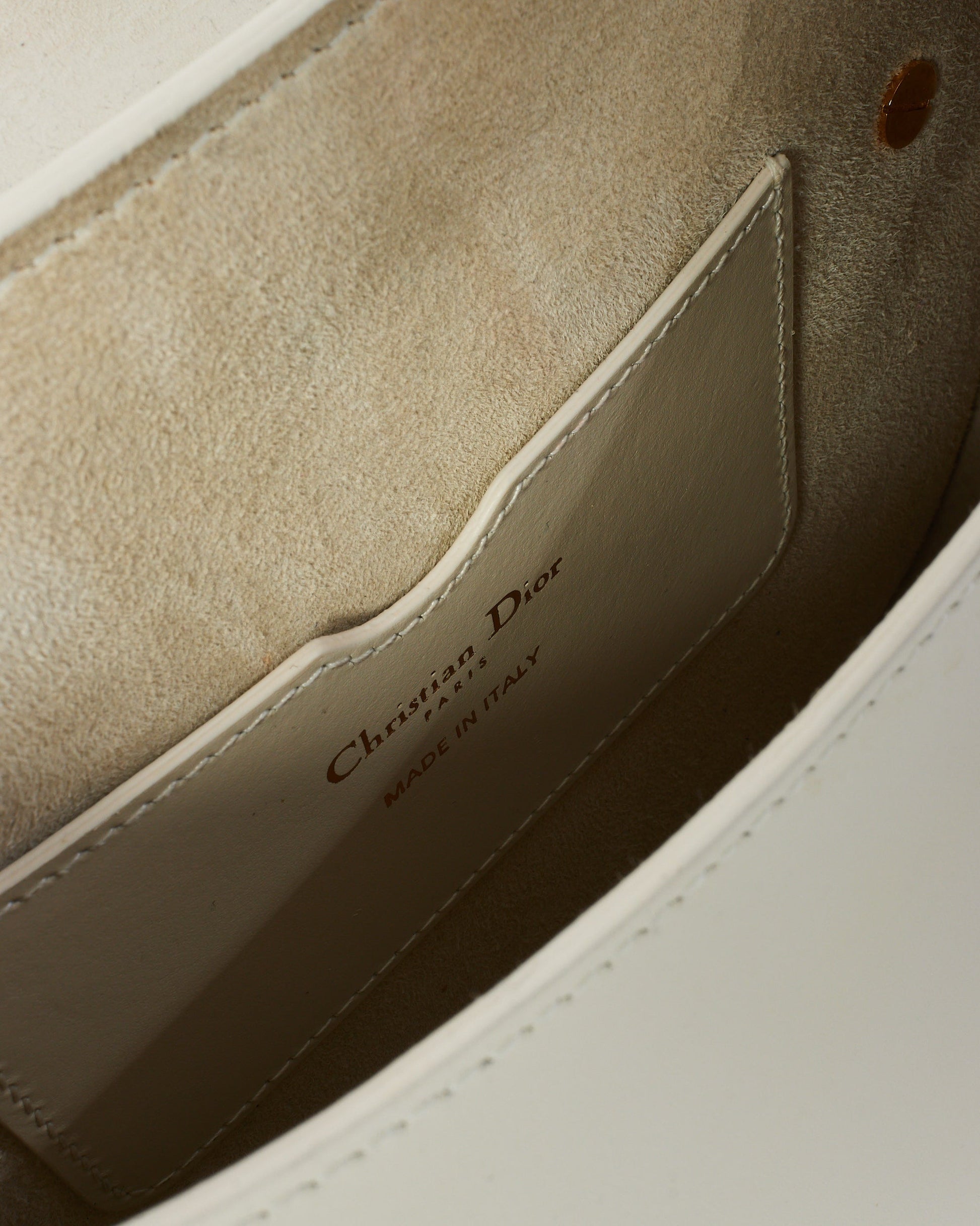 Type: Handbags, Includes: Dust Bag, Condition Rating: Very Good, Color: White, Size: , Style: Crossbody Bags, Origin: Italy, Material: Leather, Brand: Dior, MSRP: $5200, Condition Summary: The item shows some signs of wear and use. Slightly worn corners, creases in leather, fraying or wear, and tarnished hardware may be visible. Any noticeable signs of wear will be stated in the images.