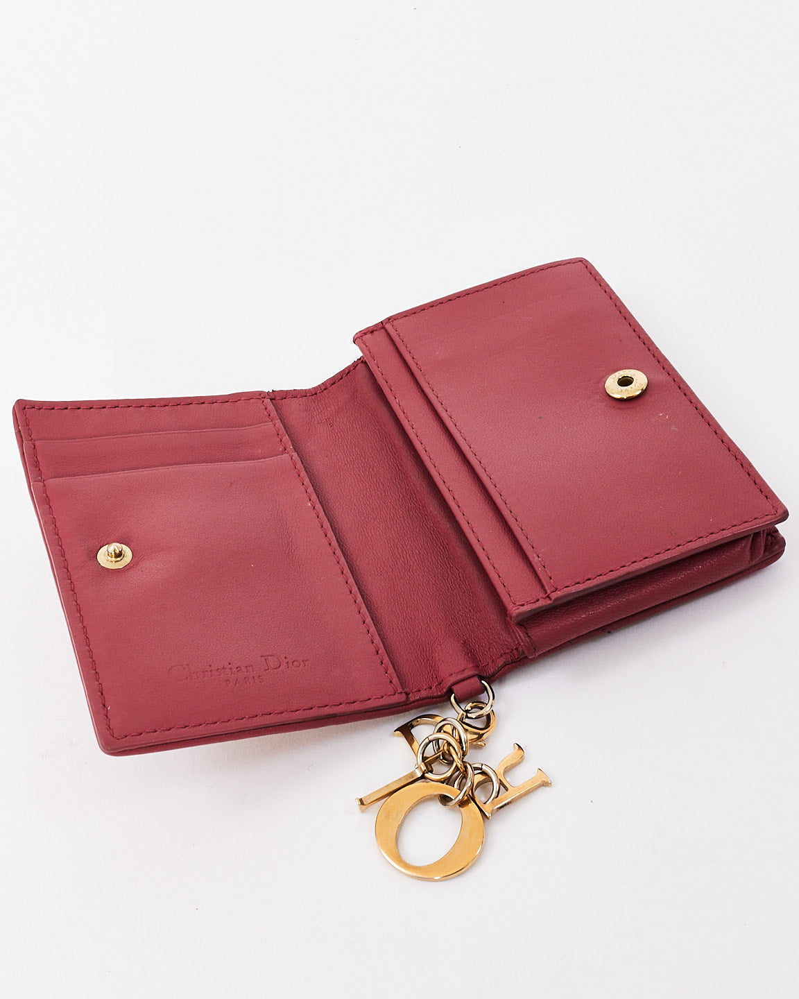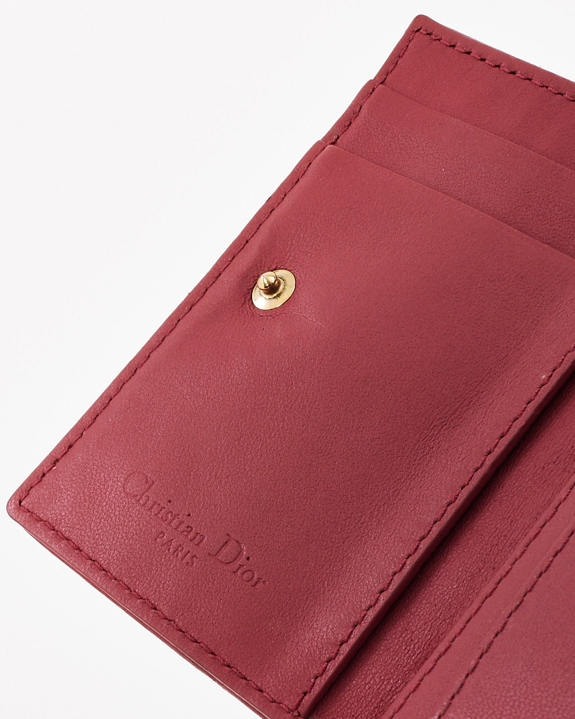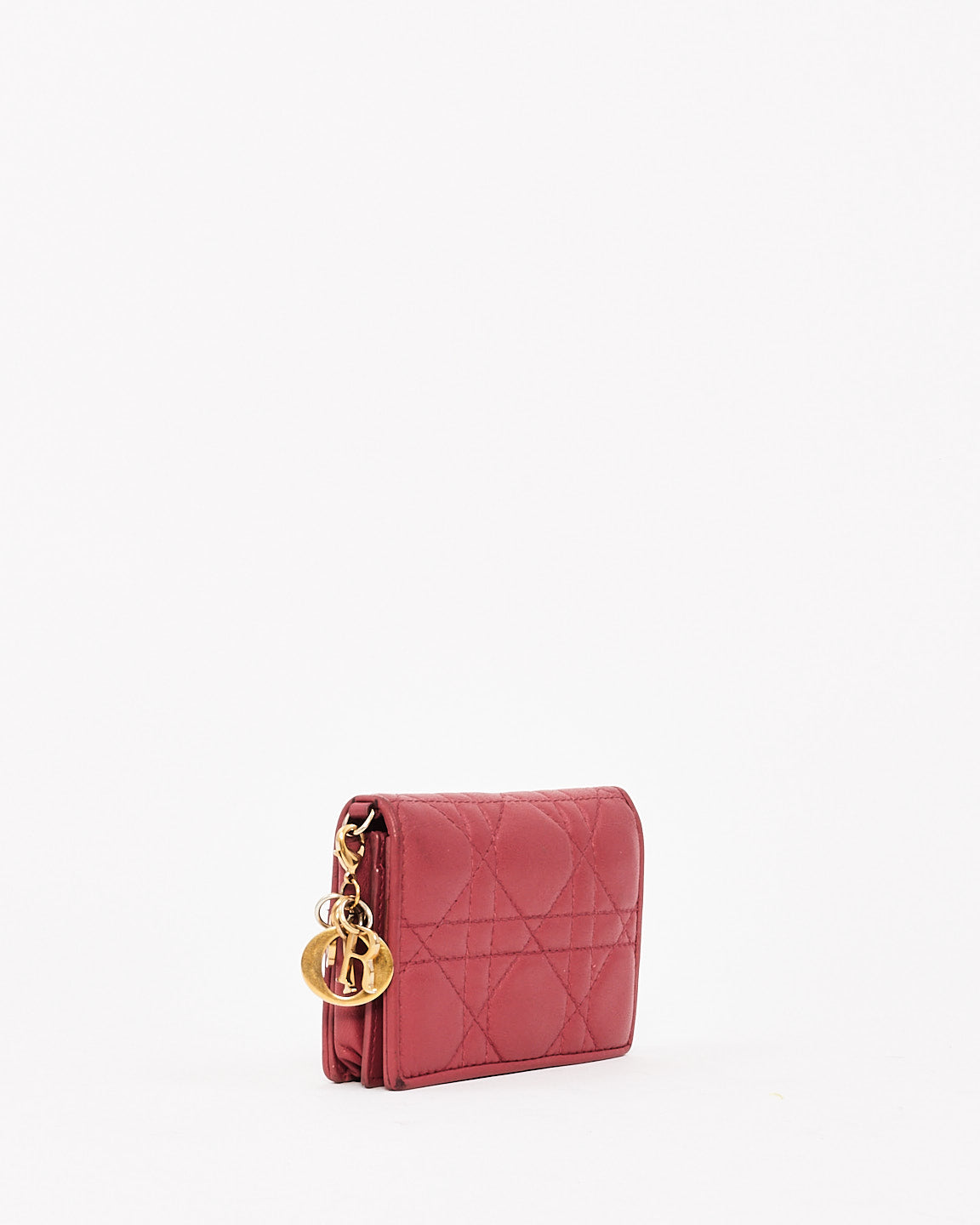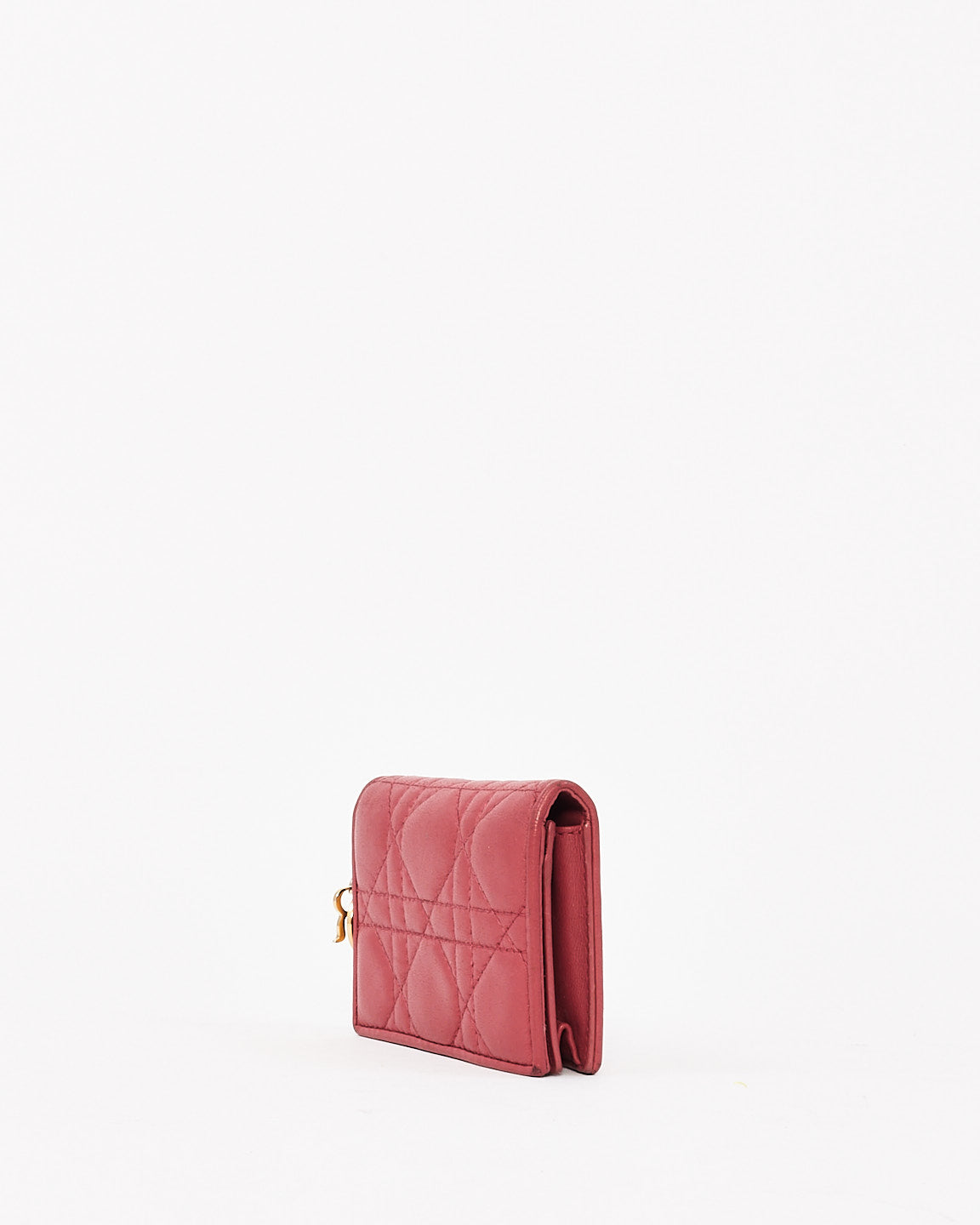 Dior Pink Calfskin Cannage Leather Mini Lady Dior Wallet