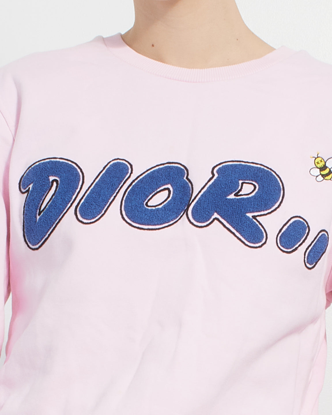 Dior Pink Cotton Blue Logo Oversized Crewneck Sweater - S
