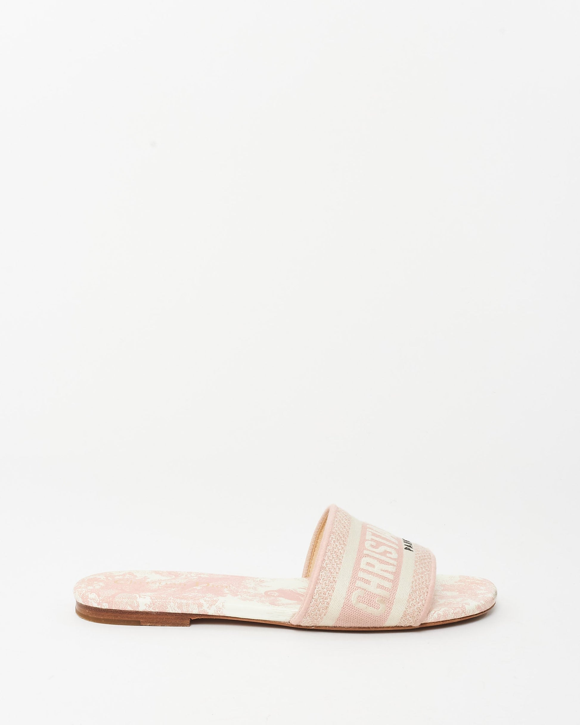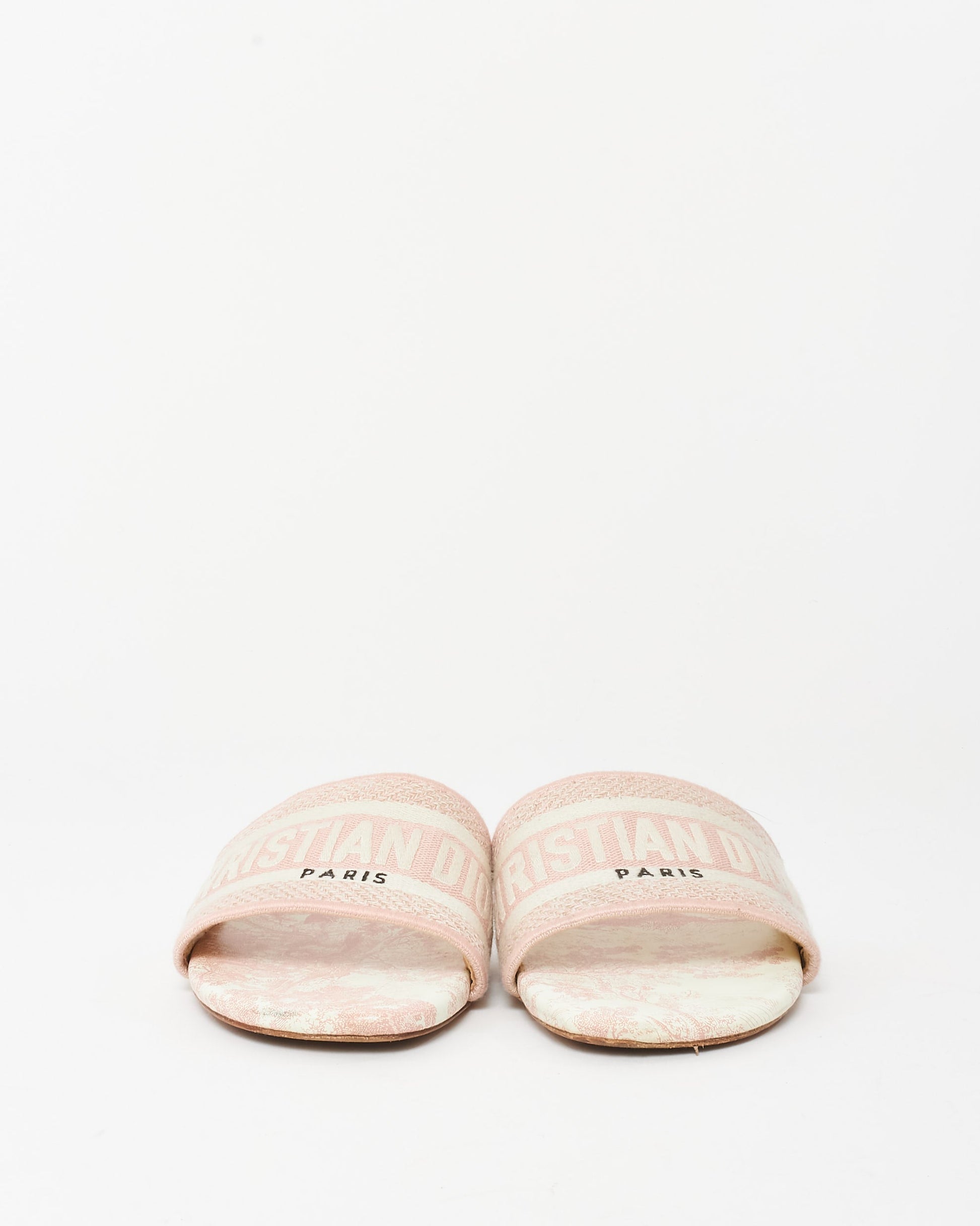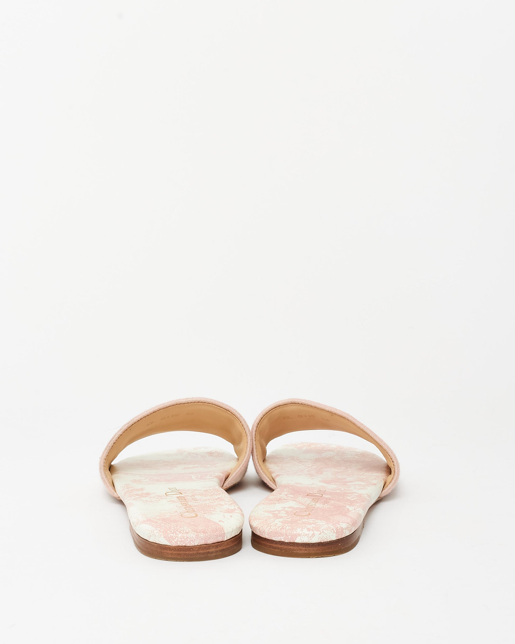 Dior Pink Embroidered Cotton and Toile de Jouy Motif DWay Slides - 36