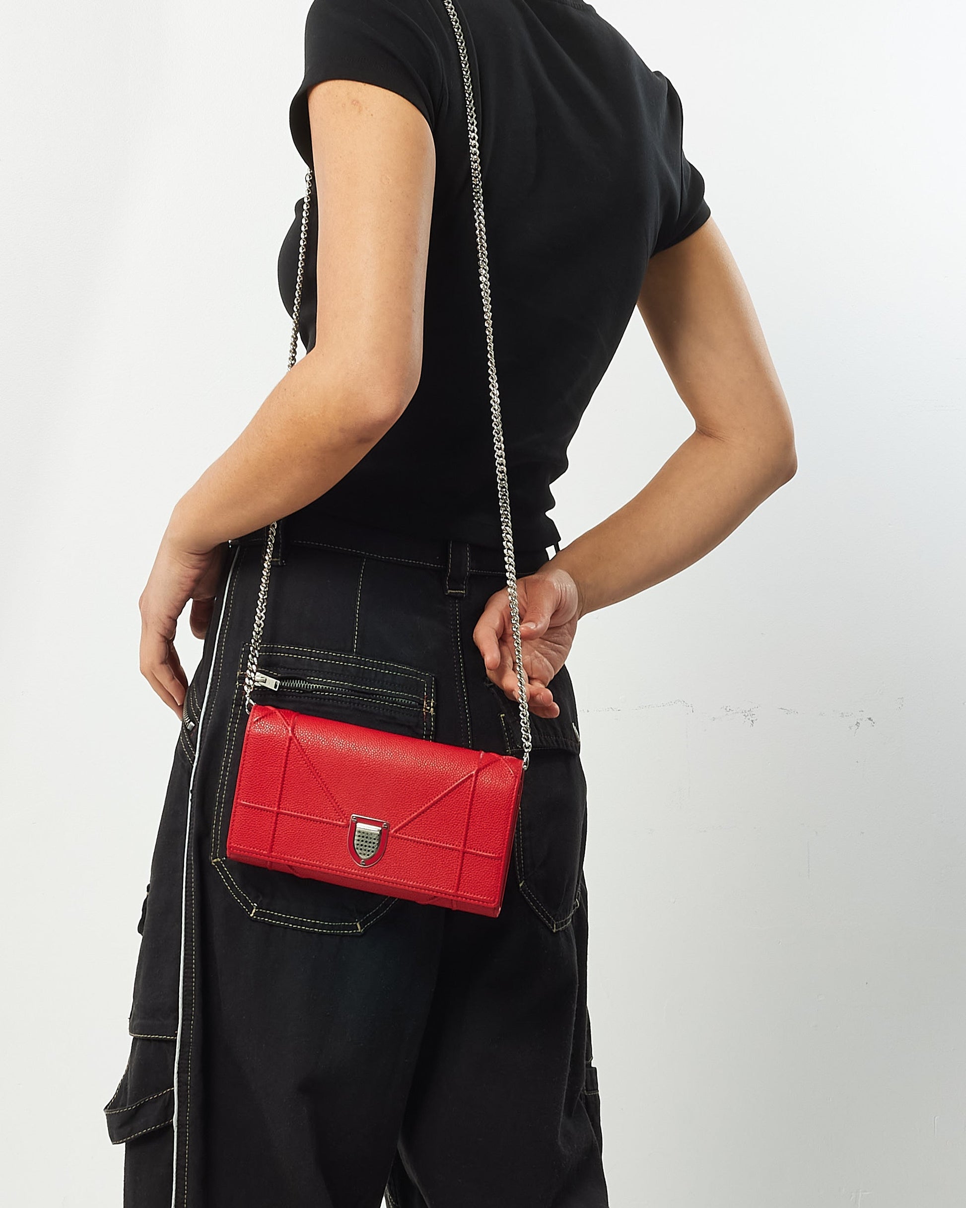 Explore Dior's exquisite collection of handbags, featuring this certified Red Leather Dioramma Wallet On Chain. Embodying timeless elegance and modern sustainability, each piece, including favorites like this, is ated by Retyche. Discover sustainable luxury shop our current treasures or find inspiration for your next coveted find.