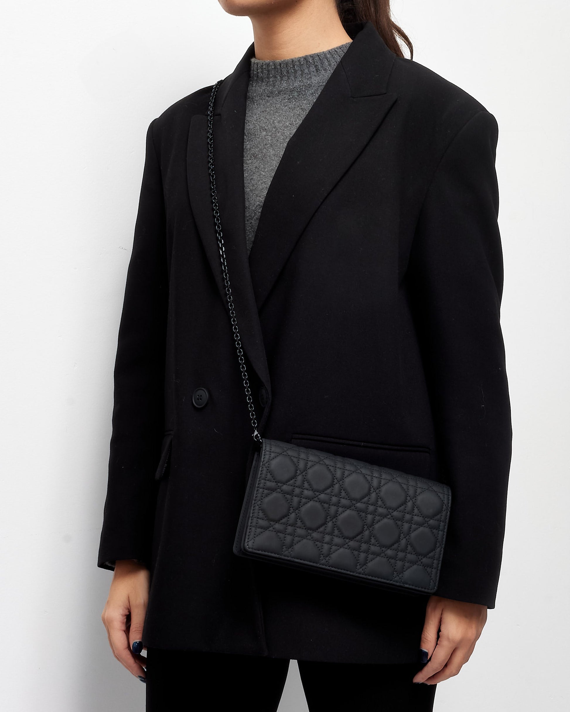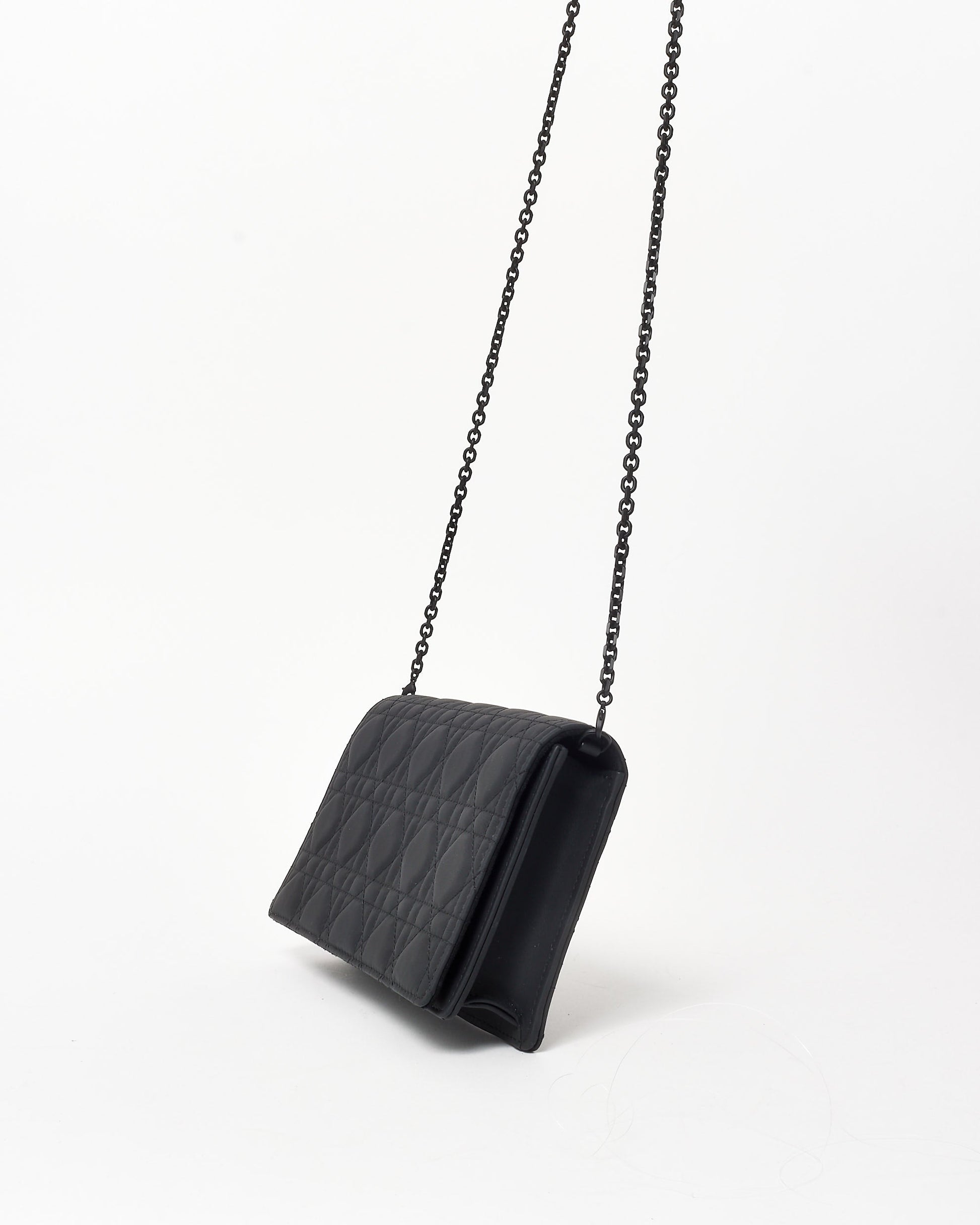 Dior So Black Ultra Matte Leather Cannage Wallet On Chain W/Out Charms