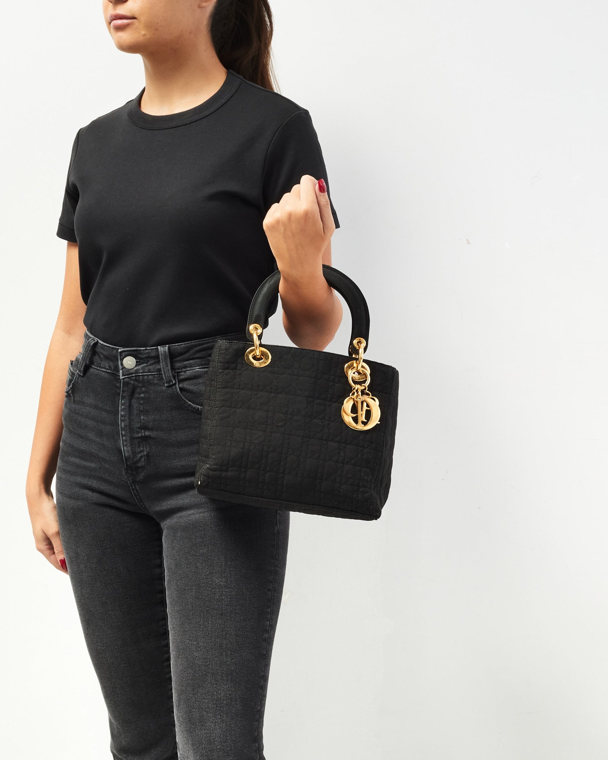 Dior Vintage Black Canvas Medium lady dior Tote