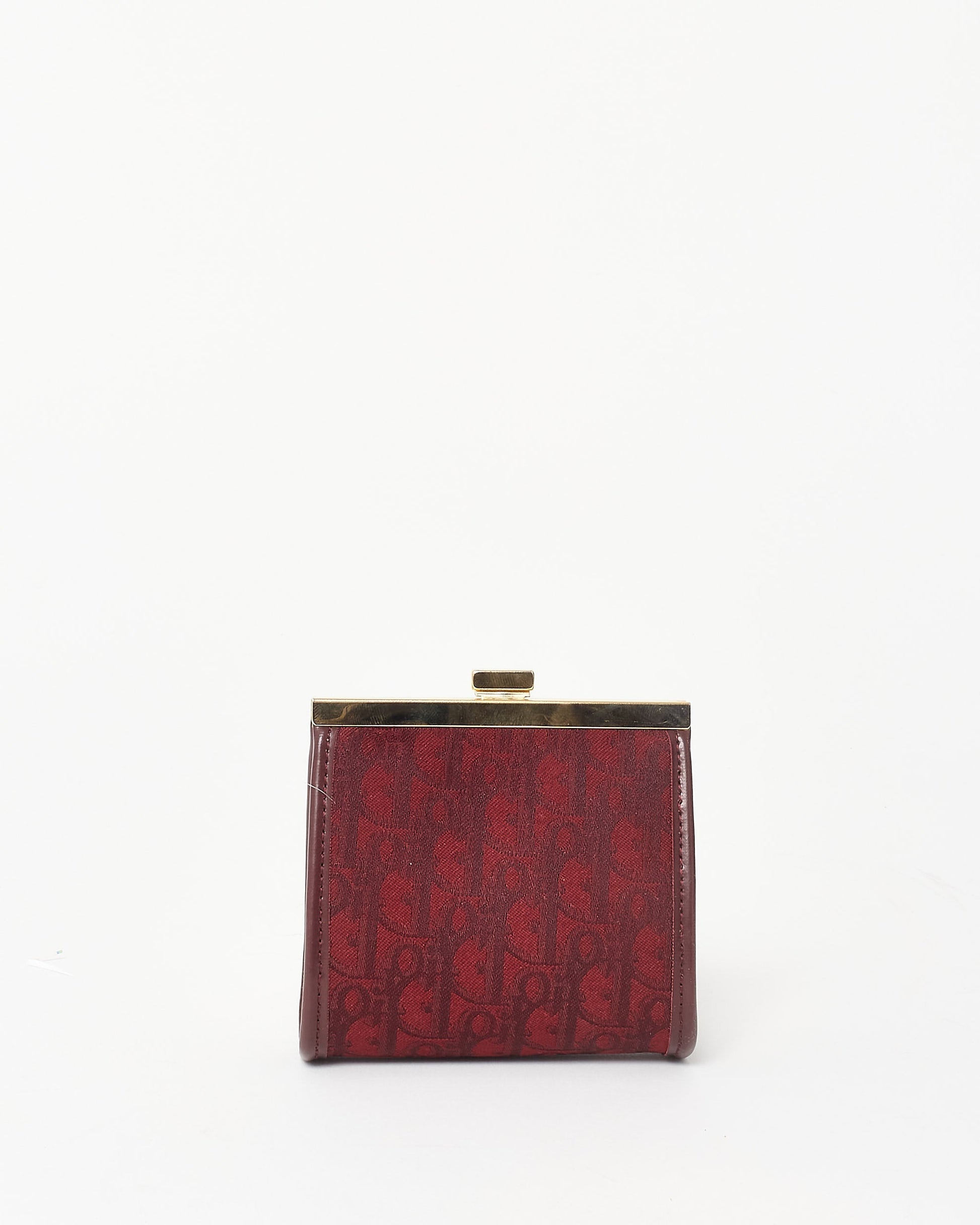 This Is an Dior Vintage Burgundy Oblique Coin Purse. A timeless accessory that showcases Diors iconic craftsmanship and design heritage. Featuring the signature Oblique canvas print in rich burgundy tones, gold hardware - this compact coin purse is as stylish as it is practical, making it a perfect addition to your everyday essentials. Shop Dior accessories and wallets at Retyche.