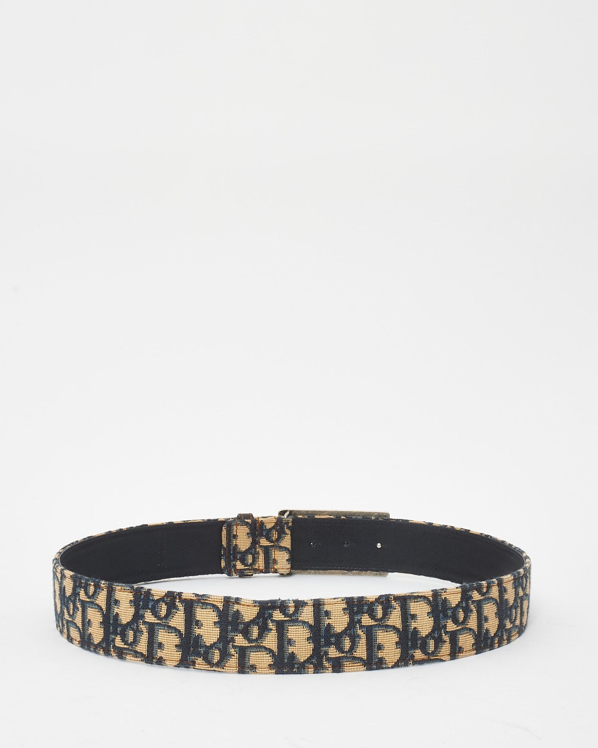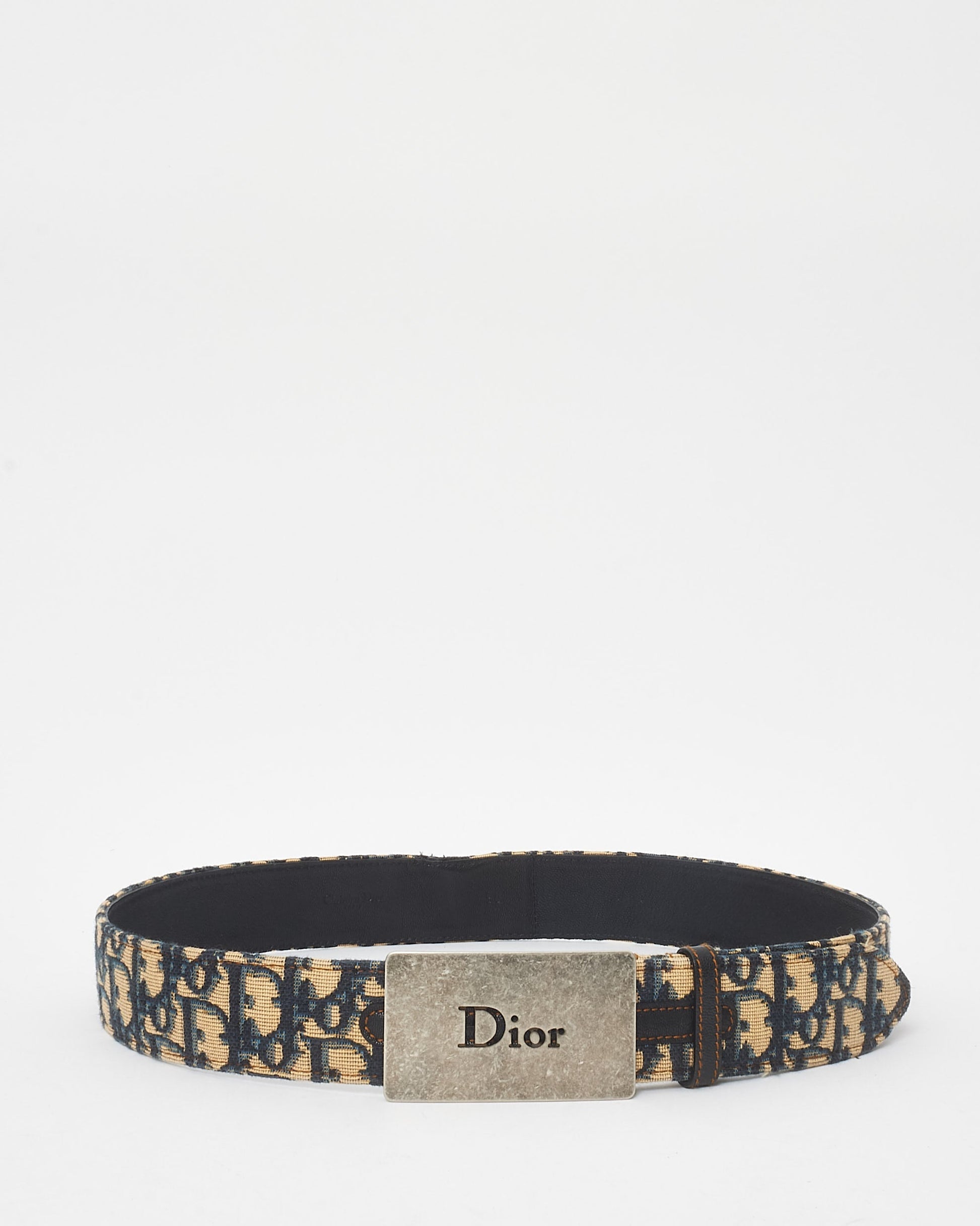 Dior Vintage Navy Blue Oblique Canvas Silver Plaque Belt - 90
