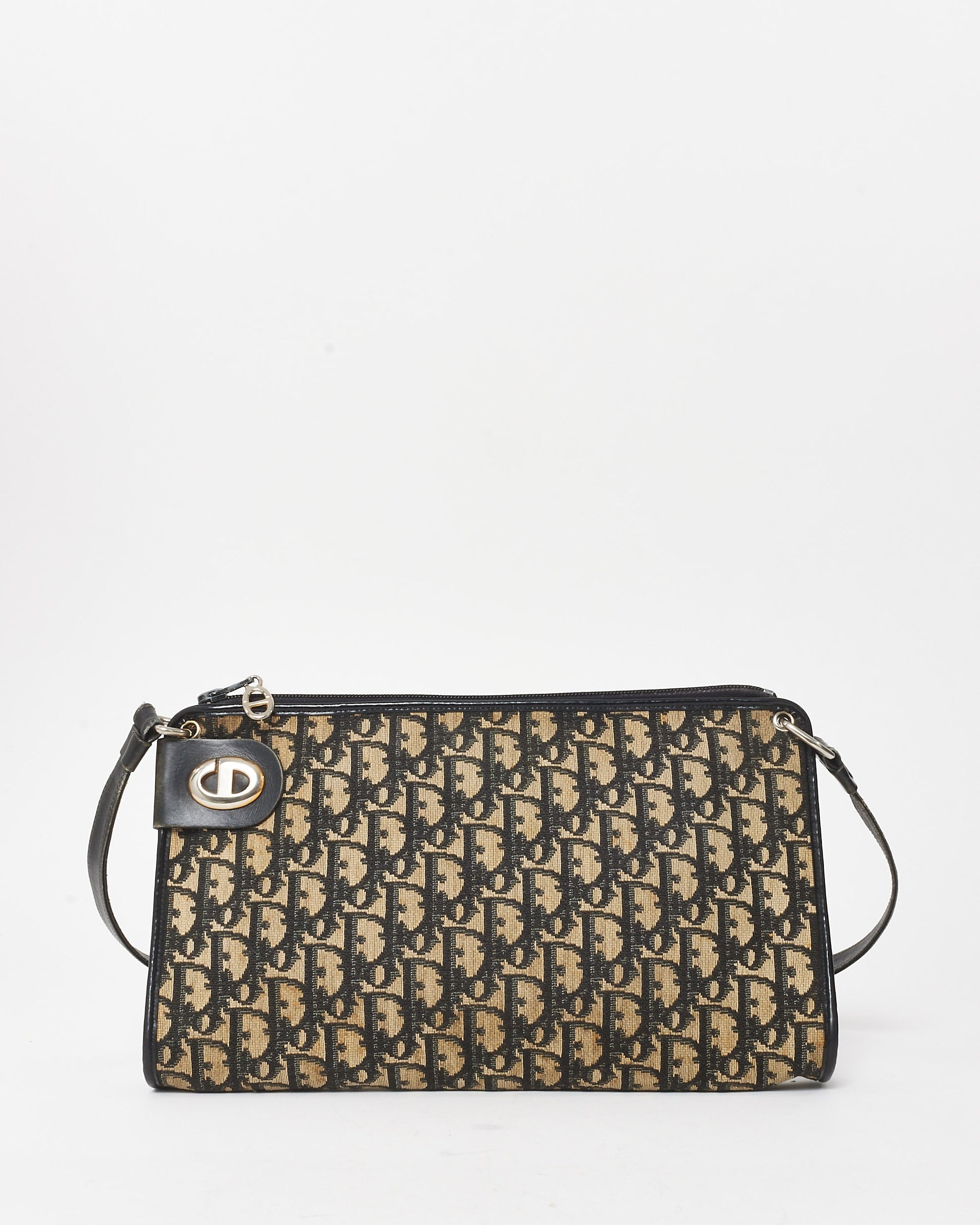 Dior Vintage Navy Oblique Canvas Shoulder Bag
