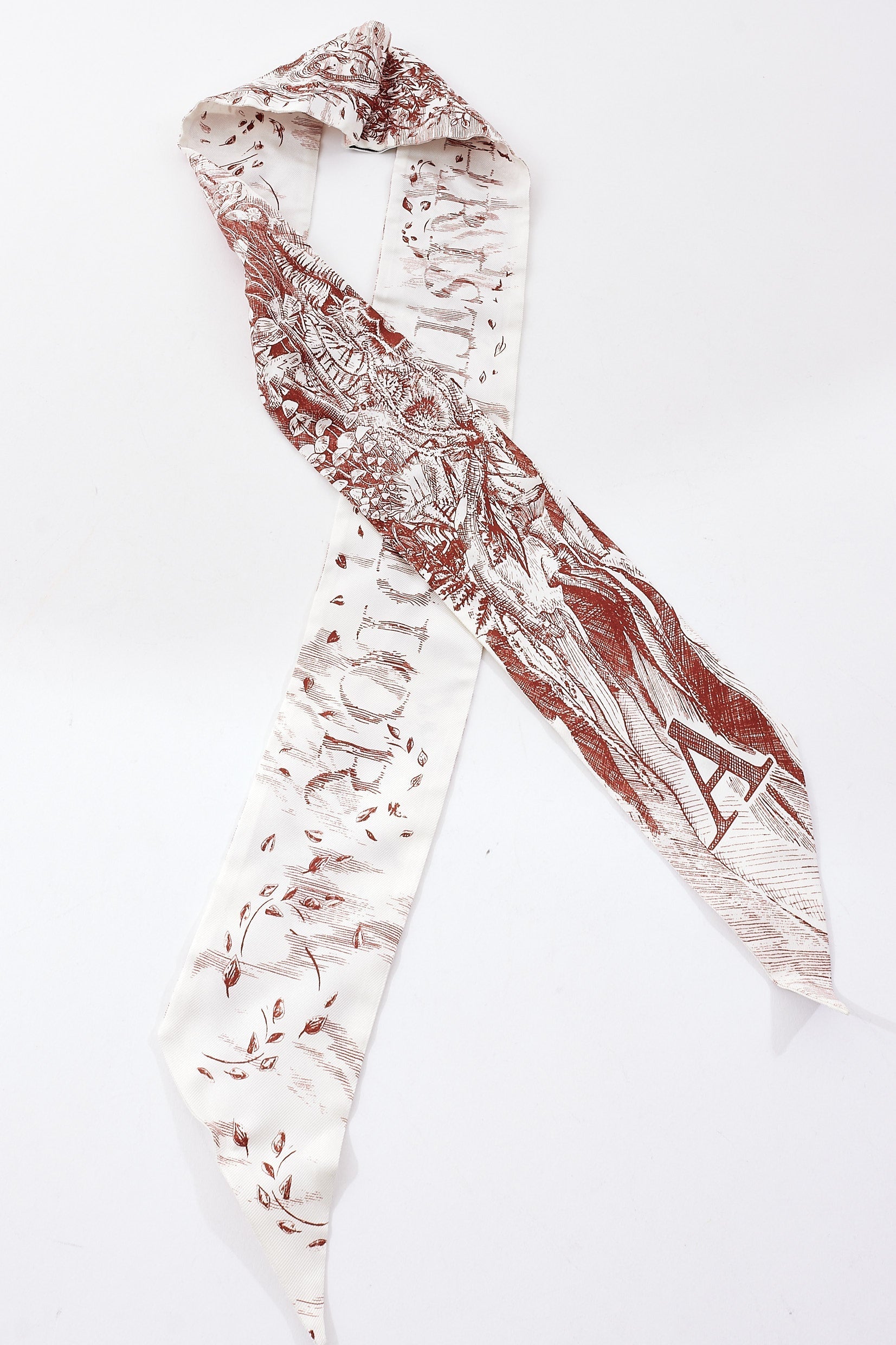 Dior White & Burgundy Toile De Joie Silk Twilly