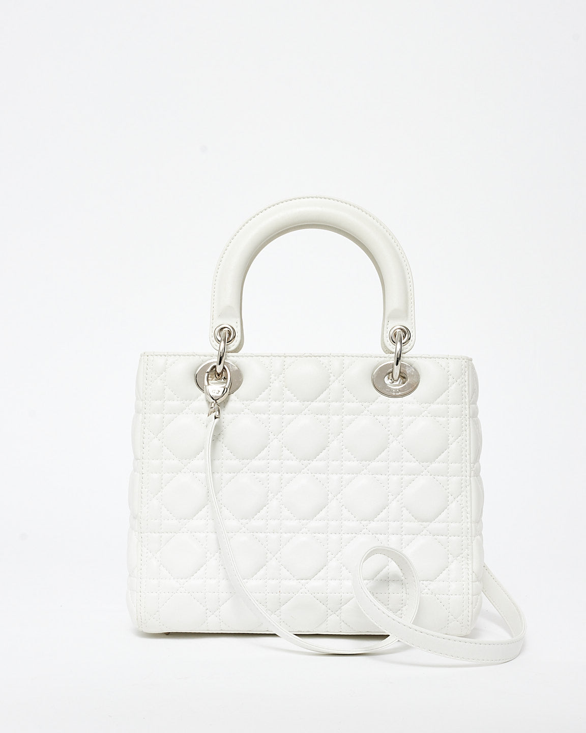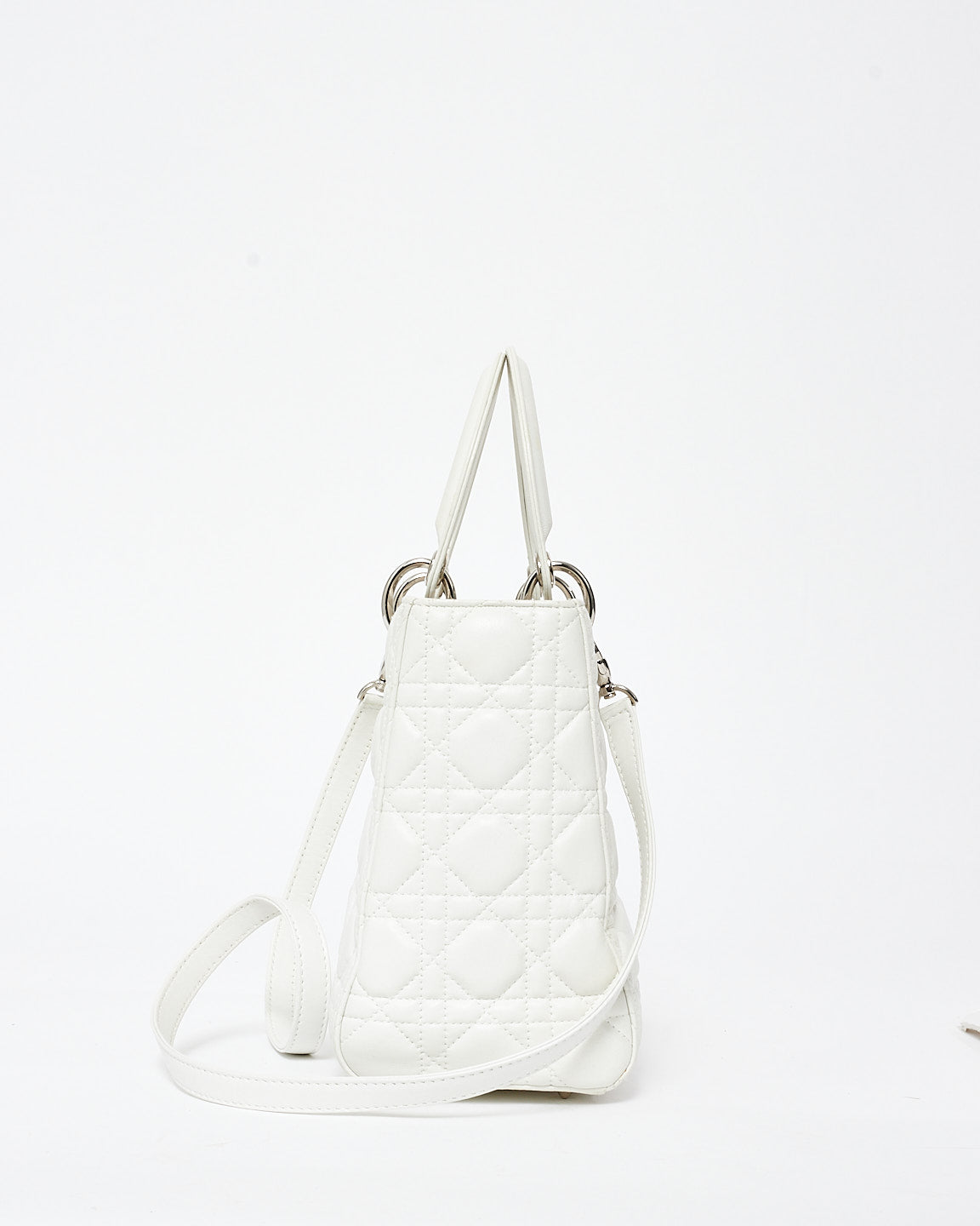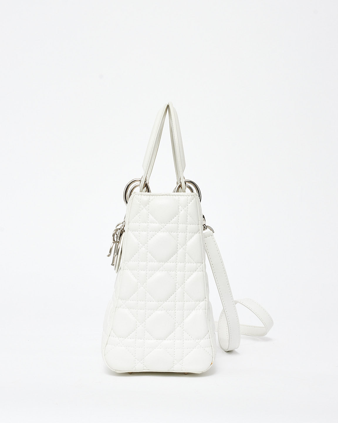 Dior White Cannage Lambskin Leather Medium Lady Dior