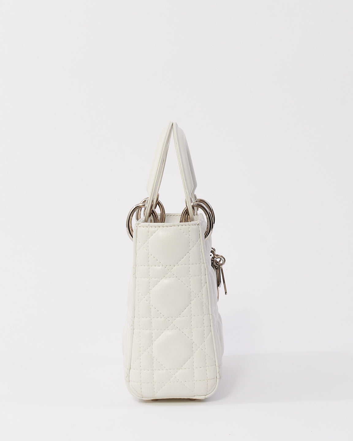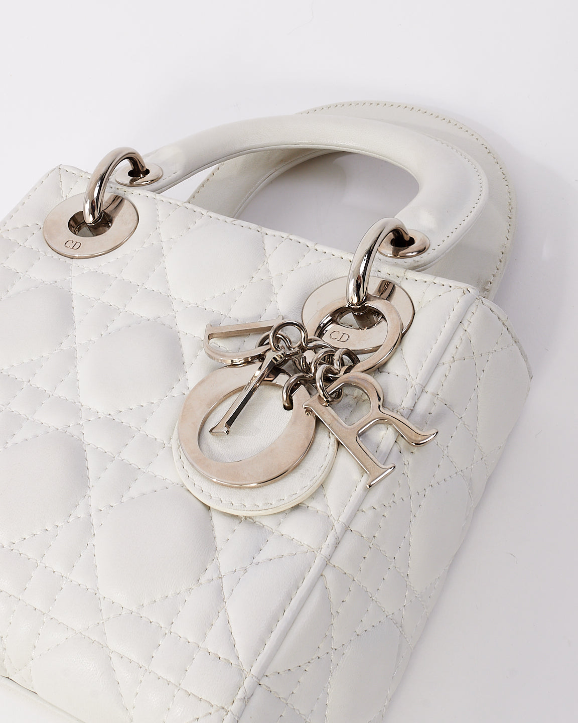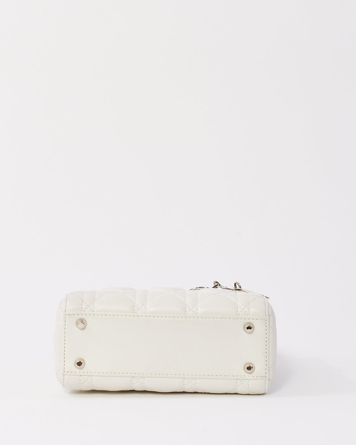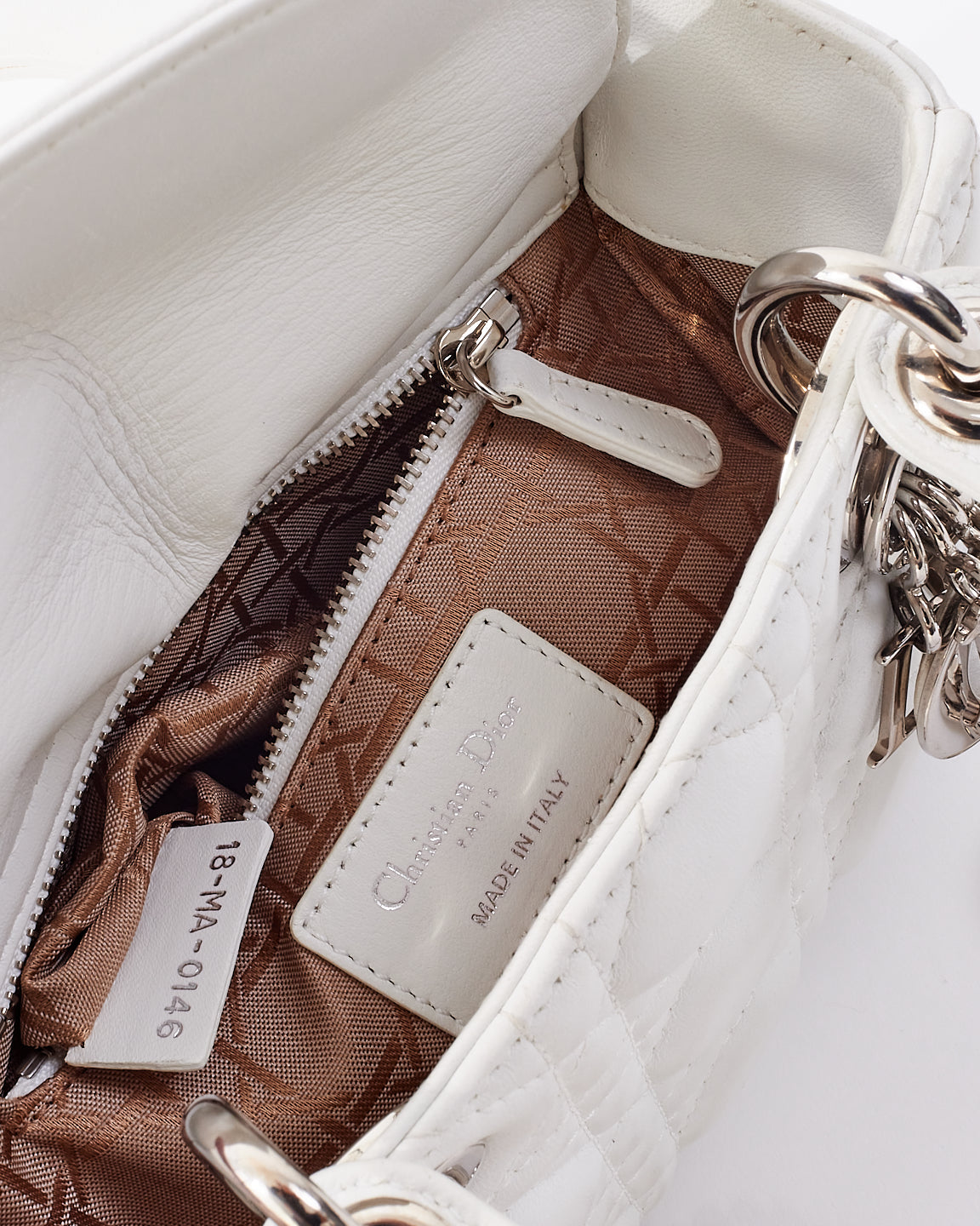 Dior White Cannage Leather Mini Lady Dior with Chain Strap
