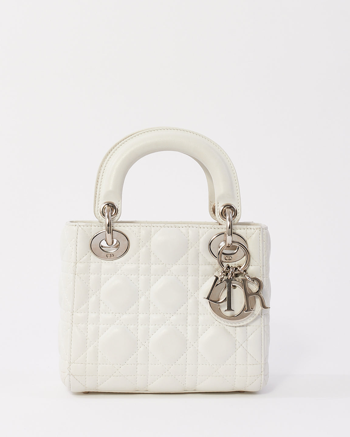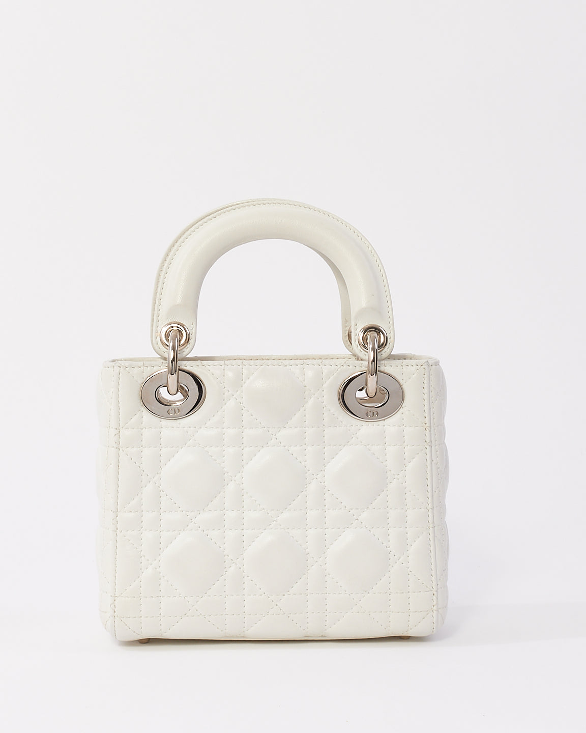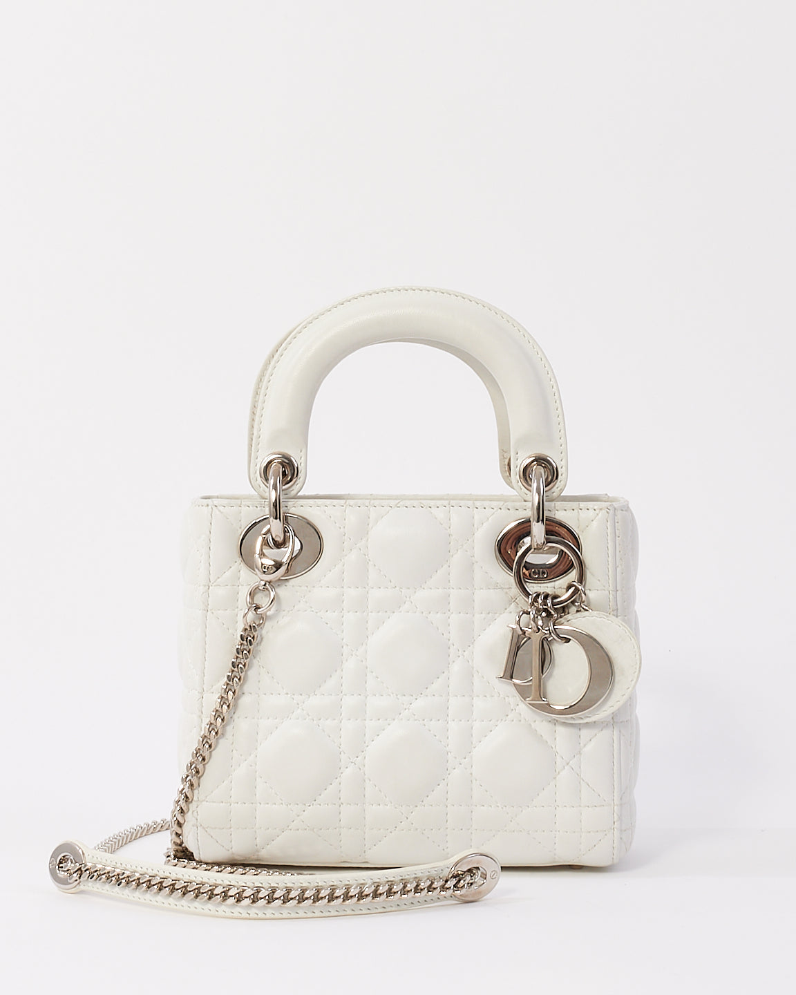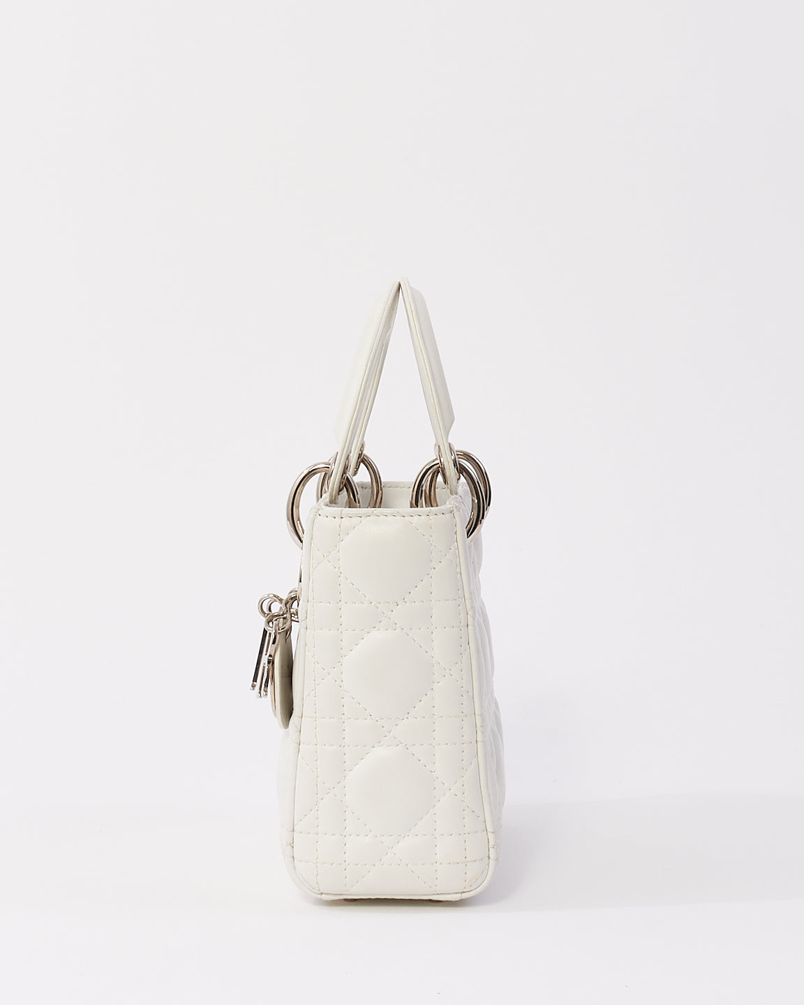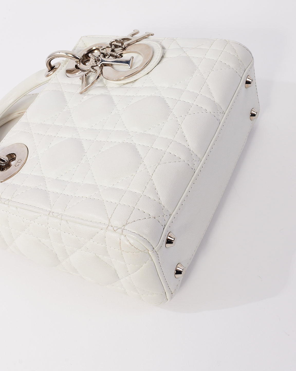 Dior White Cannage Leather Mini Lady Dior with Chain Strap