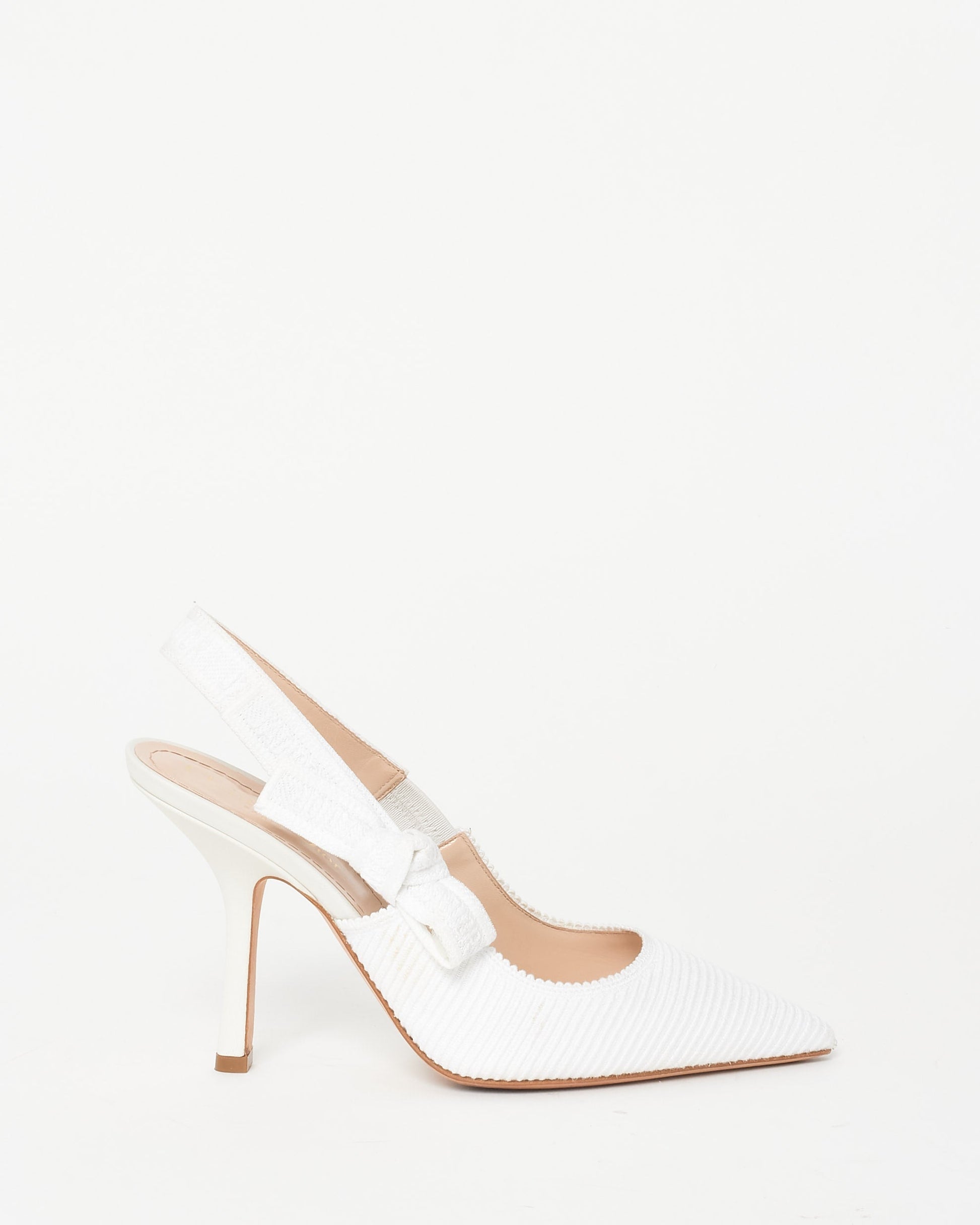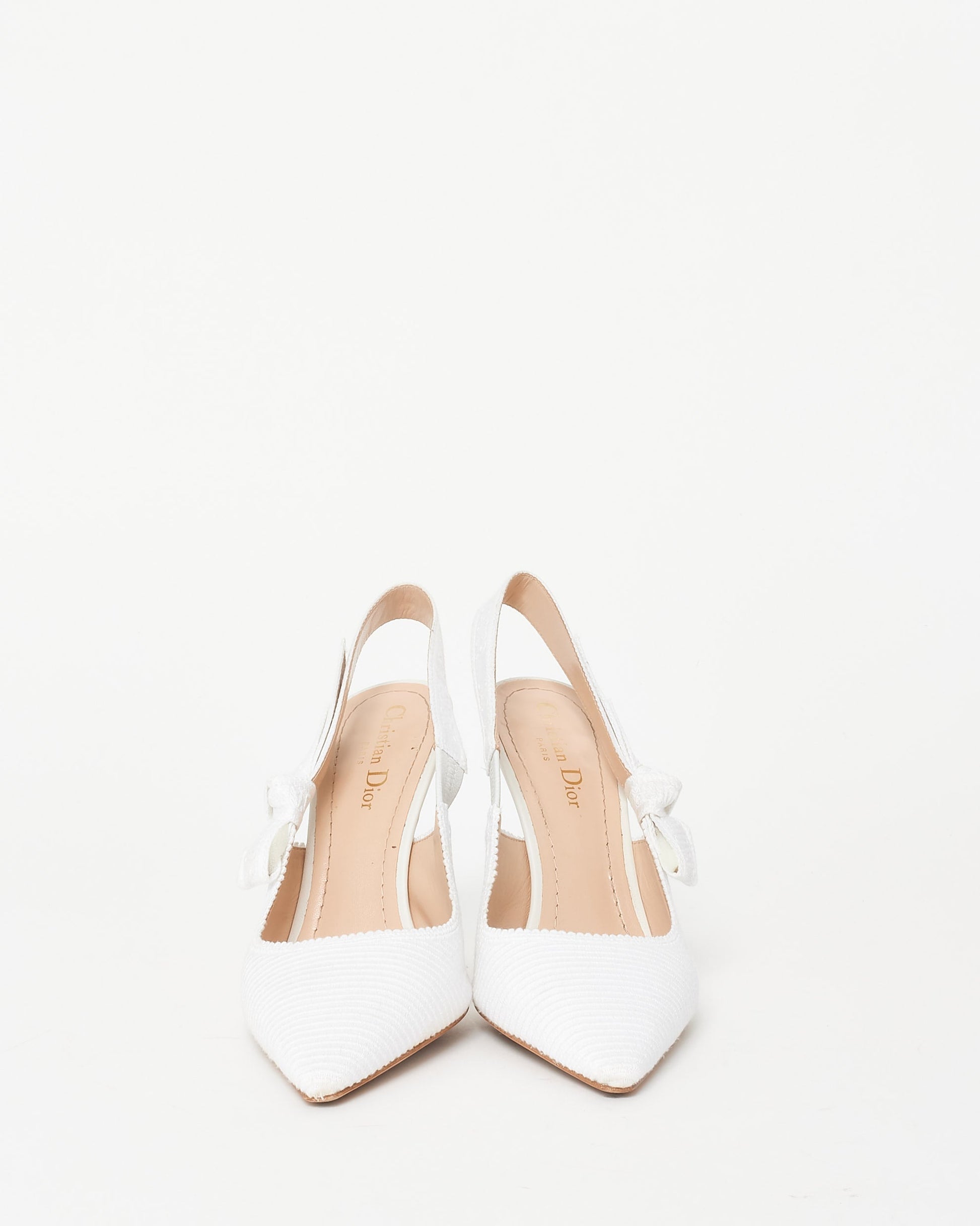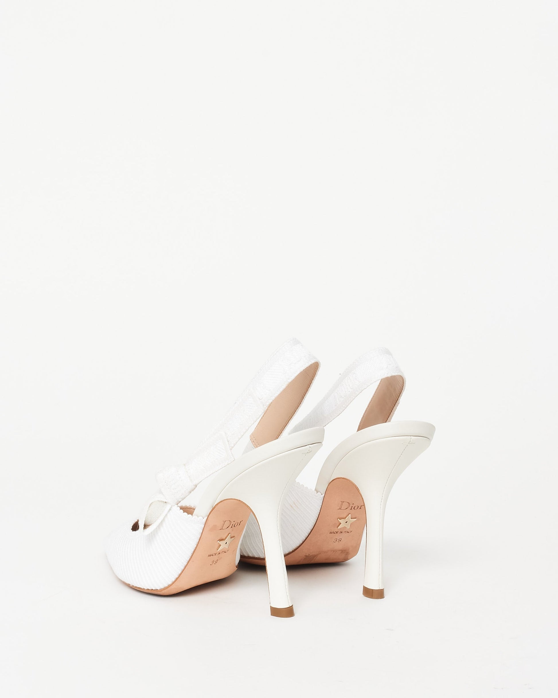 Dior White Embroidered Fabric J'Adior Slingback 10CM Pumps - 39