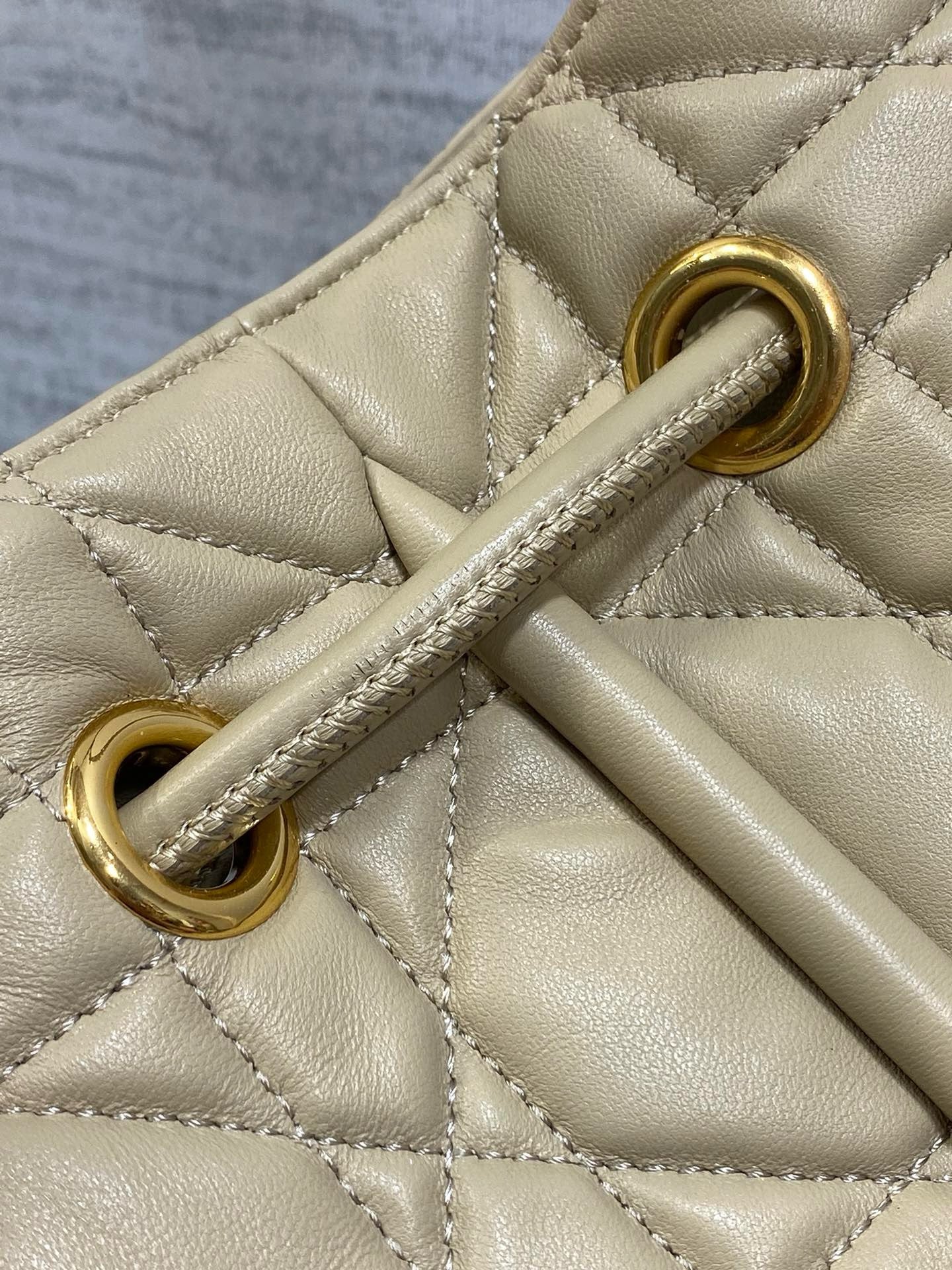 New for Fall 2024, the Dior Nolita bag redefines House codes of modern elegance with a refined and contemporary silhouette. The black Macrocannage lambskin is complemented by structured top handles embellished with antique gold-finish metal, as well as sliding D.I.O.R. charms which lend a touch of movement. The drawstring closure reveals a practical interior with a slip pocket, while the adjustable and removable leather strap allows the medium bag to be carried by hand, worn over the shoulder or crossbody.