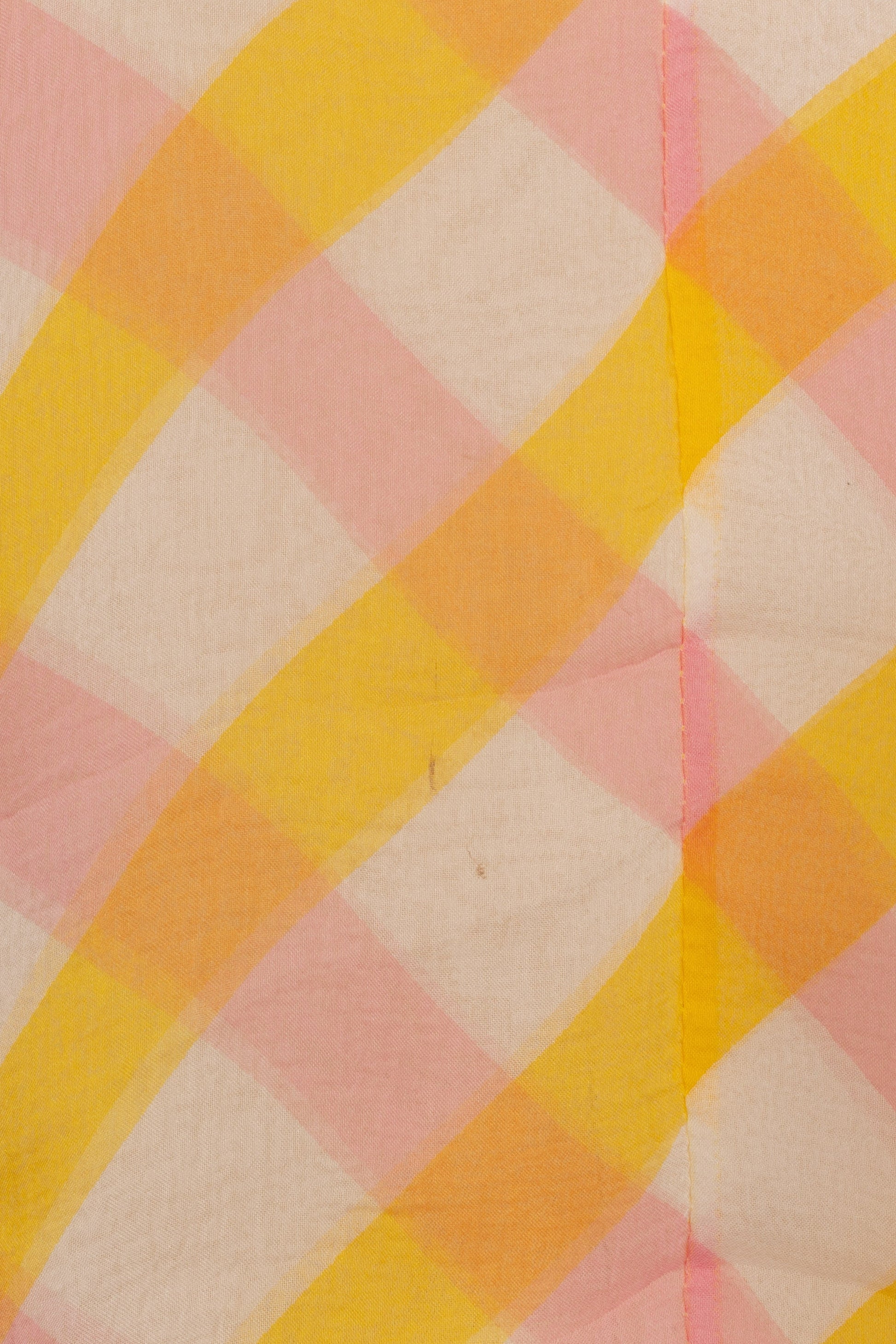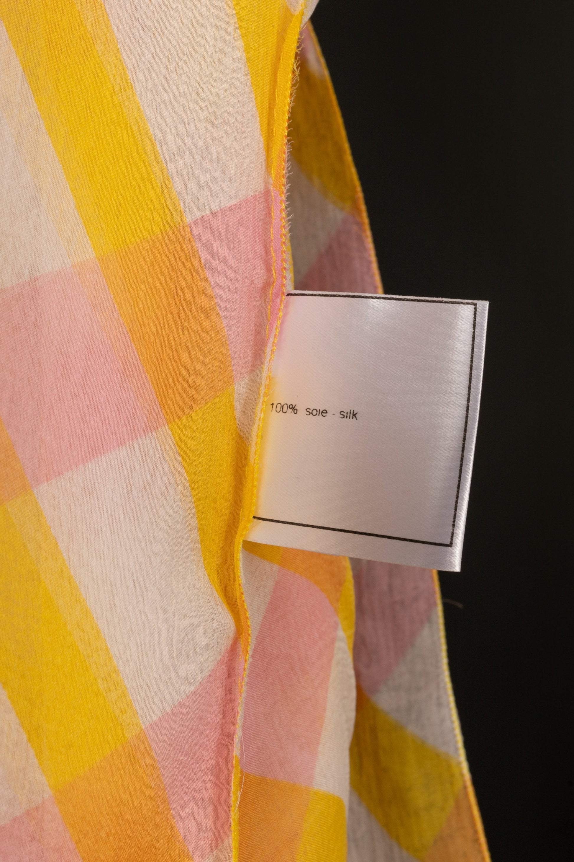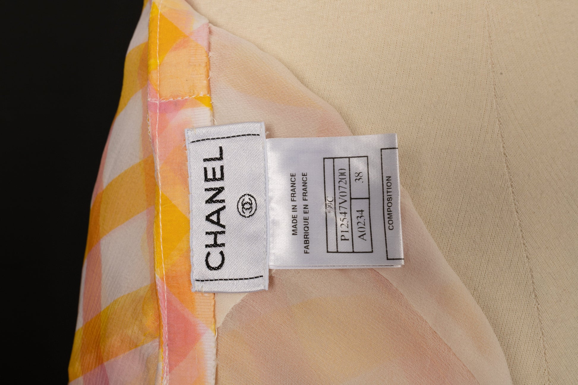 CHANEL - (Made in France) Ensemble compos dun top nouer et dune jupe en crpe mousseline de soie imprim dun motif de carreaux jaune, rose, cru. Taille indique 38FR. Collection croisire 1999.