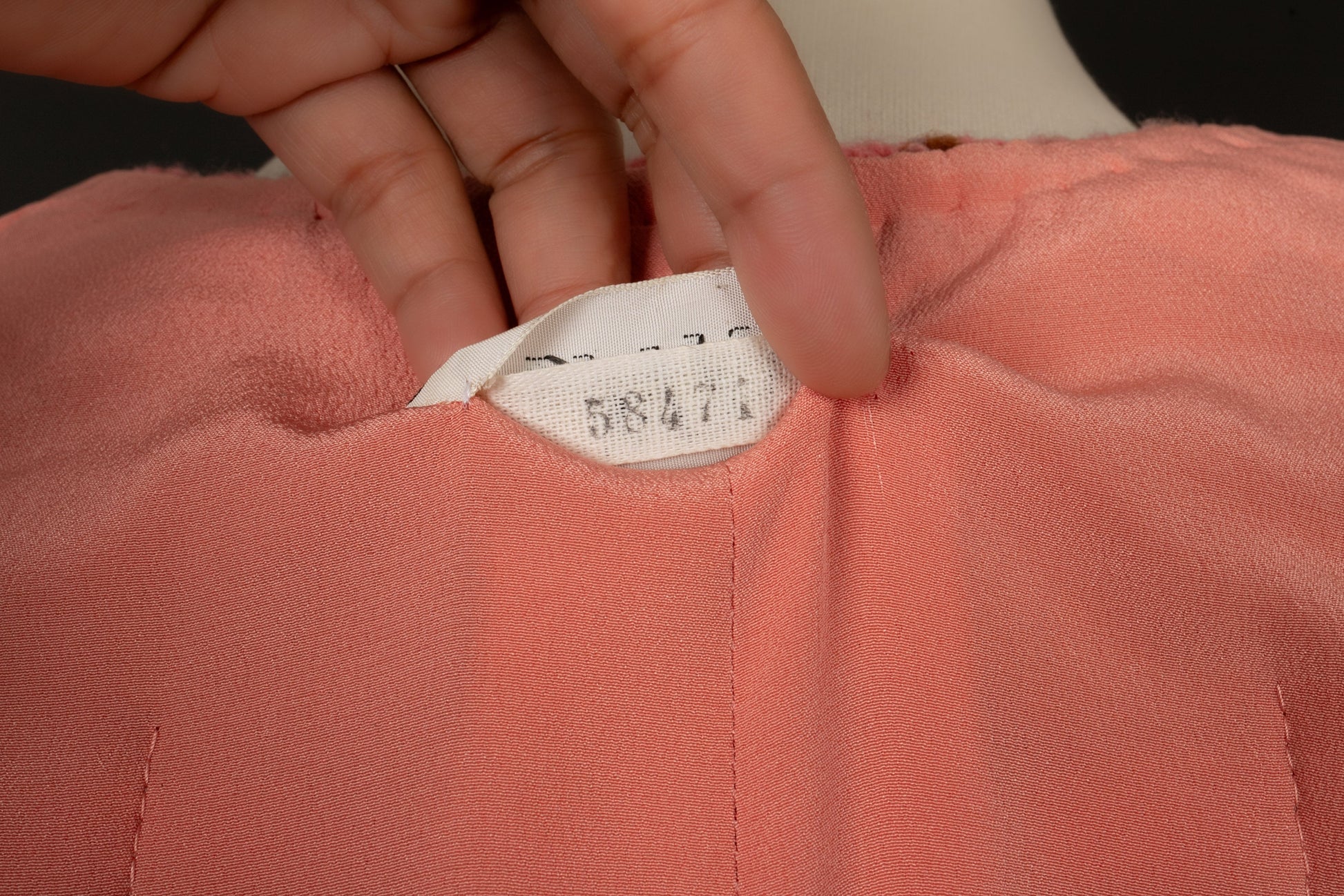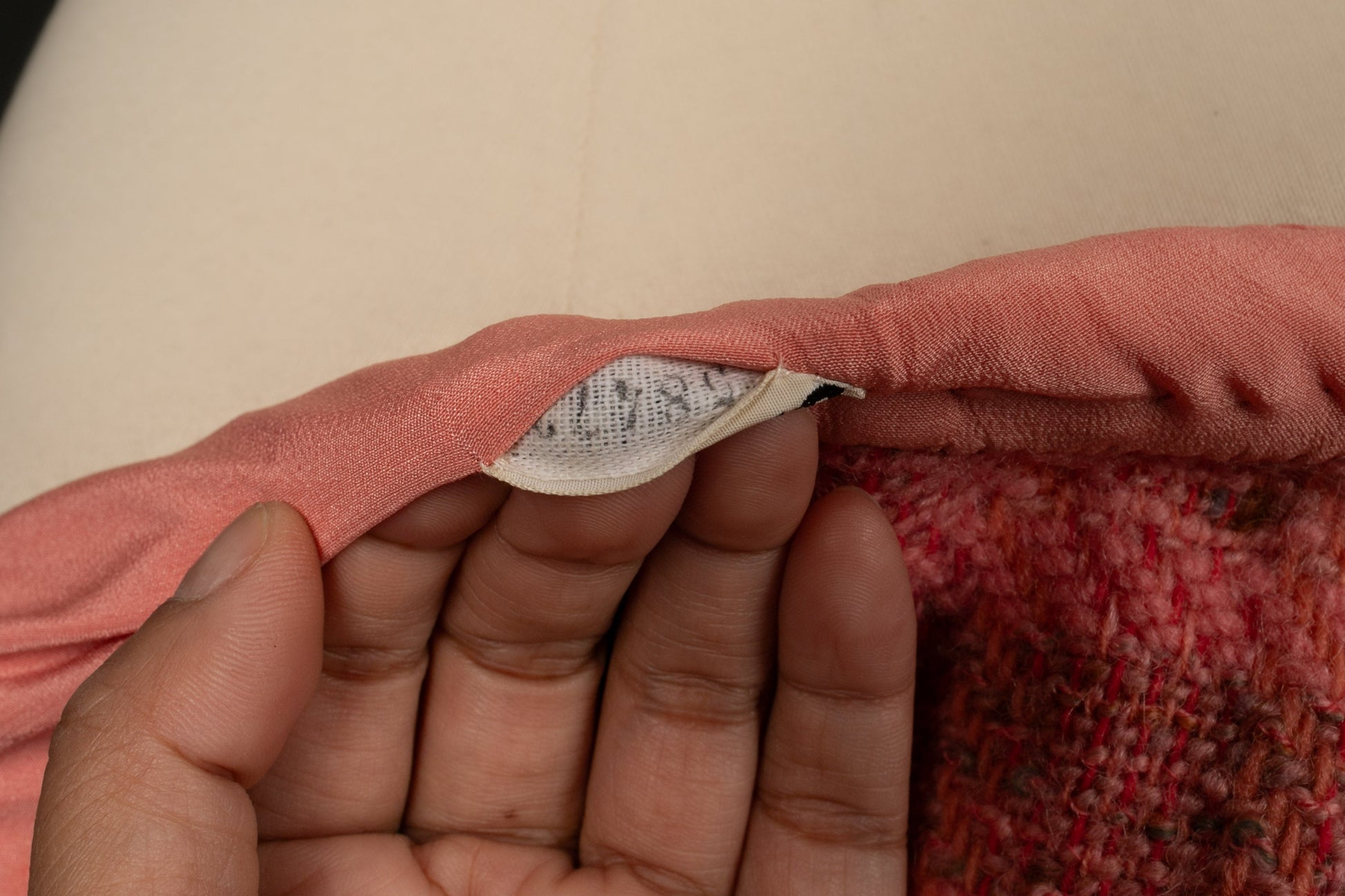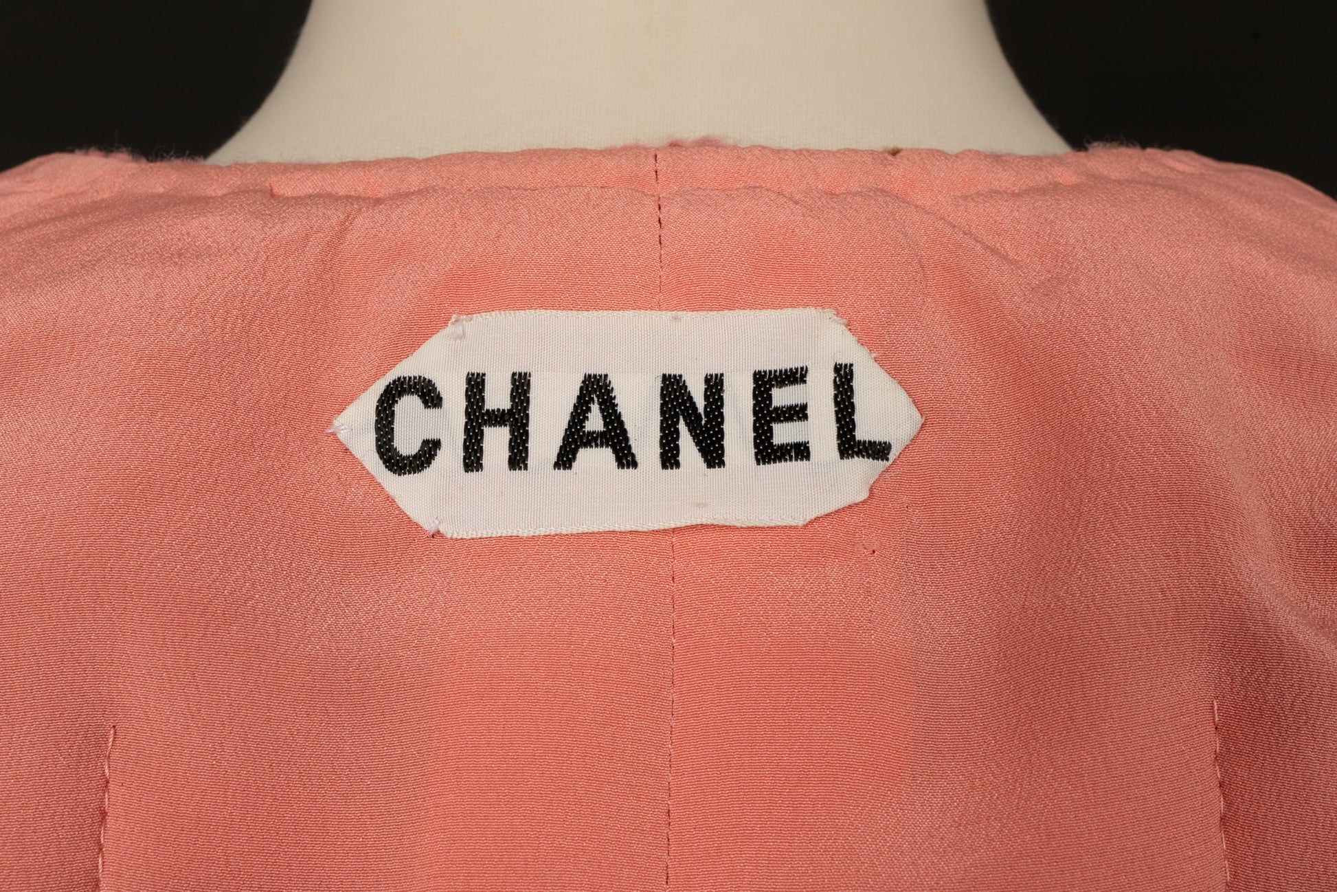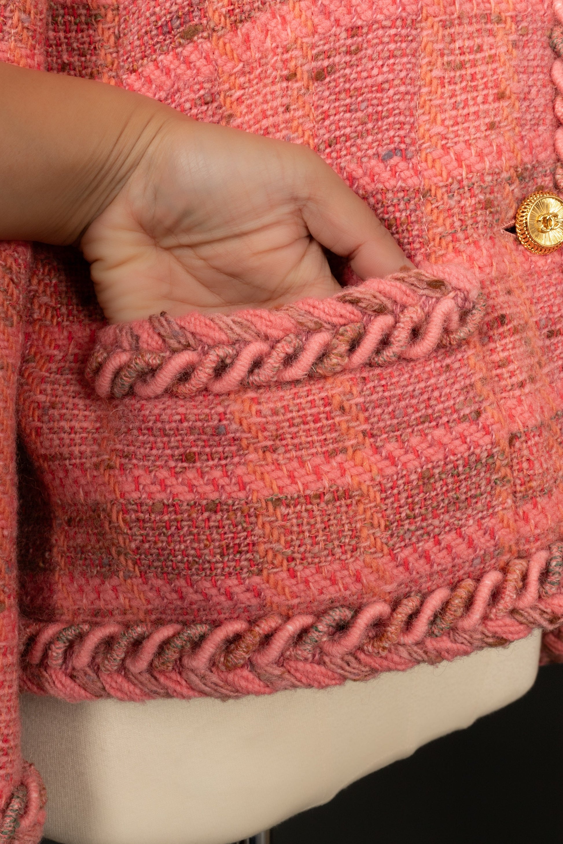 CHANEL - Ensemble de tailleur Haute Couture compos d'une jupe et veste en tweed dans les tons de rose, agrment de boutons en mtal dor. Pas de taille indique, il convient un 36 FR.