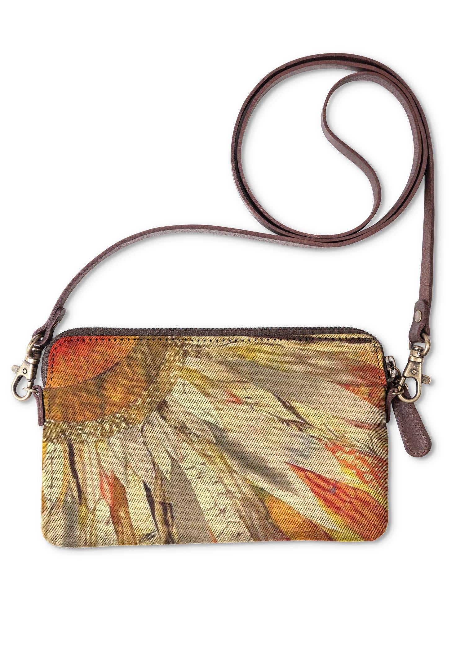 Carry it as a clutch or wear it as a purse - this art-infused canvas bag with removable leather strap is a standout accessory for any occasion.