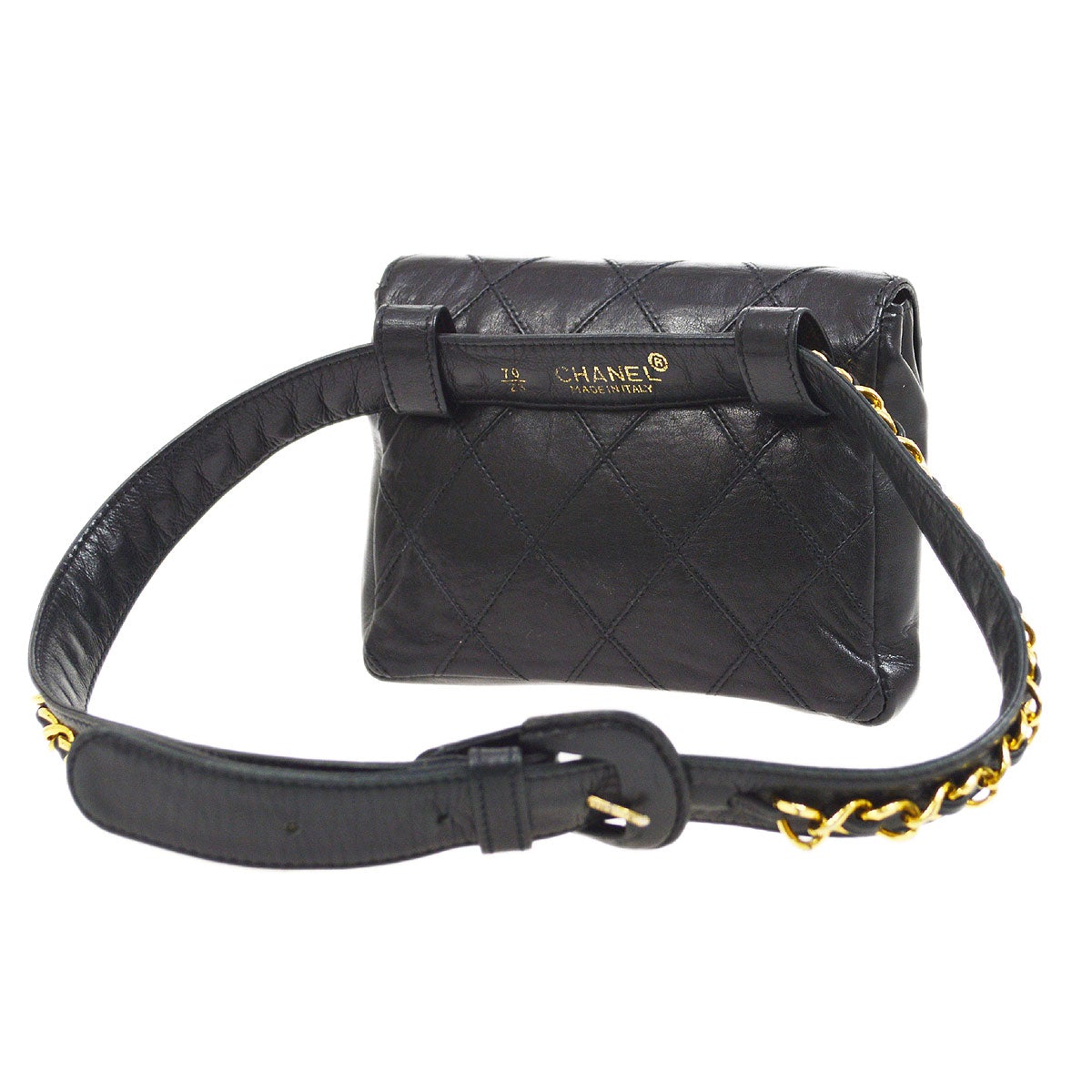 CHANEL 1991-1994 Black Lambskin Cosmoline Belt Bag #70