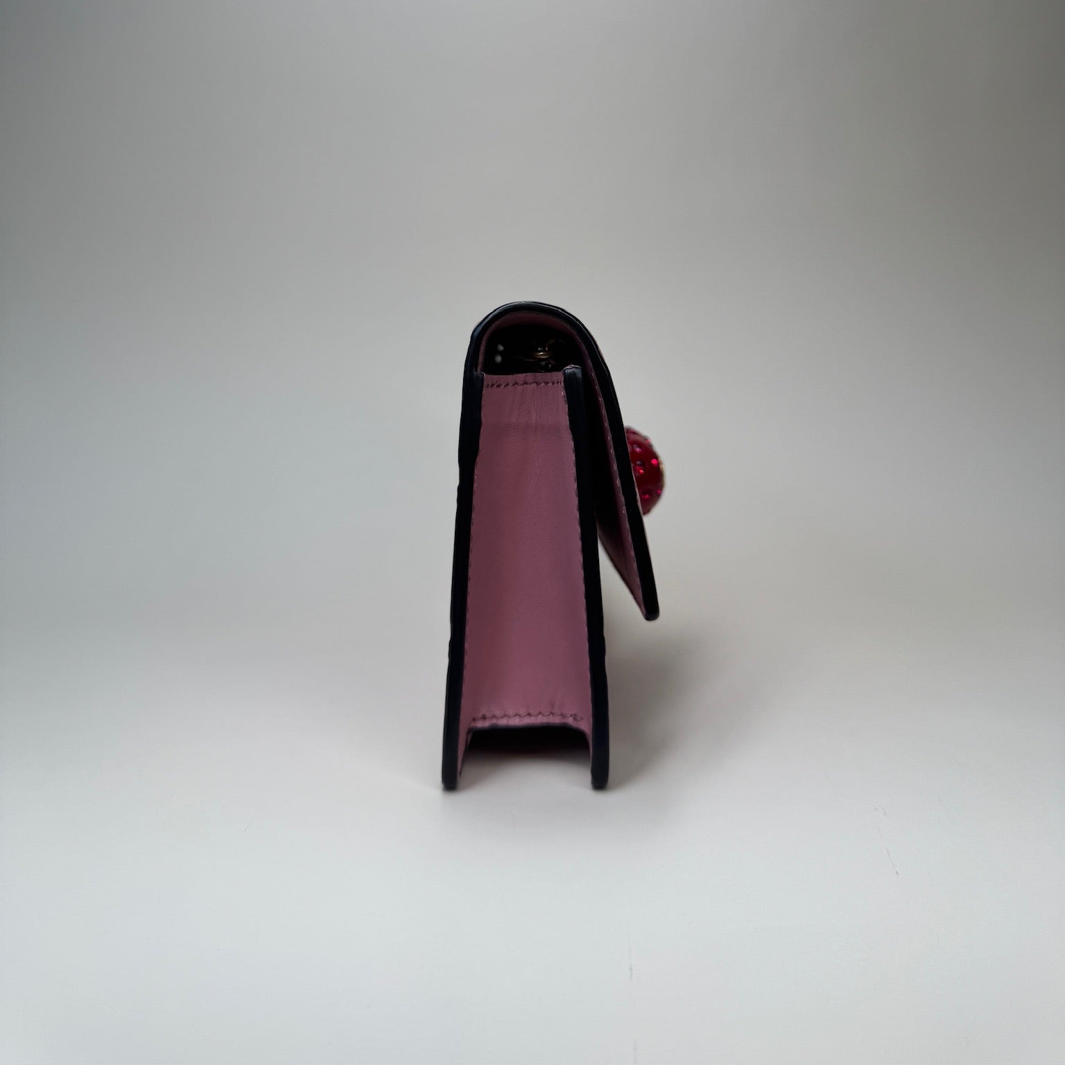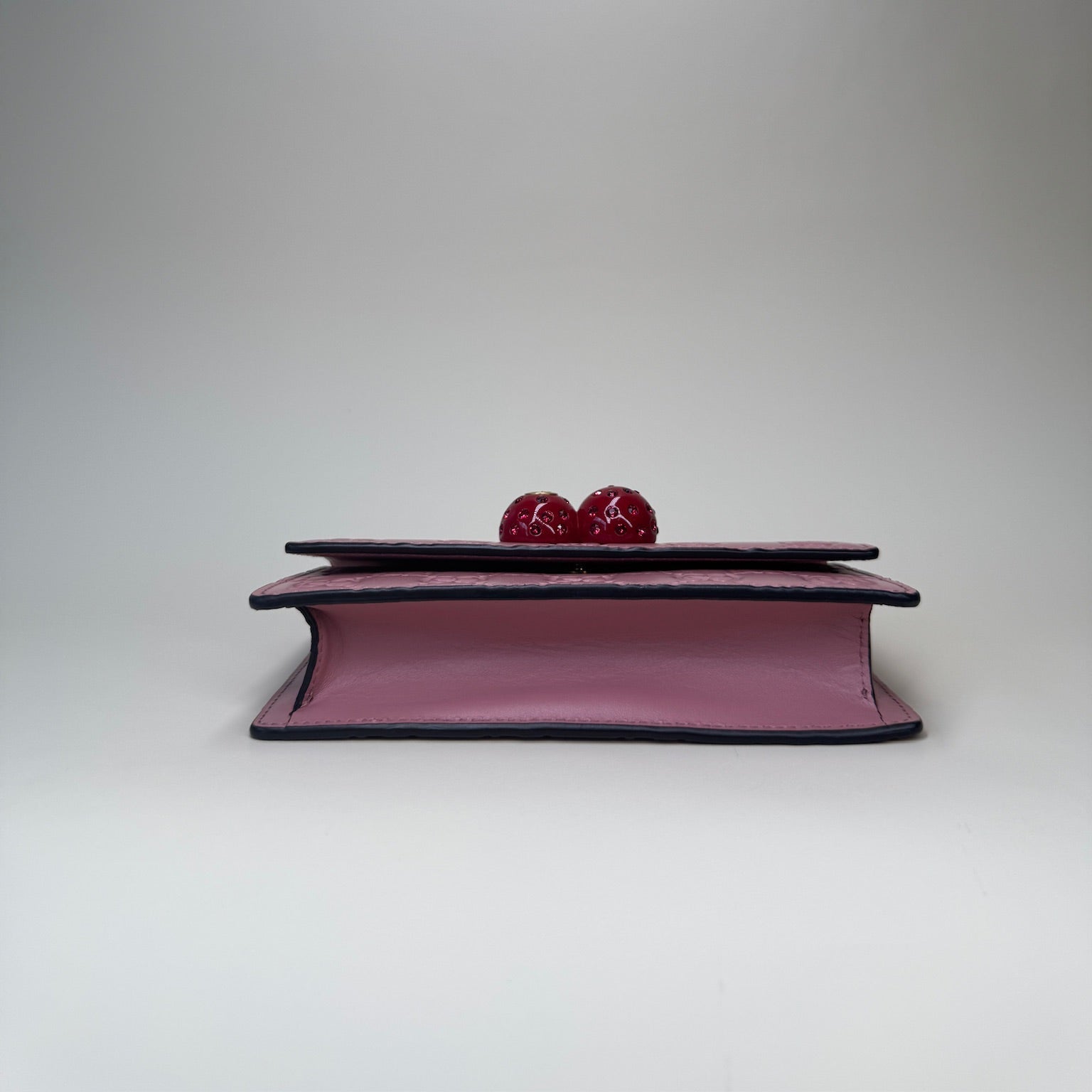 Elevate your style with the GUCCI Guccissima Mini Cherry Chain Bag. This pink crossbody bag is a chic accessory for any outfit. Its compact size makes it perfect for everyday use, while the iconic cherry design adds a playful touch. The chain strap offers versatility, allowing you to carry it as a handbag or crossbody.