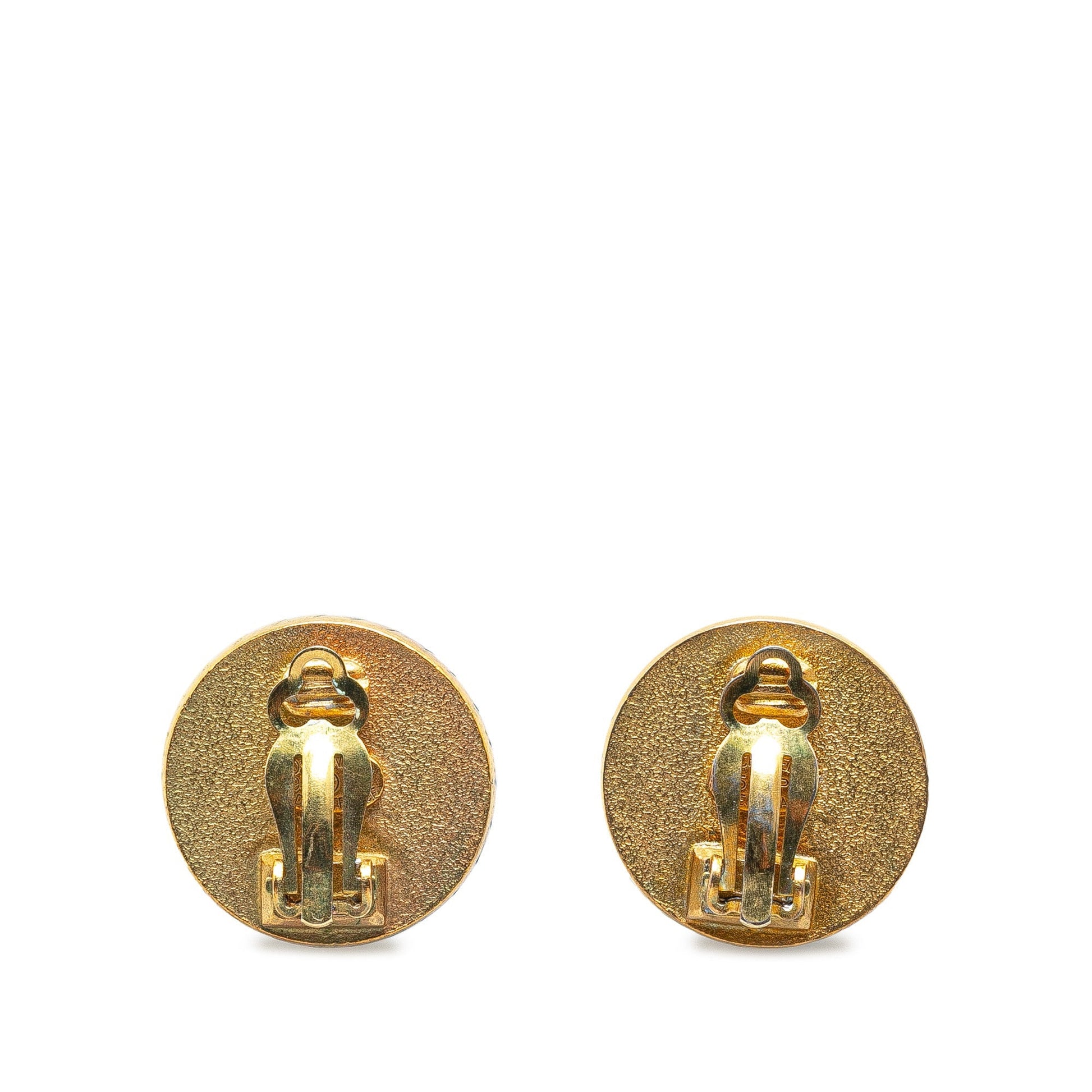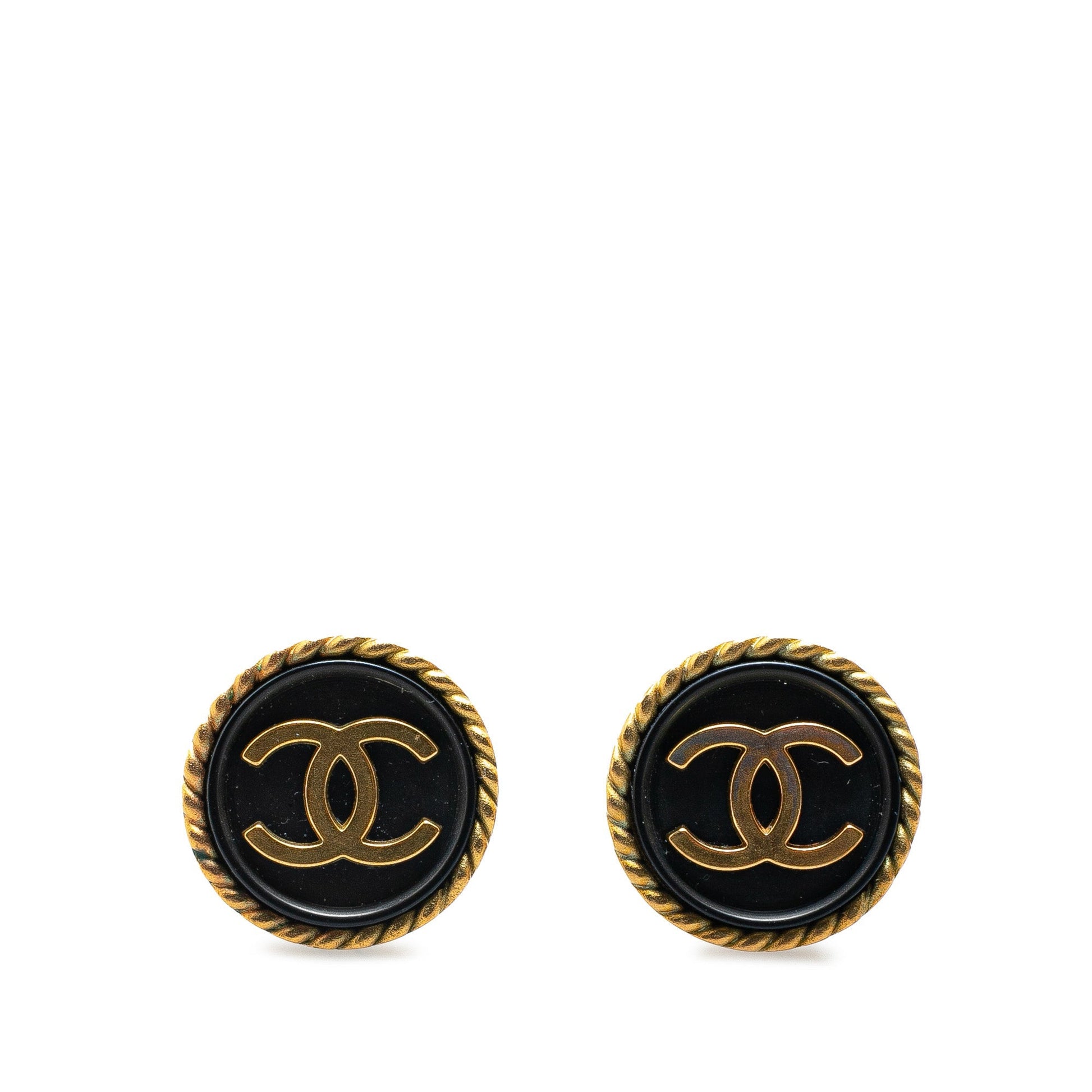 Gold Chanel Gold Plated Acrylic CC Button Clip On Earrings