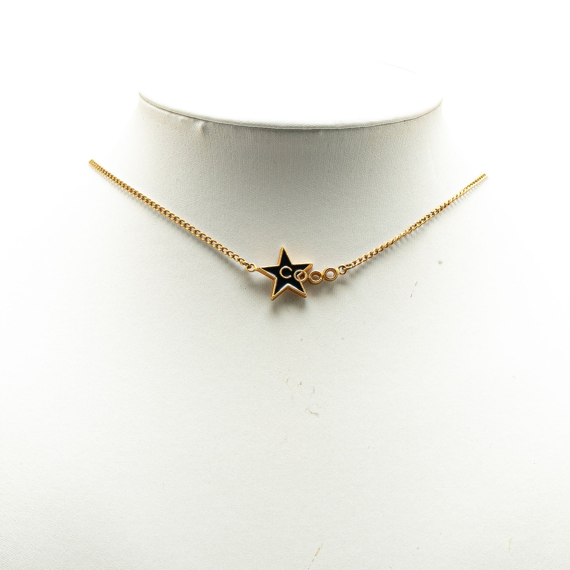 Gold Chanel Gold Plated and Enamel Coco Star Necklace