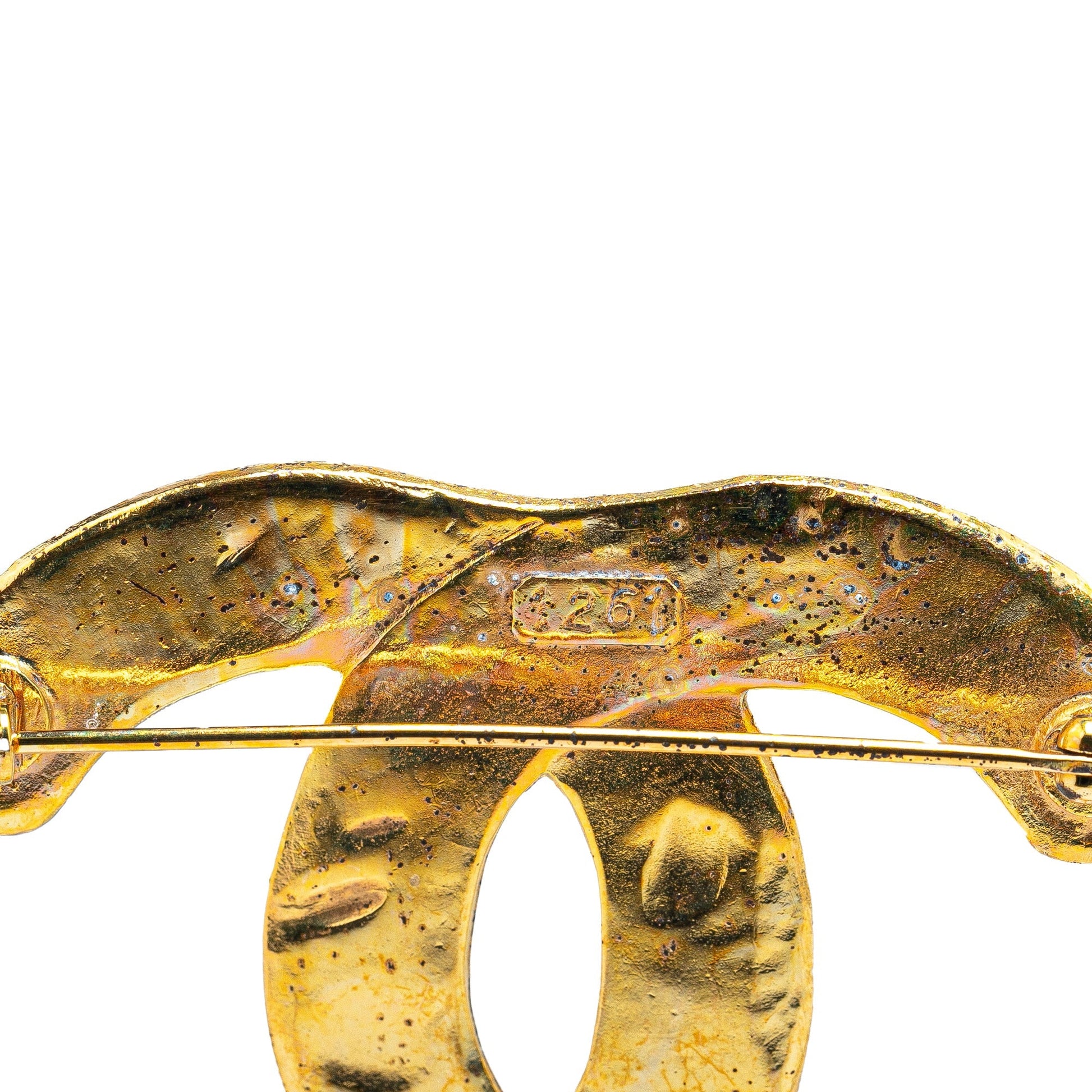 Product Details: Gold Chanel Gold Plated CC Brooch. This brooch features a gold-tone metal body and a back pin closure. 2" L x 2.4" W x 0" D. Serial number 2_9.