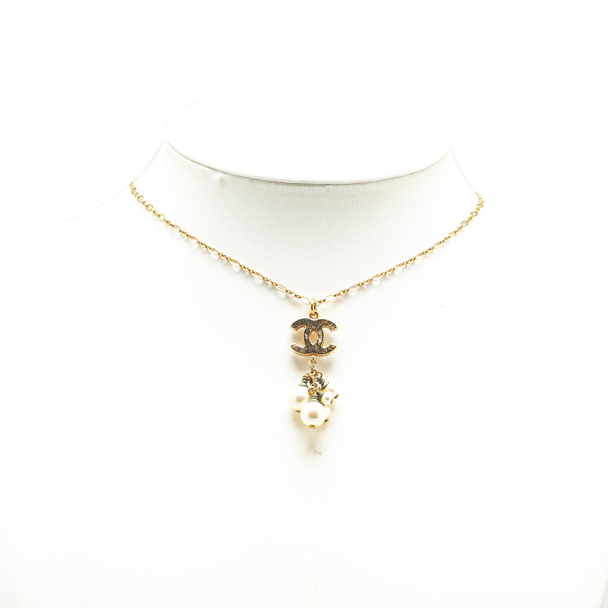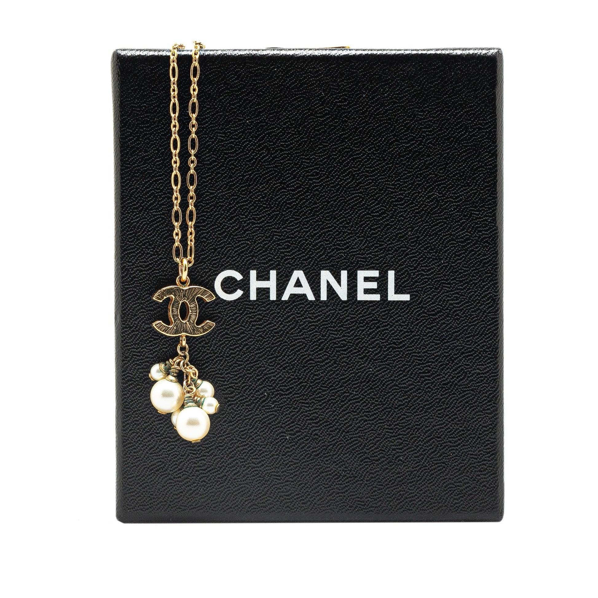 Gold Chanel Gold Plated CC Faux Pearl Pendant Necklace