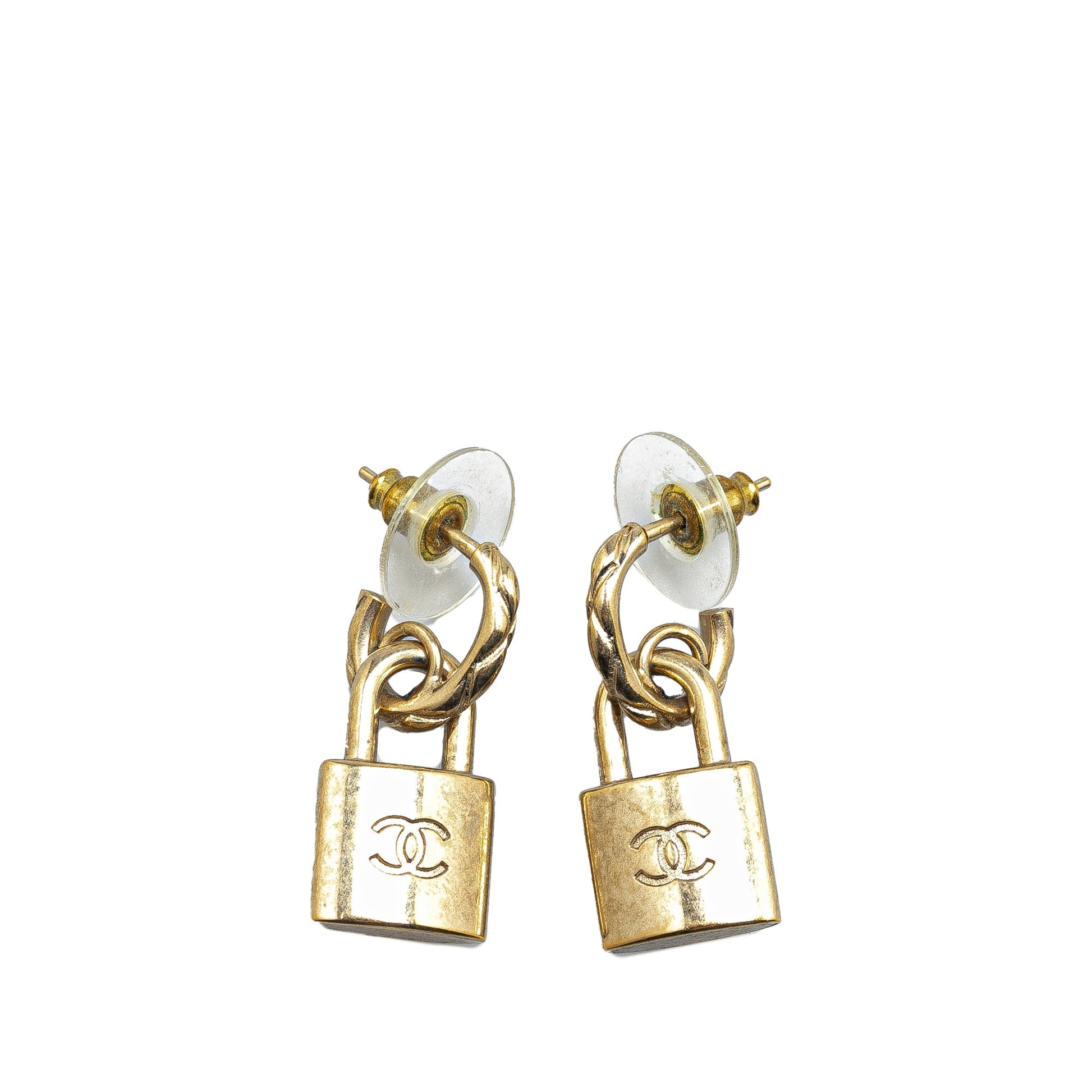 Gold Chanel Gold Plated CC Padlock Drop Push Back Earrings