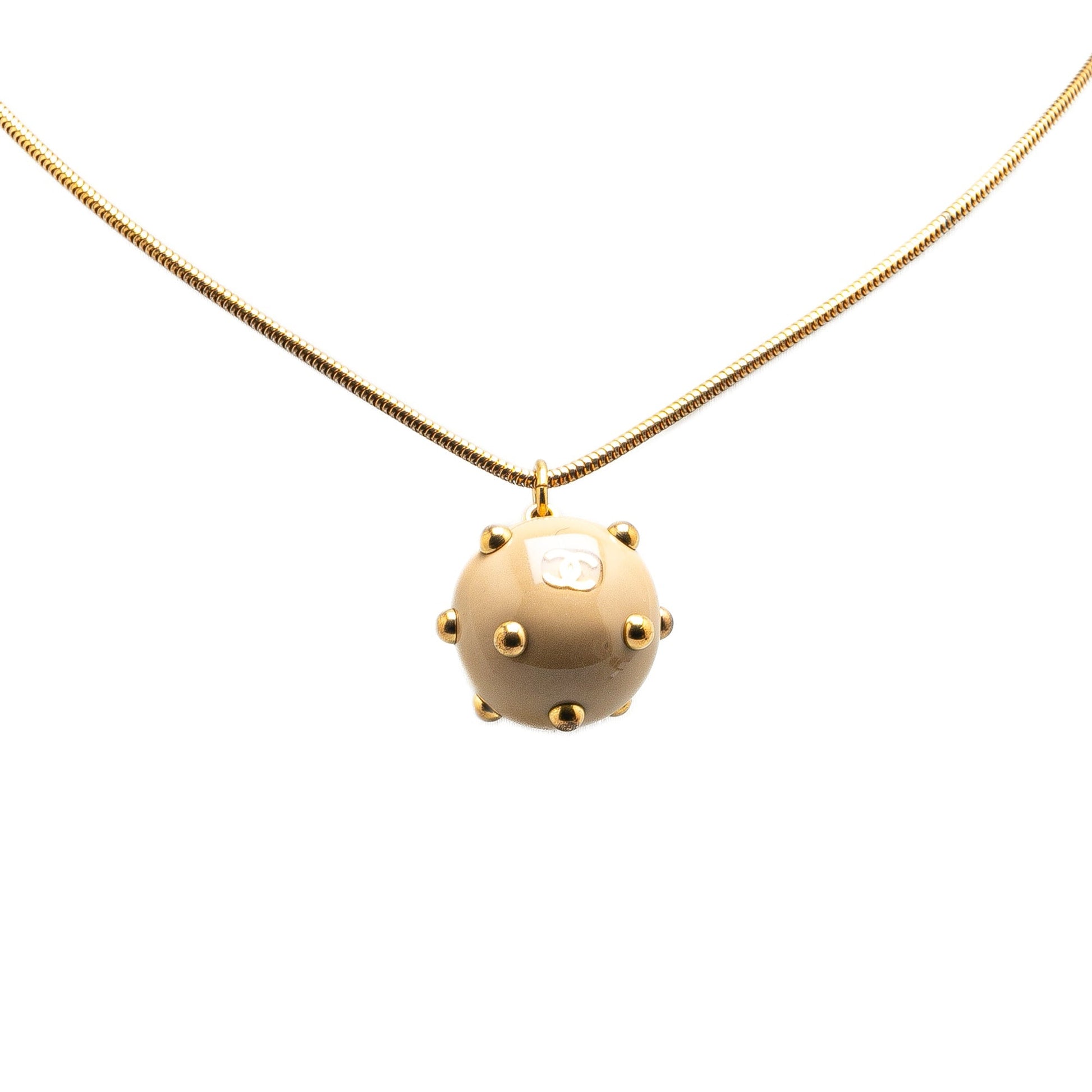 Gold Chanel Gold Plated Enamel CC Studded Sphere Pendant Necklace