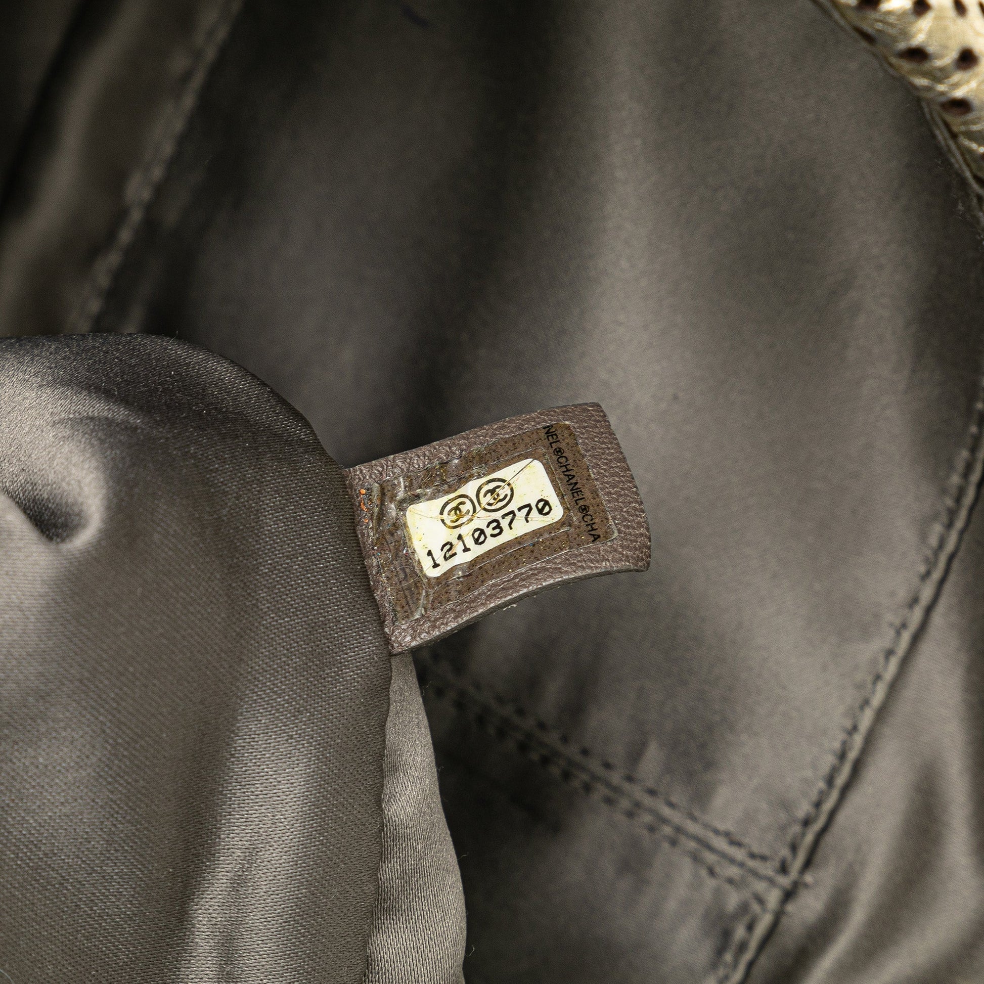 Product Details: Gold Chanel Medium Perforated Calfskin Reissue Drill Flap Shoulder Bag. This shoulder bag features a perforated leather body, chain-link straps, a front flap with a twist lock closure, and interior zip and slip pockets. 7.1" L x 11.4" W x 2" D. Serial number 12103770.