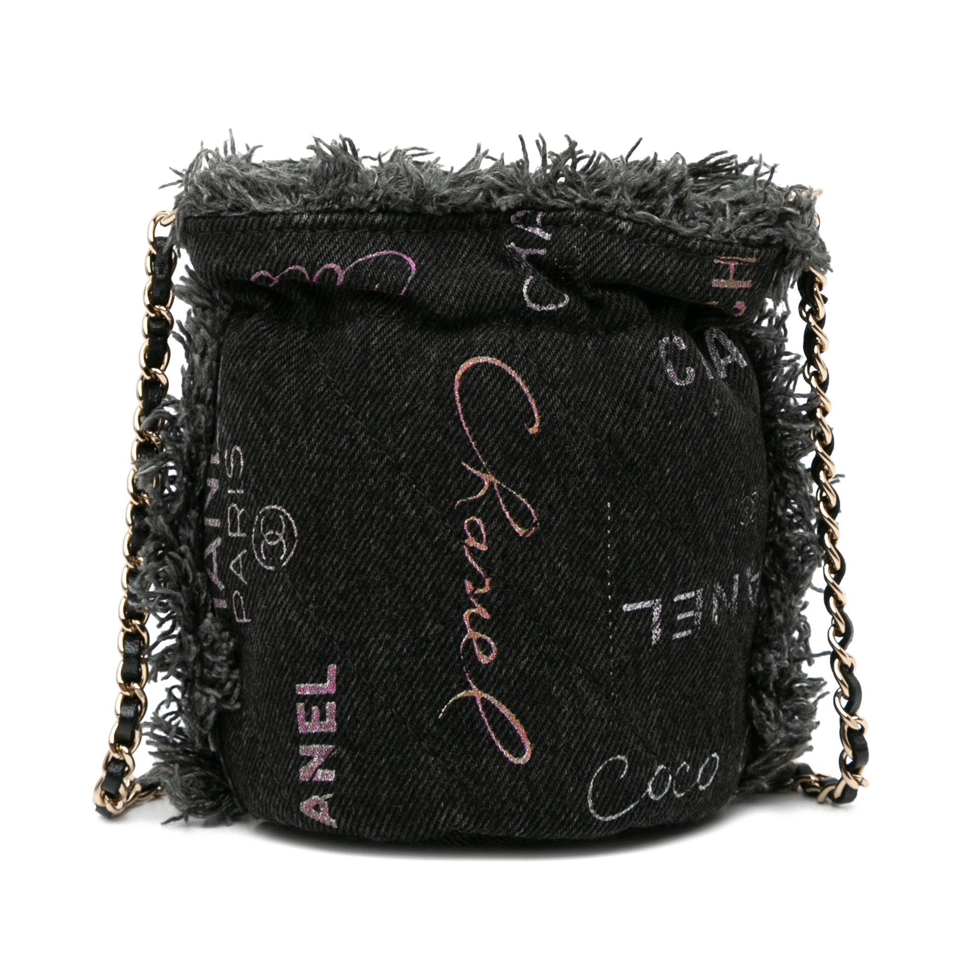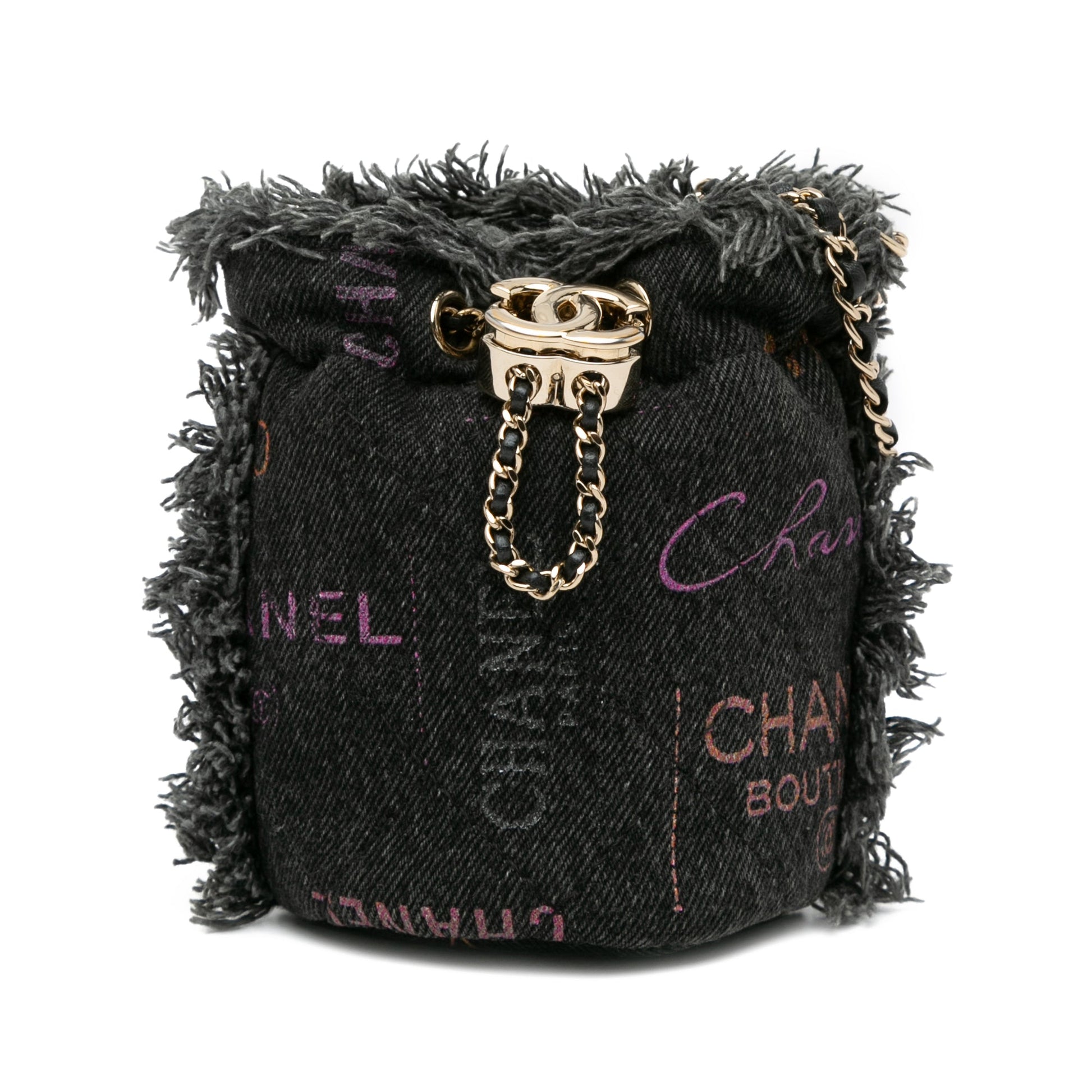 Gray Chanel Mini Denim Mood Bucket with Chain