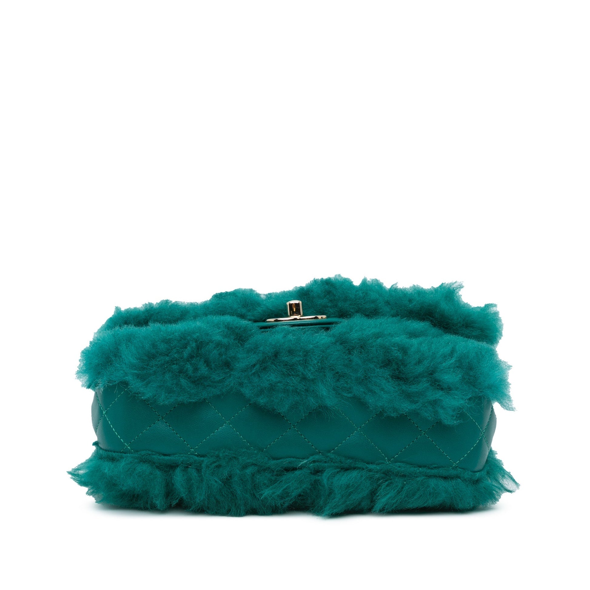 Green Chanel Small Shearling Single Flap Crossbody Bag