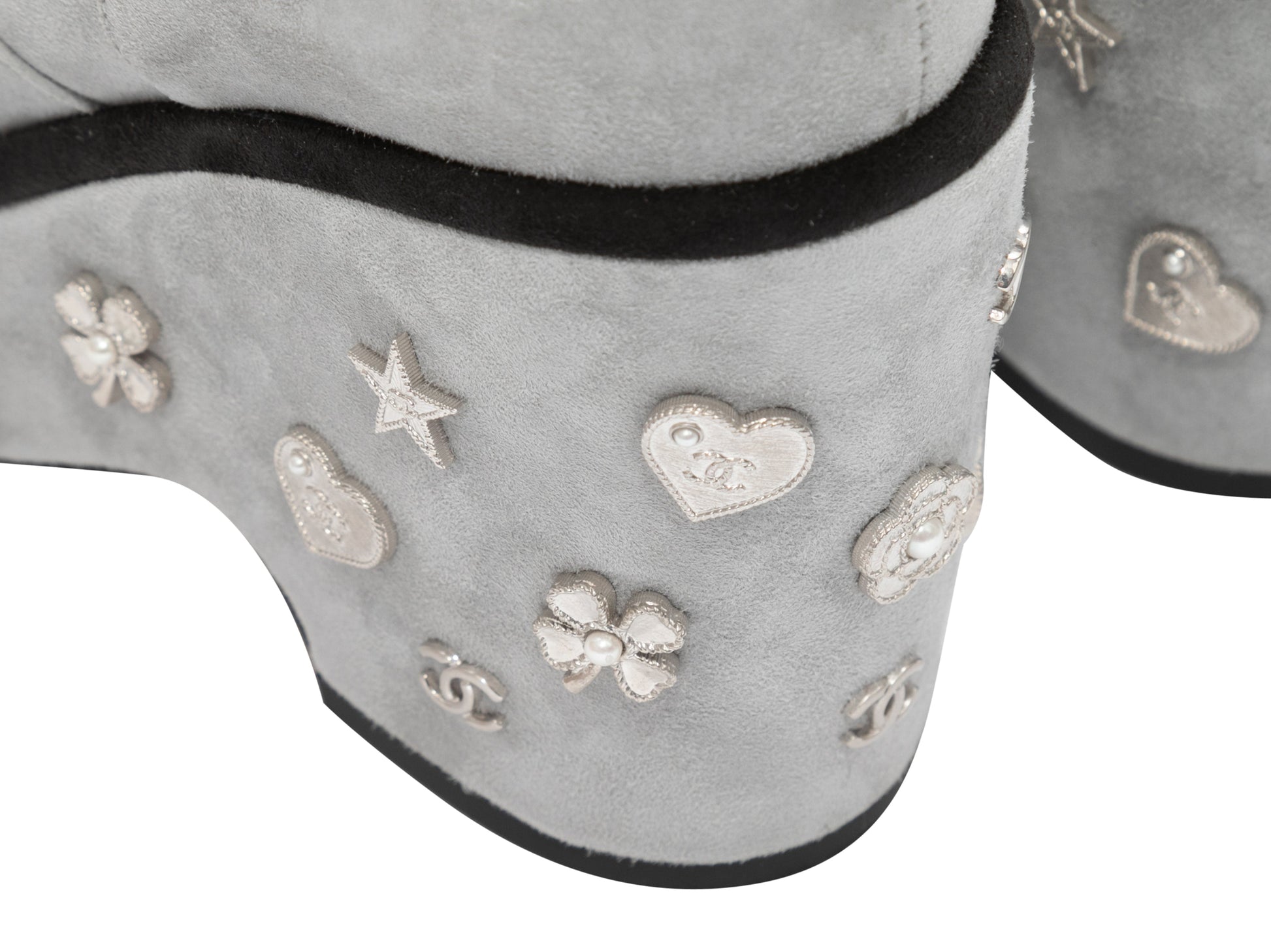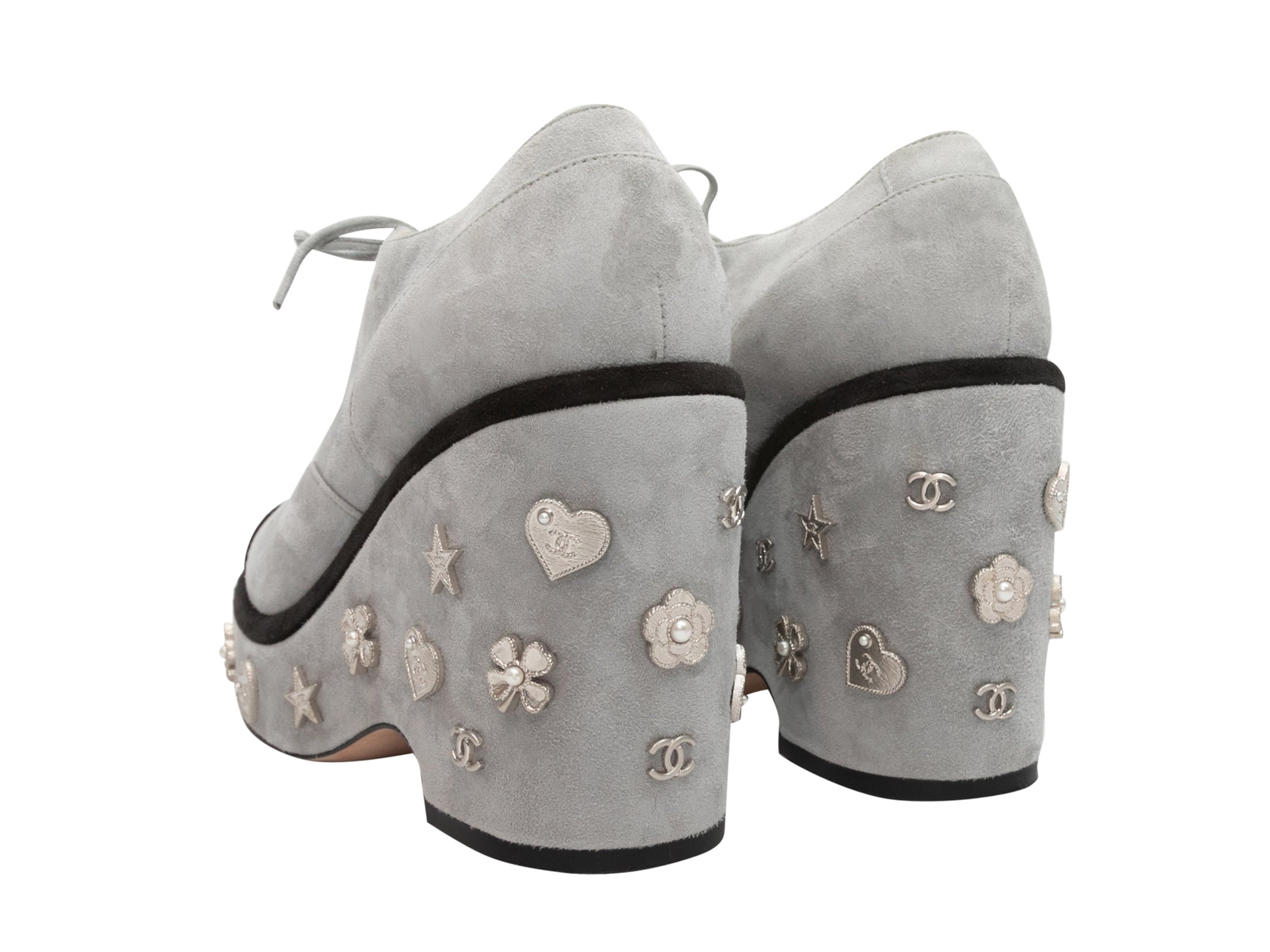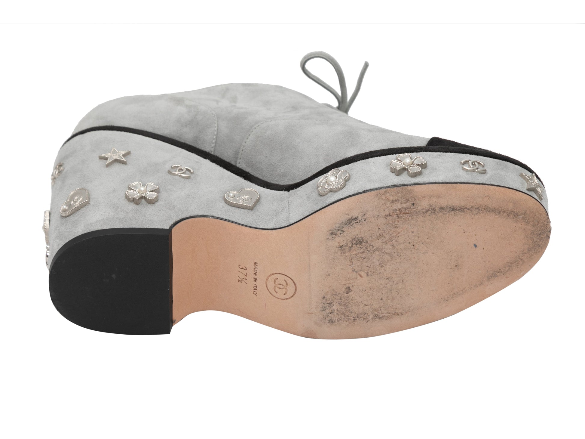 Grey & Black Chanel Suede Embellished Platform Oxfords Size 37.5