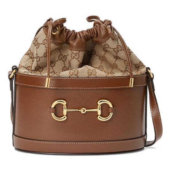 (WMNS) Gucci Button1955 Series Drawstring Bag Single Shoulder Bag Brown 602118-1DBUG-2363