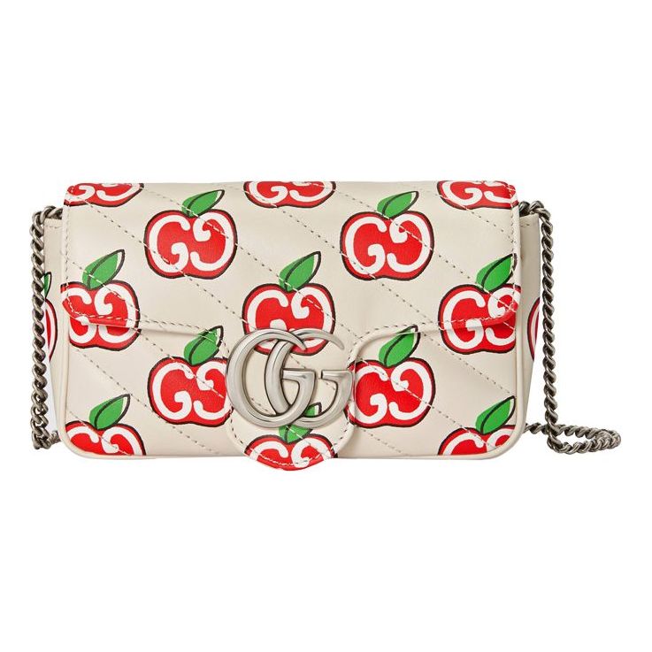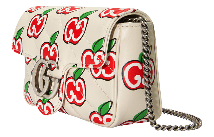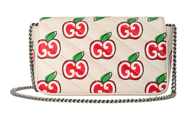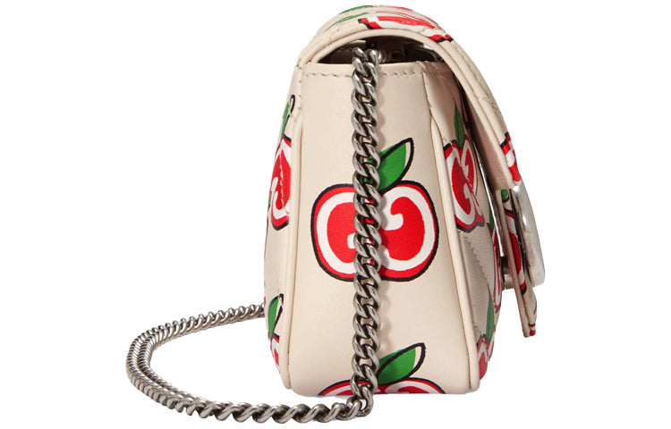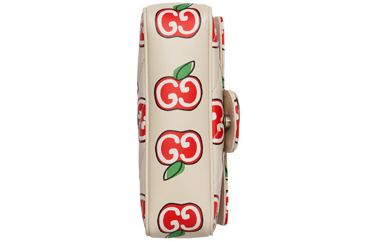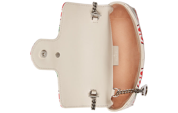 (WMNS) Gucci GG Marmont Rectangular Leather Chain Shoulder Bag 'Cream White Red' 476433-1W8AN-9086