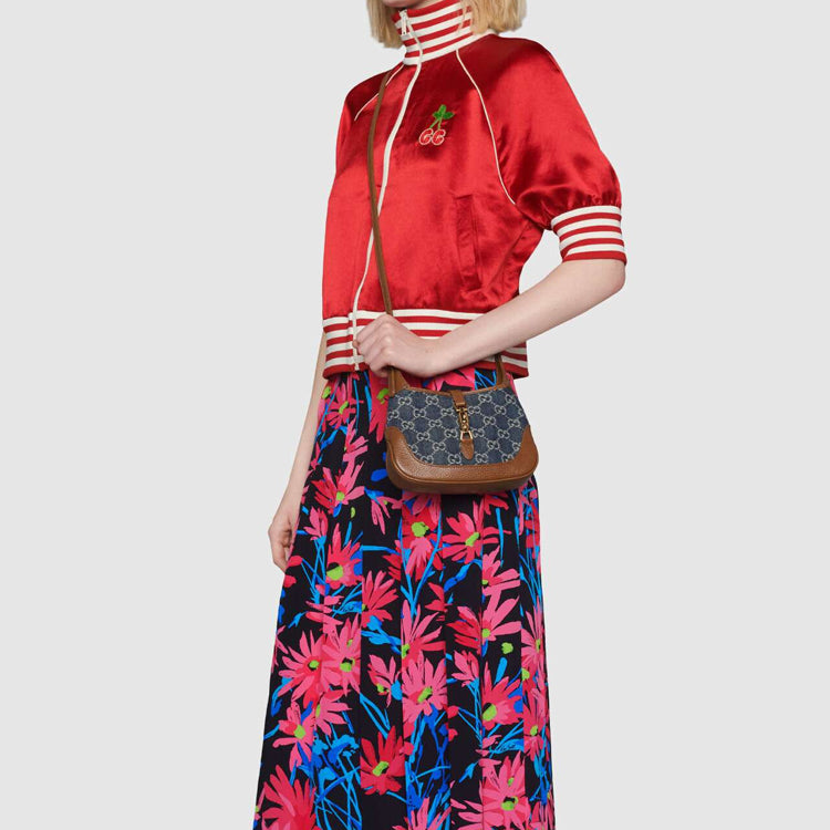 (WMNS) Gucci Jackie 1961 Series miniDenimSingle Shoulder Bag Brown color combination 637092-2KQGG-8375