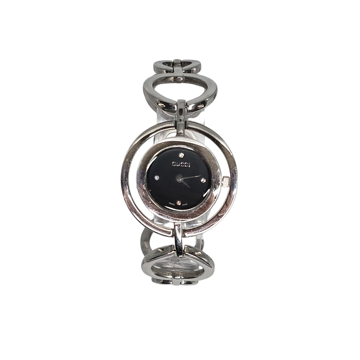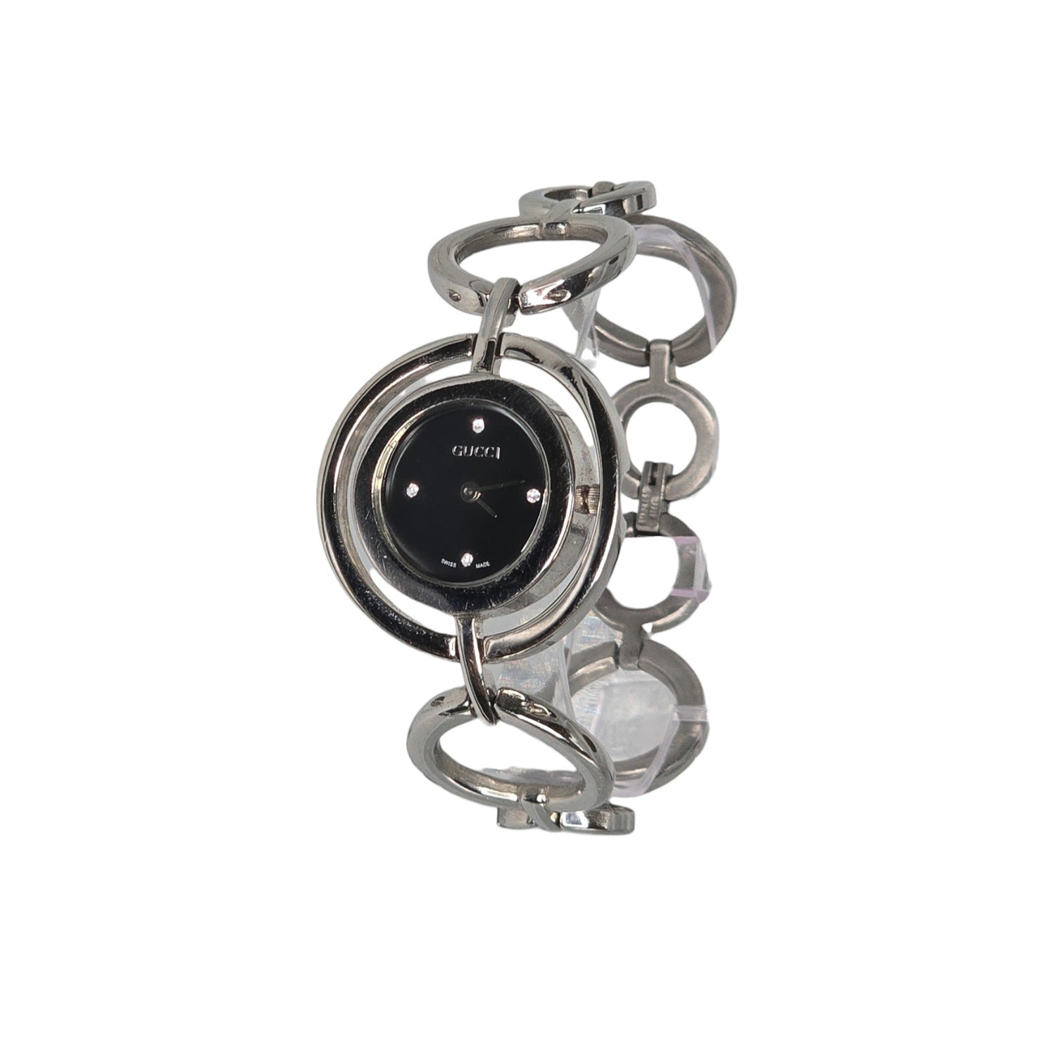 Gucci 22mm Round Link Bangle Watch w/ Black Dial