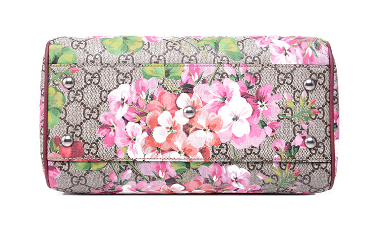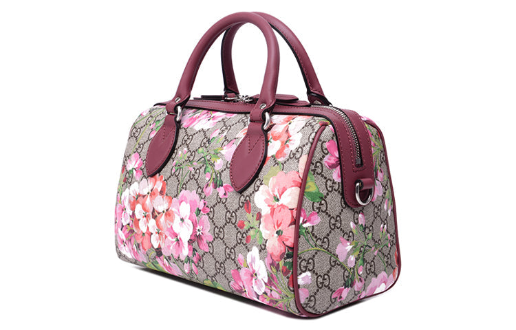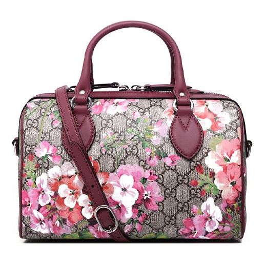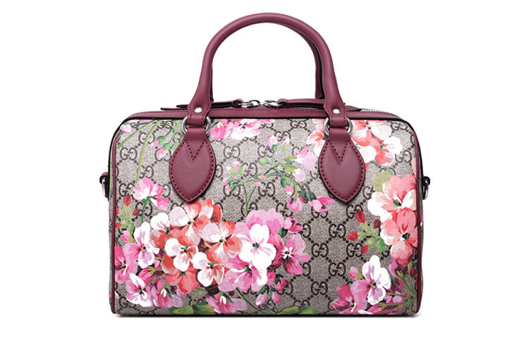 (WMNS) Gucci GG Blooms Logo Printing Canvas Boston Small Ebony / Pink / Wine Red Handbag 409529-KU2IN-8693