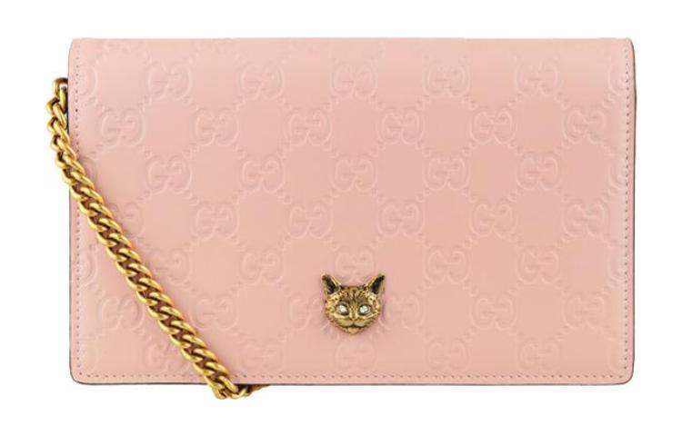 (WMNS) Gucci Metallic Logo Embossing Leather Chain Shoulder Messenger Bag Pink 548060-0G6FT-5877