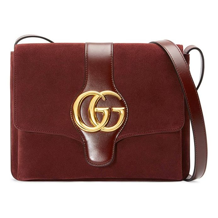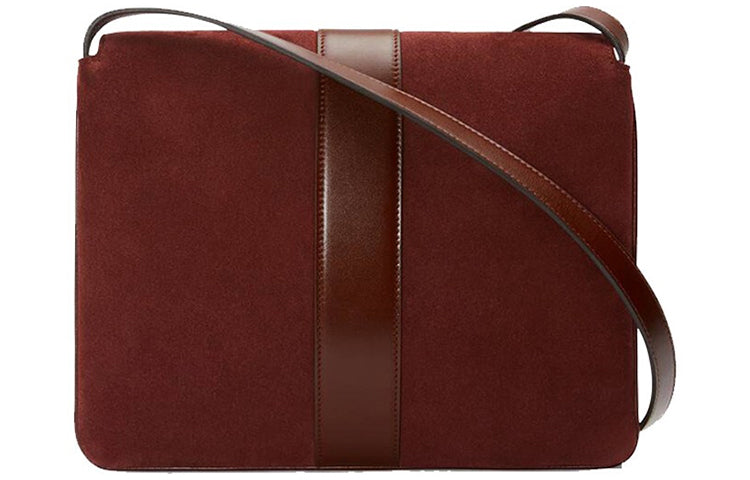 (WMNS) Gucci Arli Gold Logo Suede Splicing Leather Shoulder Messenger Bag Red Classic Retro 550126-0YNAG-6629