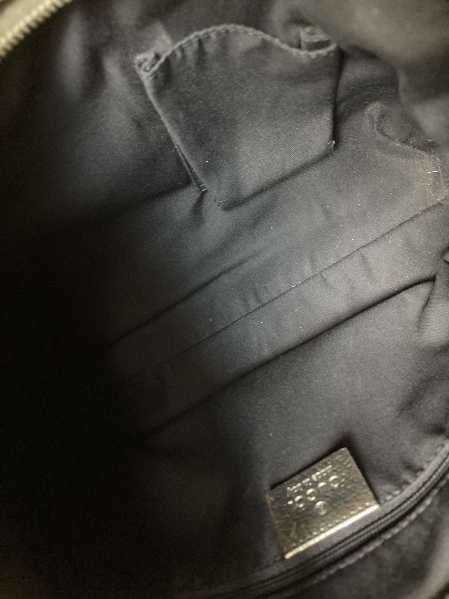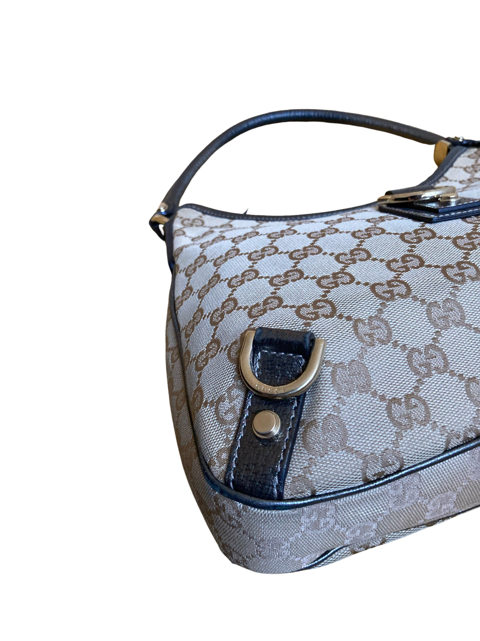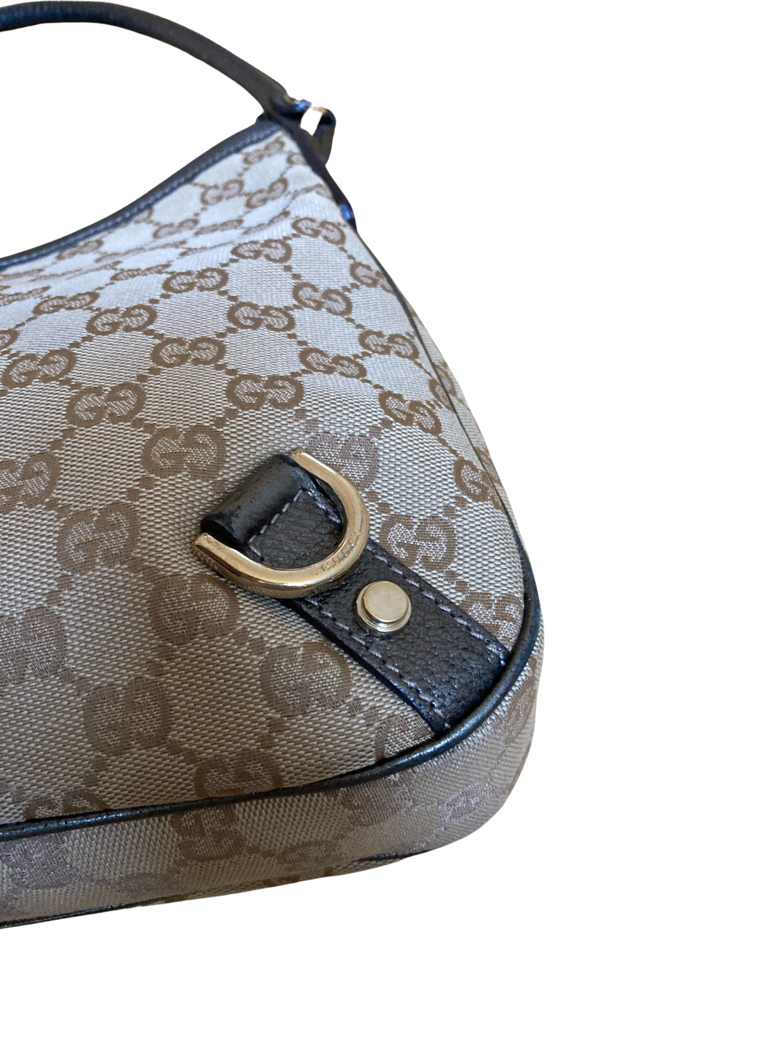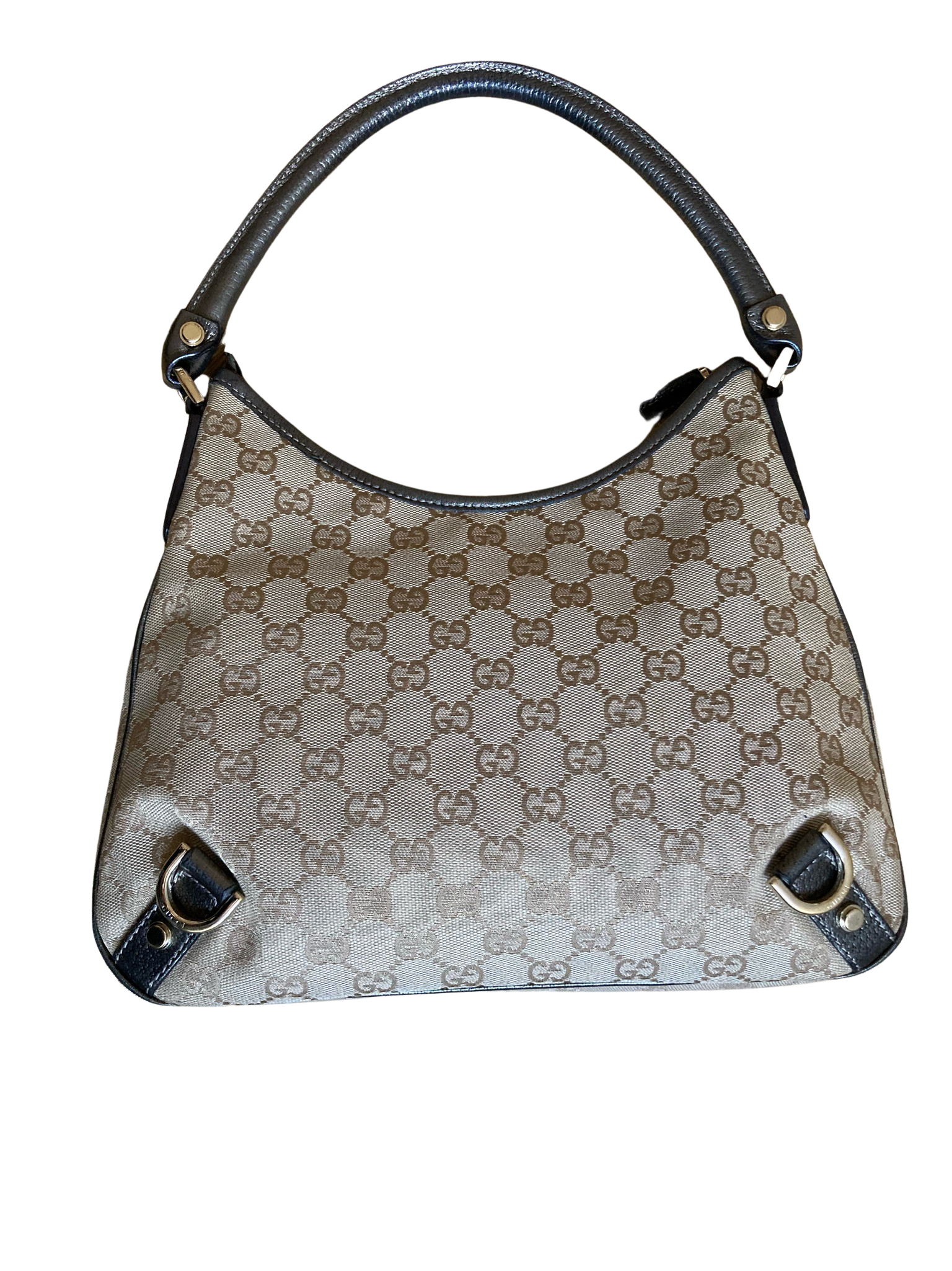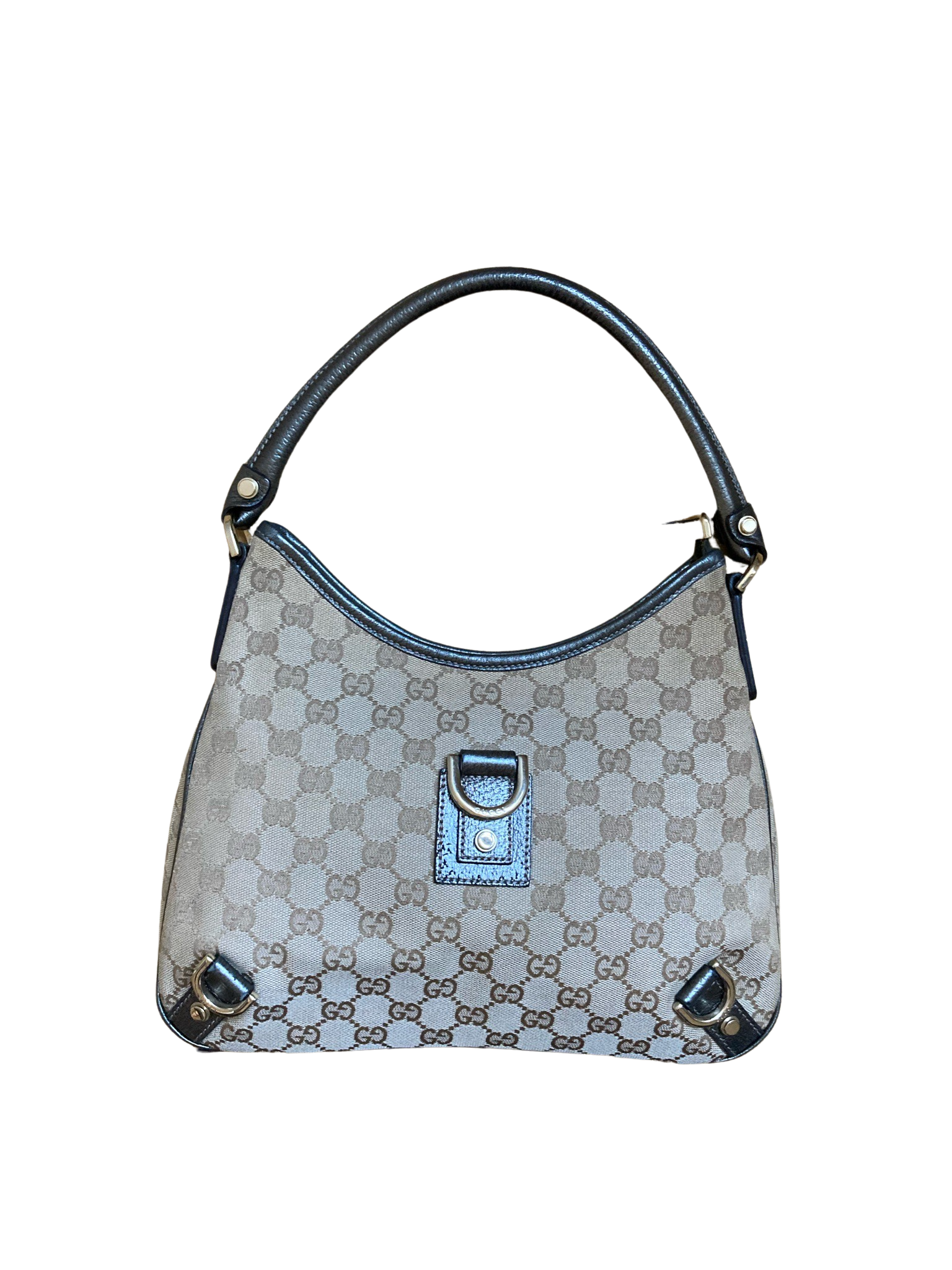 Gucci Abbey Jacquard & Leather Shoulder Bag in good condition with few signs of previous use and patina. Specifically, the bag has few scratches on the middle leather piece and the hardware buckle. The bag's interior is in good condition.