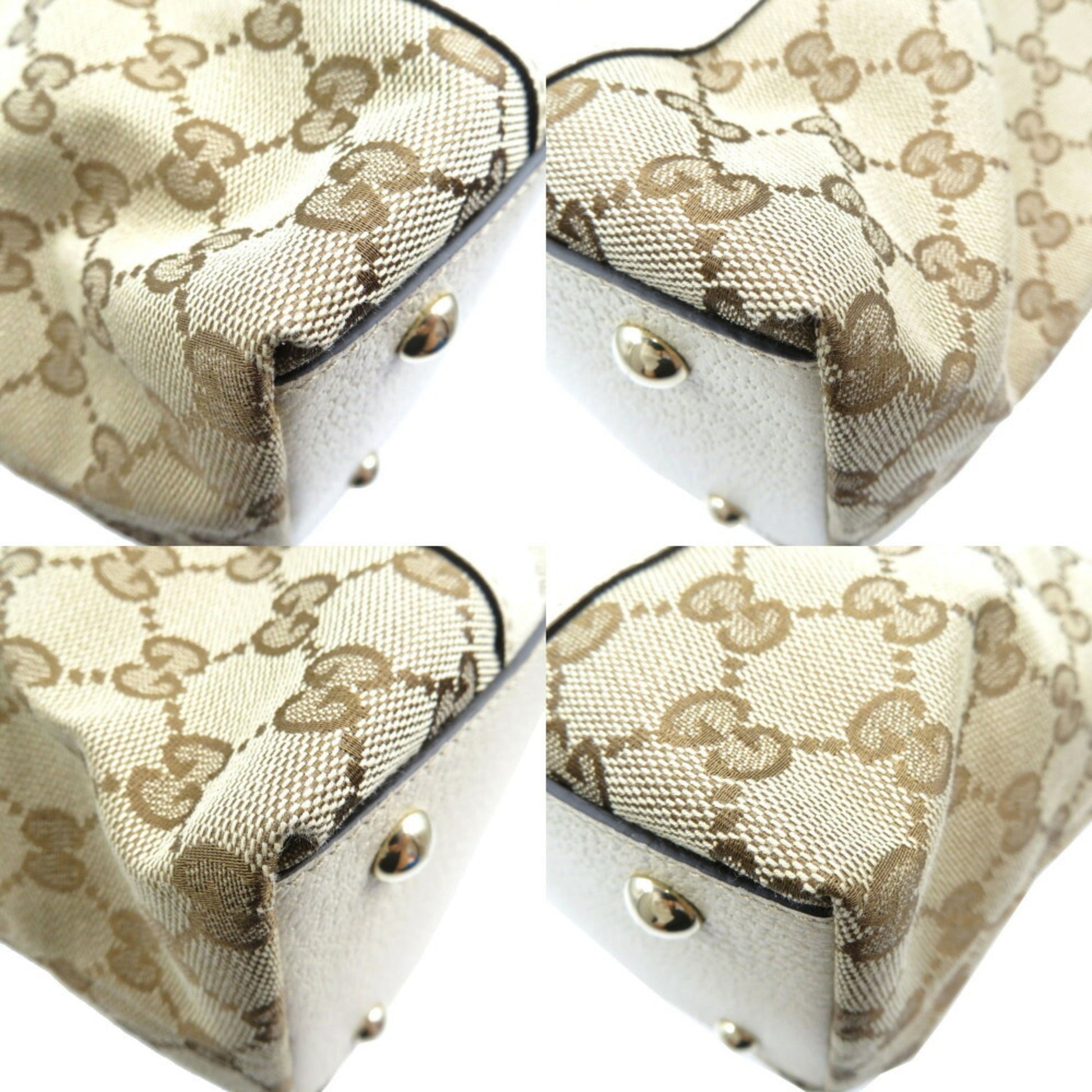 Gucci Abbey Line 141470 GG Canvas Leather Beige Tote Bag