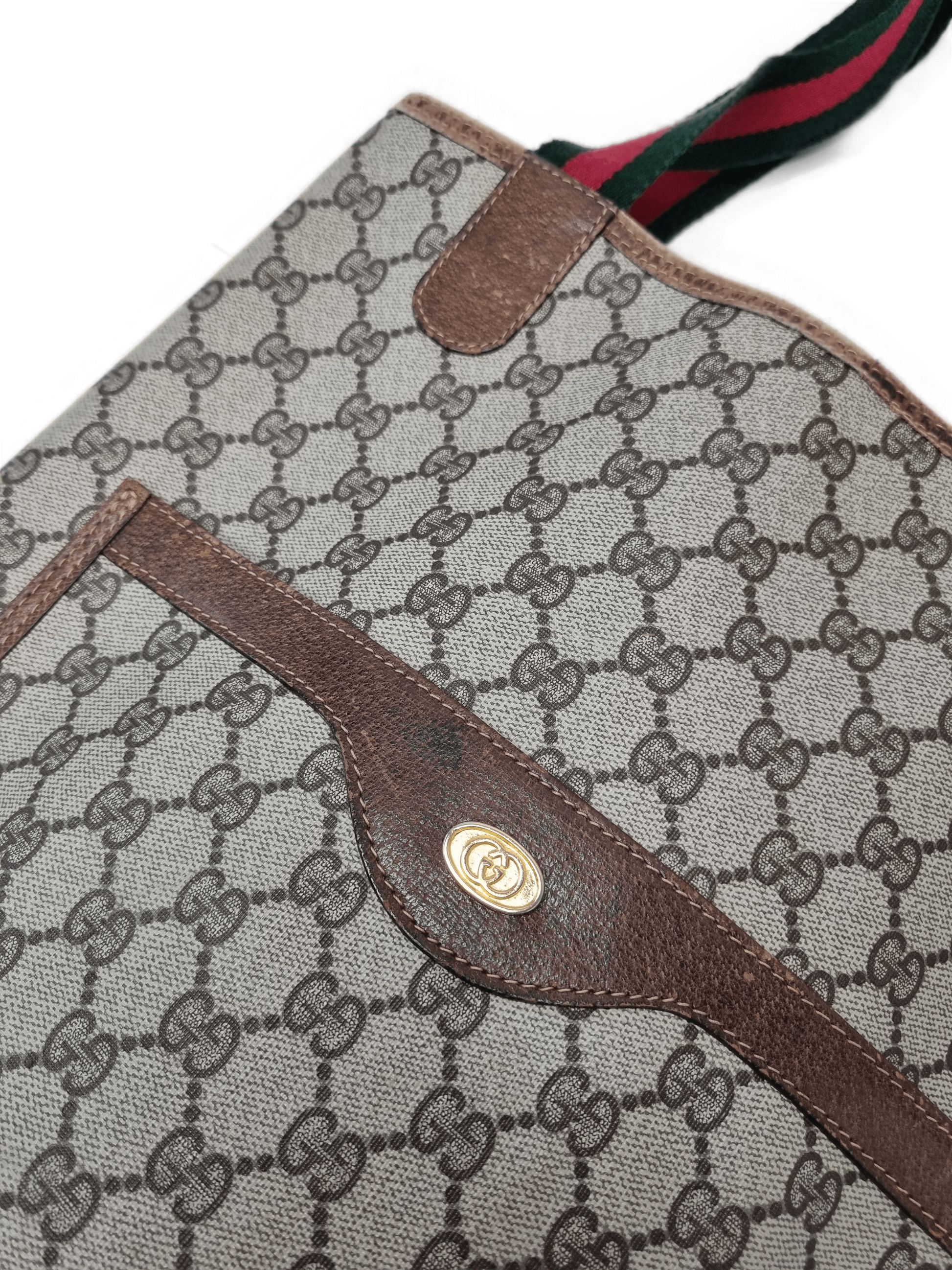 Gucci Accessory Beige Tote Bag infineconditionwithsome signs of patina and previous use on the exterior corners, hardware, and straps. Theinterior is in good condition.