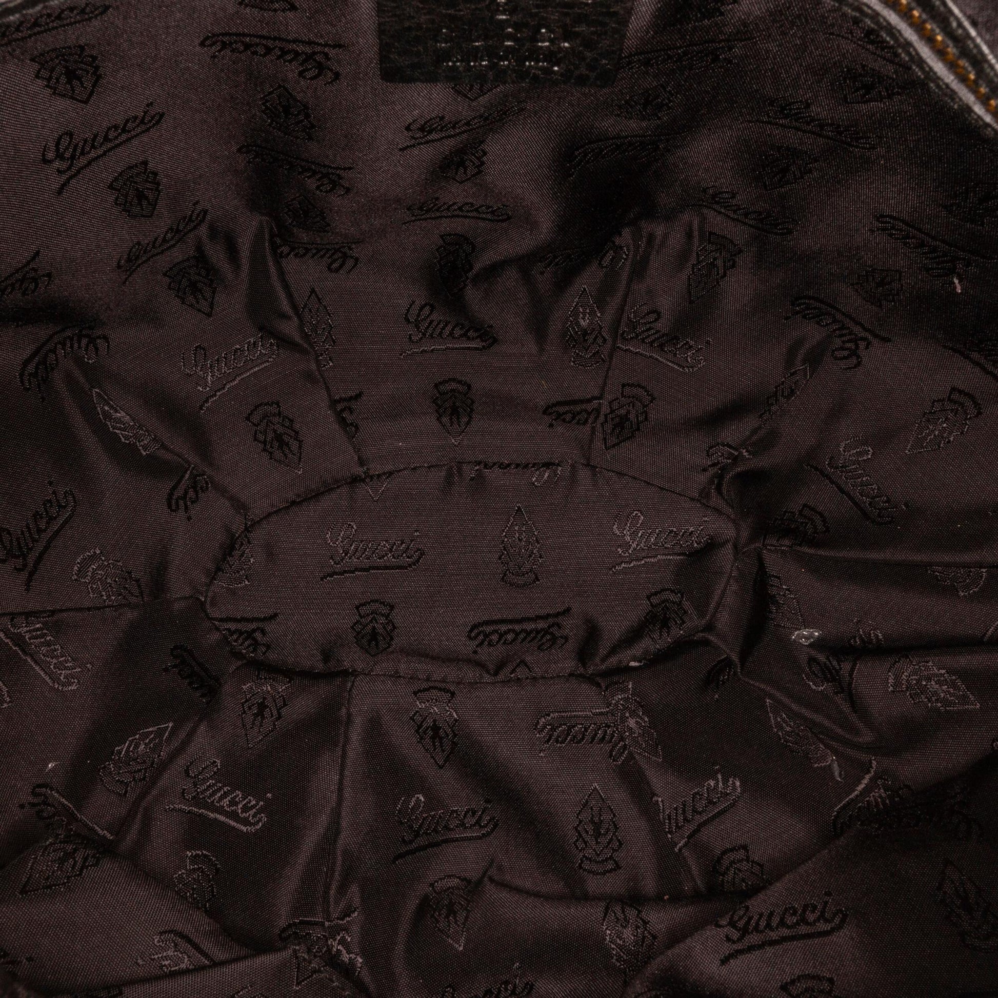 Condition Notes: Exterior Front Worn. Exterior Back Worn. Exterior Bottom Scratched, Worn. Exterior Handle Worn. Exterior Corners Worn. Exterior Side Worn. Interior Lining Worn. Lock Scratched. Embellishment Scratched. Zipper Rusty/Tarnished.