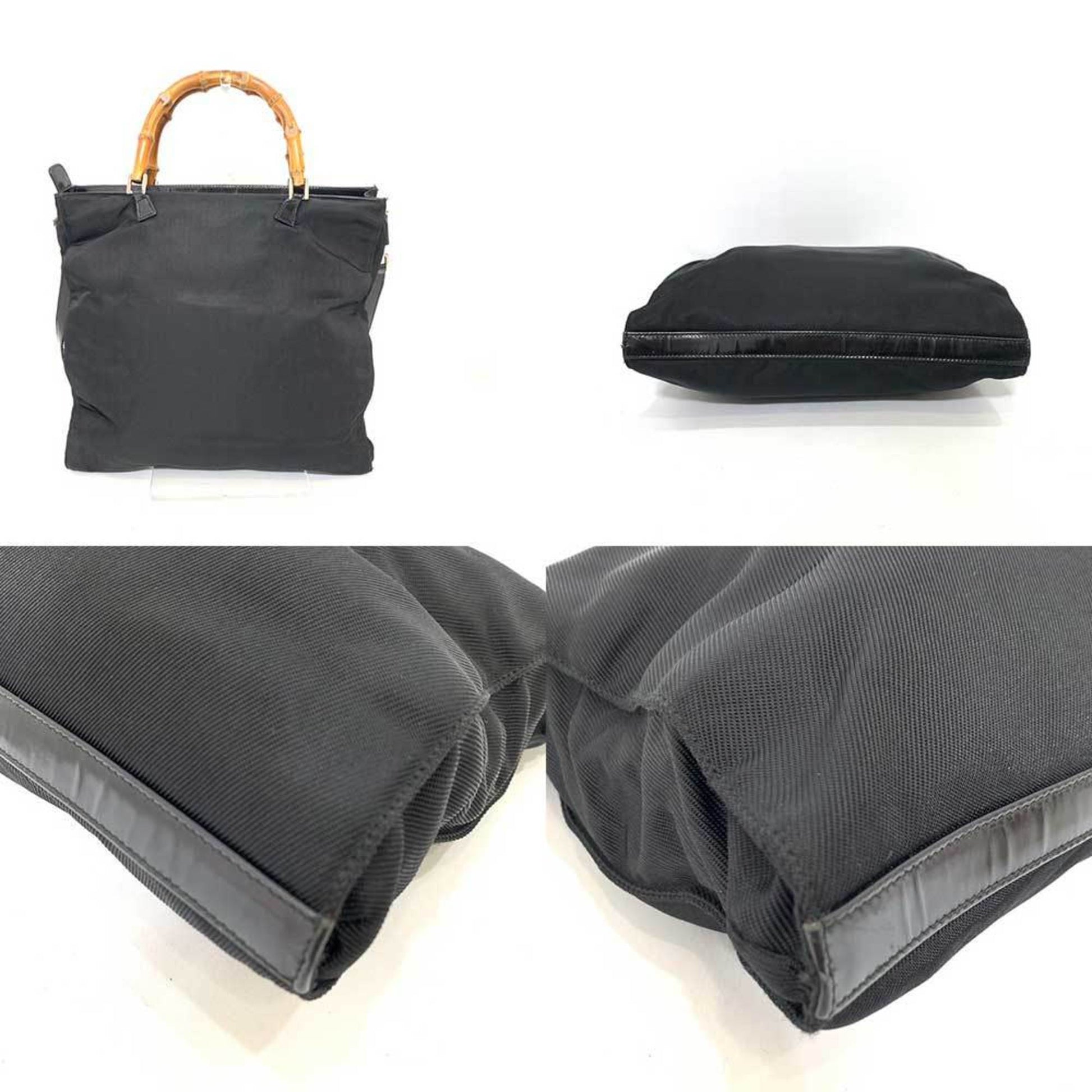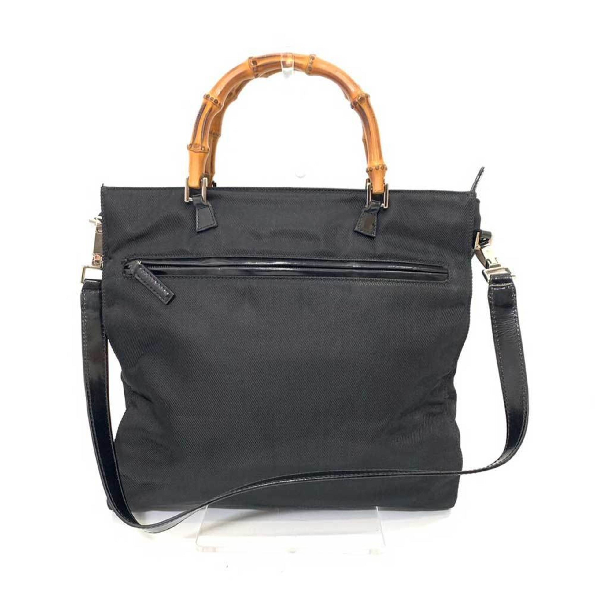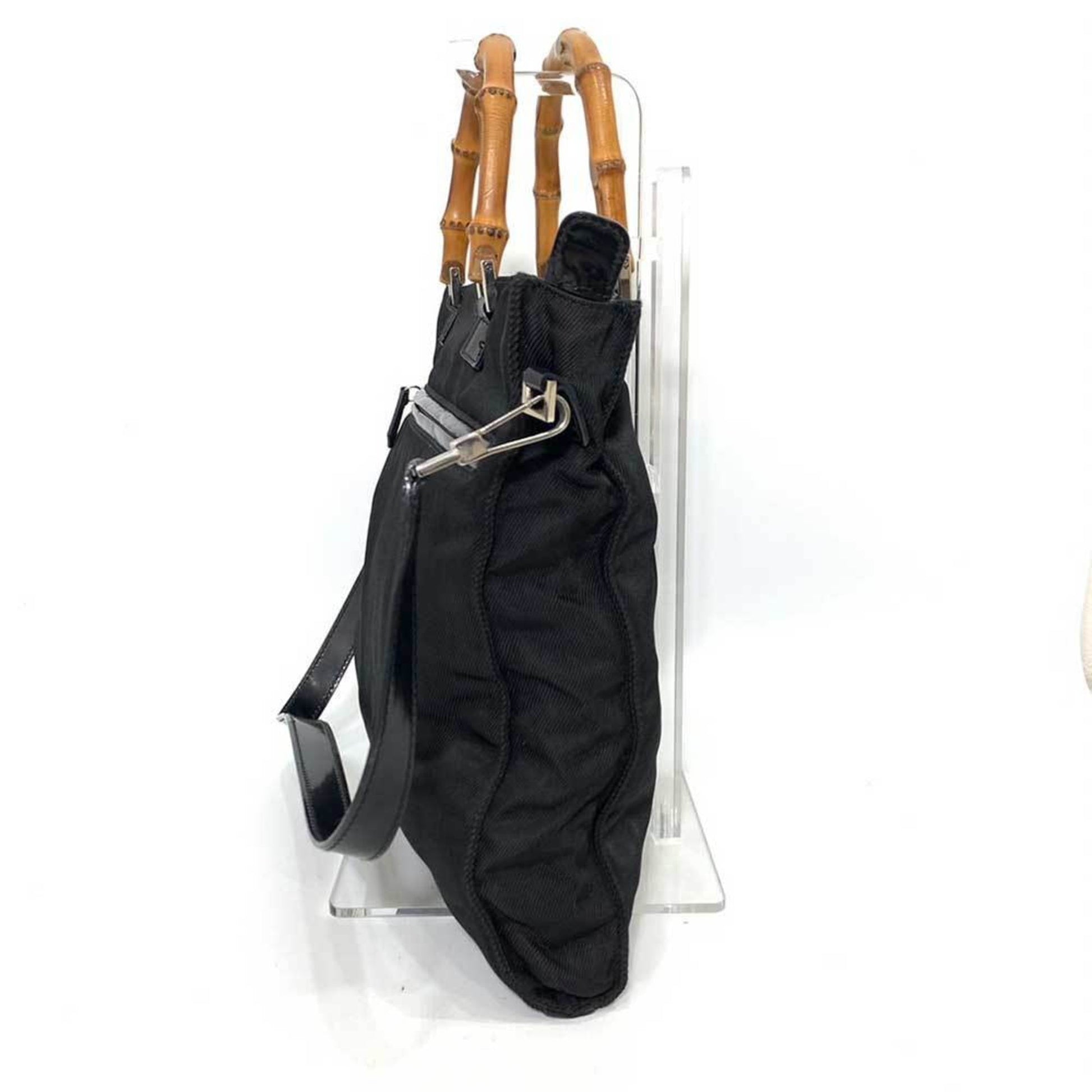 Gucci Bag Bamboo Handbag Black x Brown 2way Square Ladies Nylon Canvas Enamel Leather GUCCI
