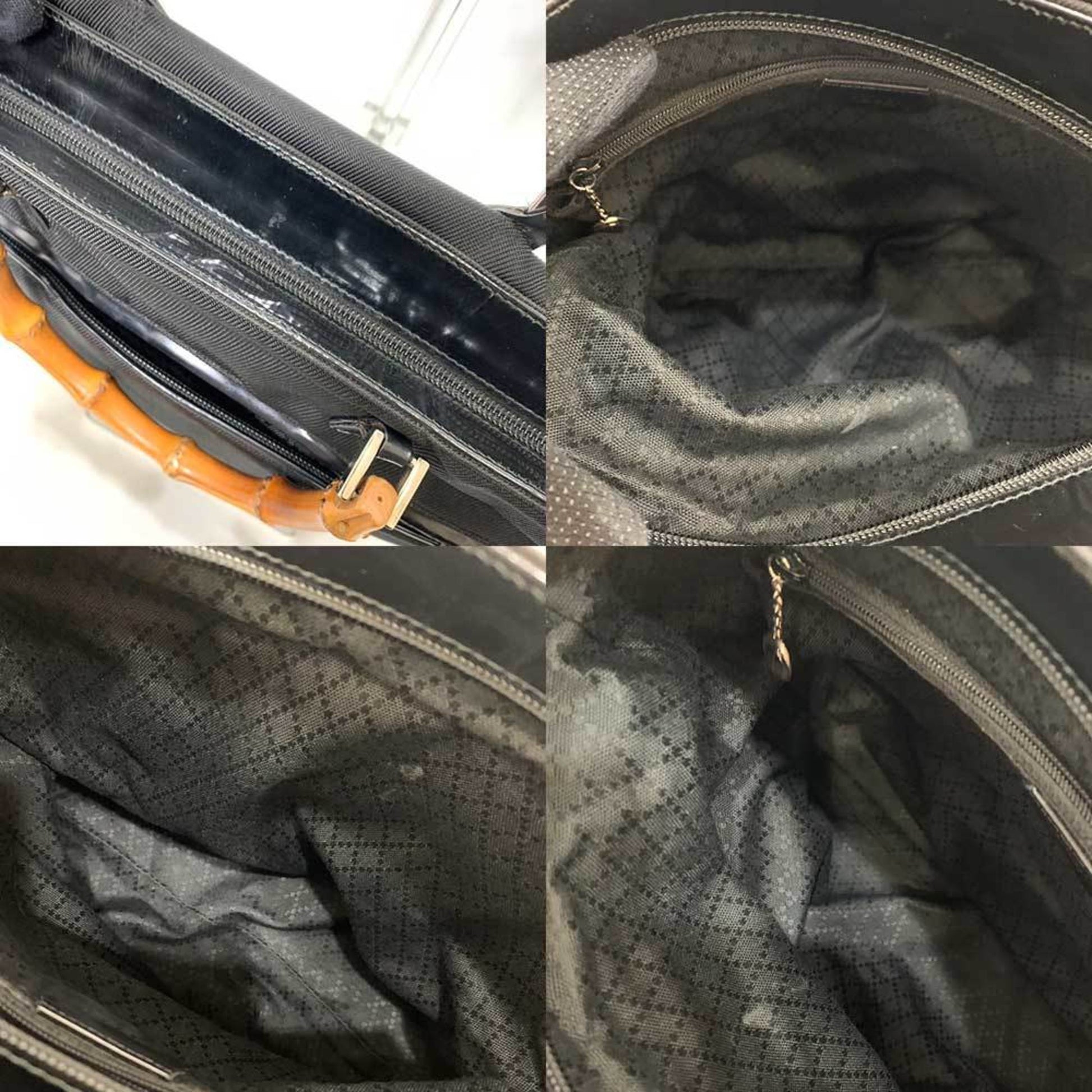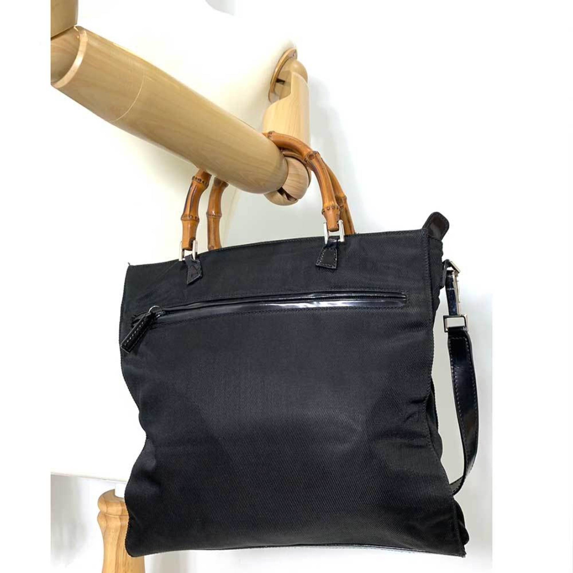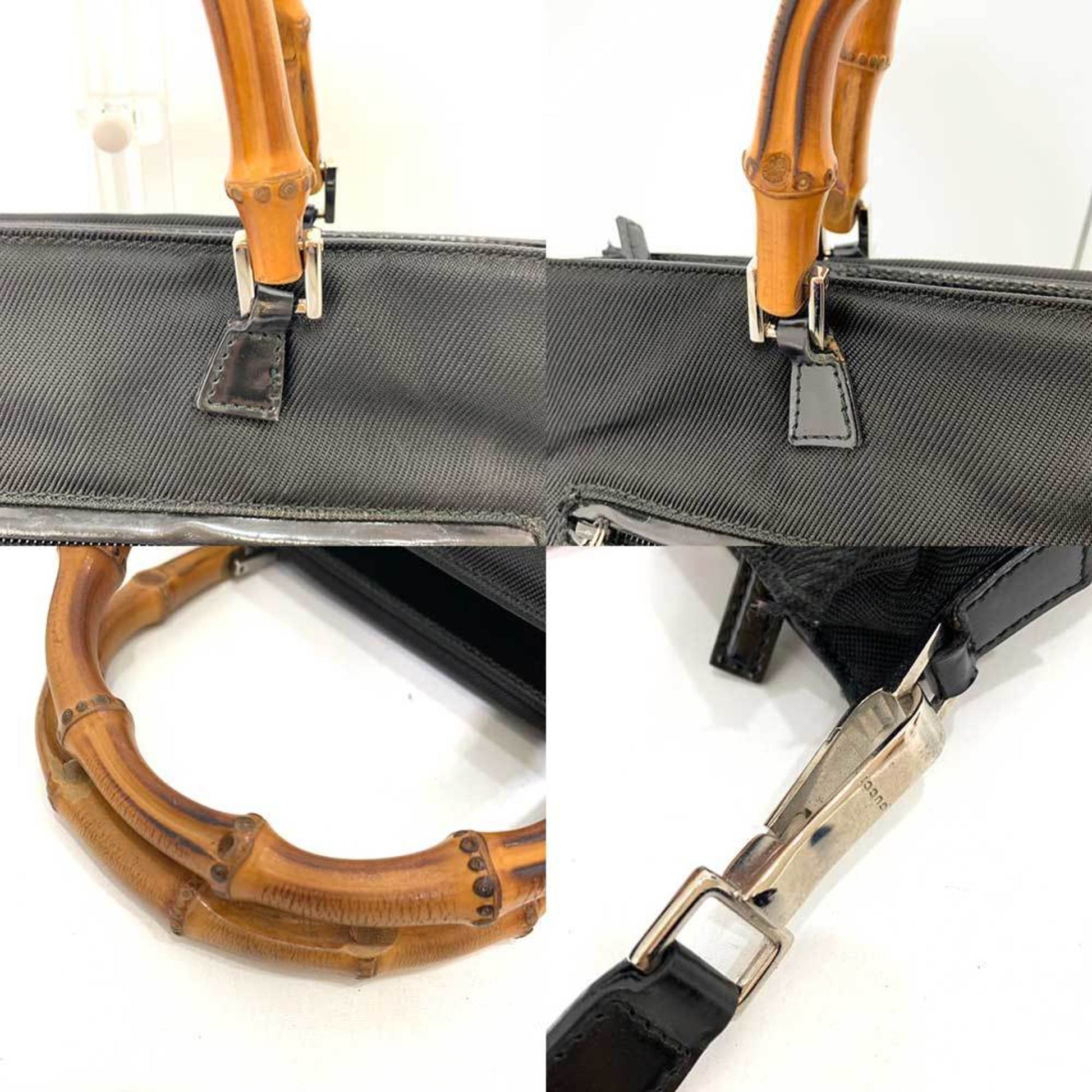 Gucci Bag Bamboo Handbag Black x Brown 2way Square Ladies Nylon Canvas Enamel Leather GUCCI